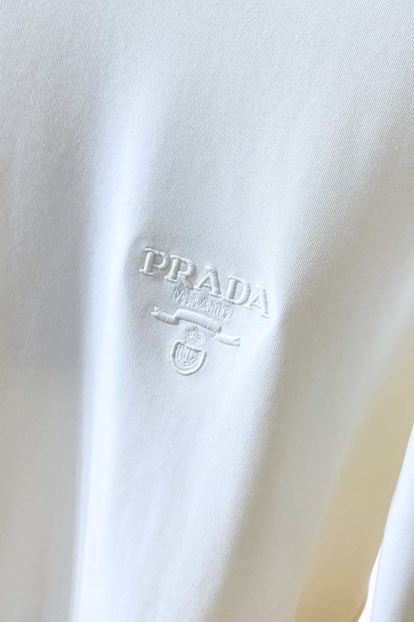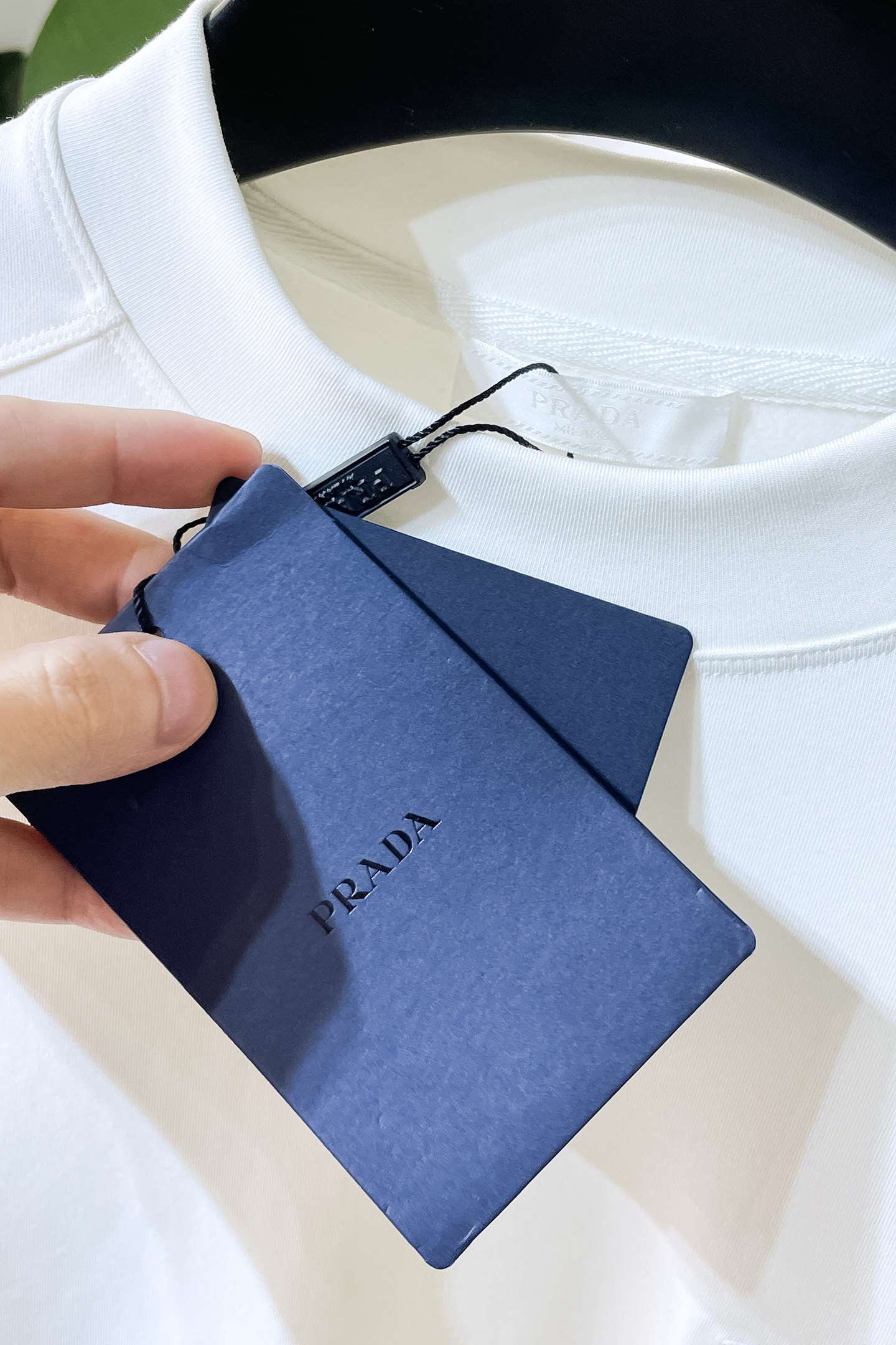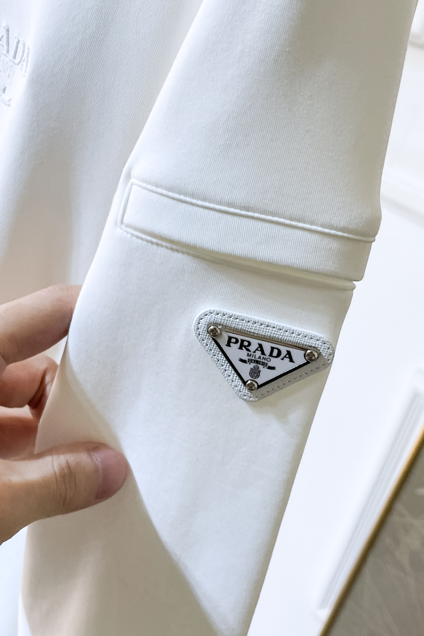 这款衣服是AAAAA 1:1 质量 (非常棒). 使用了和原版一模一样的材料. 商标部分也保持了和普拉达/Prada一样. 图片拍摄是实物衣服拍摄, 您所收到的实物保证和我们图片一模一样.