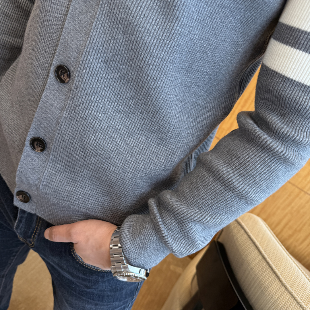 这款衣服是AAAAA 1:1 质量 (非常棒). 使用了和原版一模一样的材料. 商标部分也保持了和汤姆布朗/Thom Browne一样. 图片拍摄是实物衣服拍摄, 您所收到的实物保证和我们图片一模一样.
