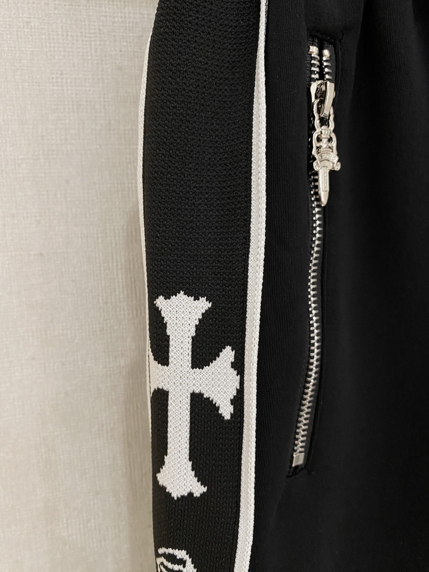 这款衣服是AAAAA 1:1 质量 (非常棒). 使用了和原版一模一样的材料. 商标部分也保持了和克罗心/Chrome Hearts一样. 图片拍摄是实物衣服拍摄, 您所收到的实物保证和我们图片一模一样.