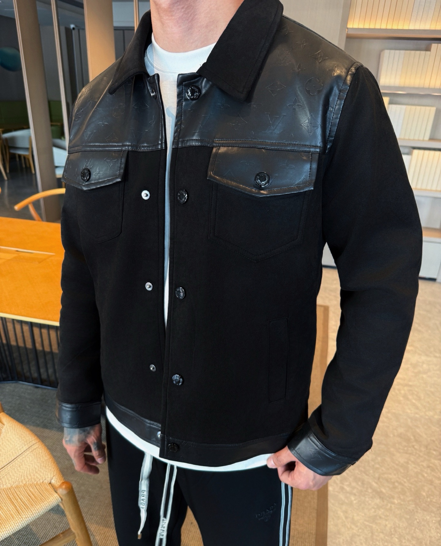 这款衣服是AAAAA 1:1 质量 (非常棒). 使用了和原版一模一样的材料. 商标部分也保持了和路易威登/Louis Vuitton一样. 图片拍摄是实物衣服拍摄, 您所收到的实物保证和我们图片一模一样.
