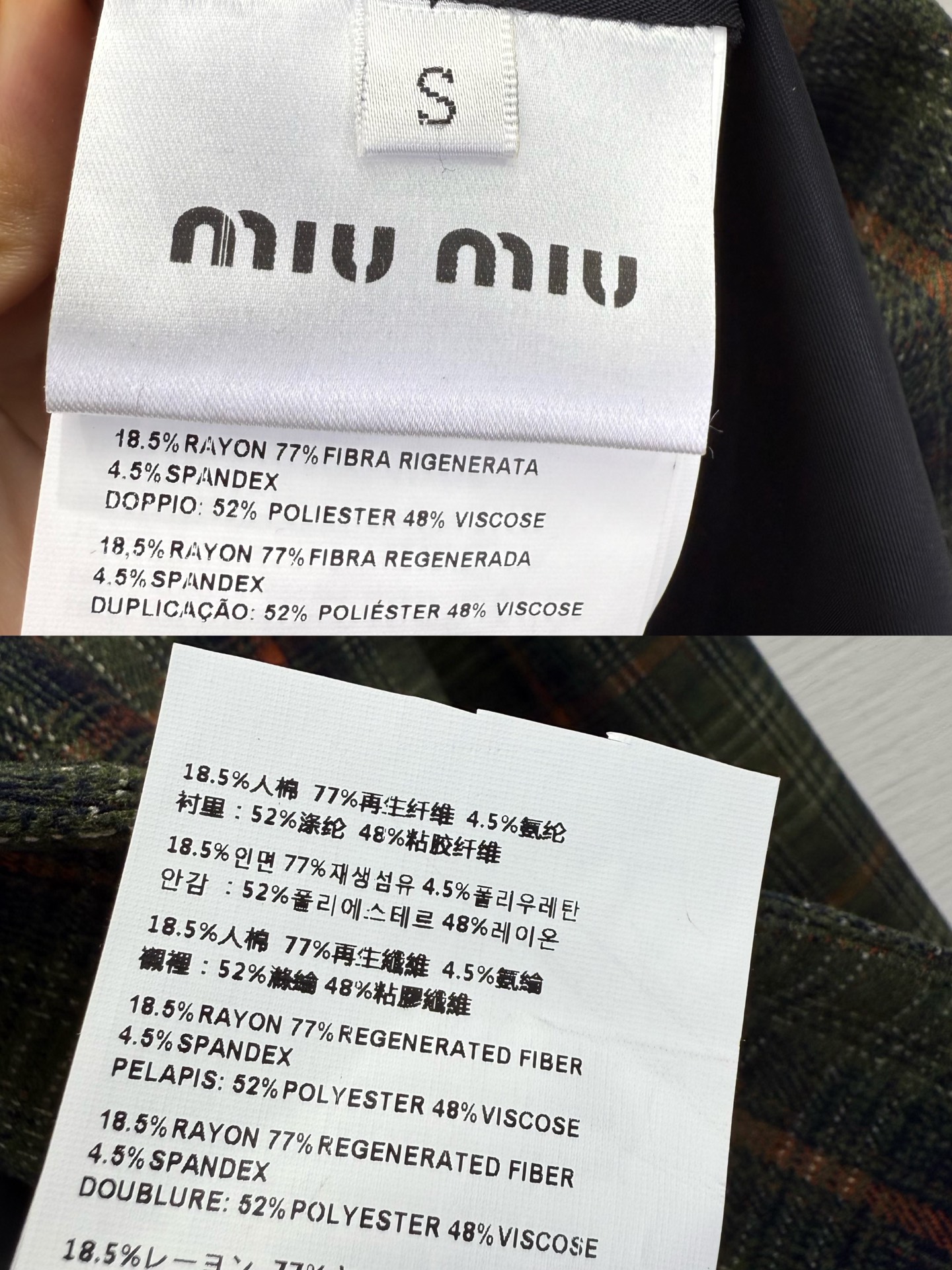 这款衣服是AAAAA 1:1 质量 (非常棒). 使用了和原版一模一样的材料. 商标部分也保持了和缪缪/Miu Miu一样. 图片拍摄是实物衣服拍摄, 您所收到的实物保证和我们图片一模一样.