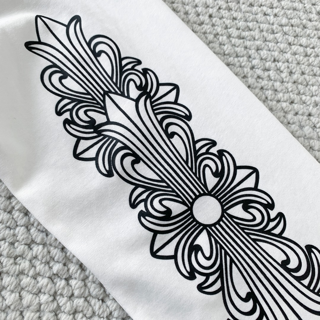 这款衣服是AAAAA 1:1 质量 (非常棒). 使用了和原版一模一样的材料. 商标部分也保持了和克罗心/Chrome Hearts一样. 图片拍摄是实物衣服拍摄, 您所收到的实物保证和我们图片一模一样.