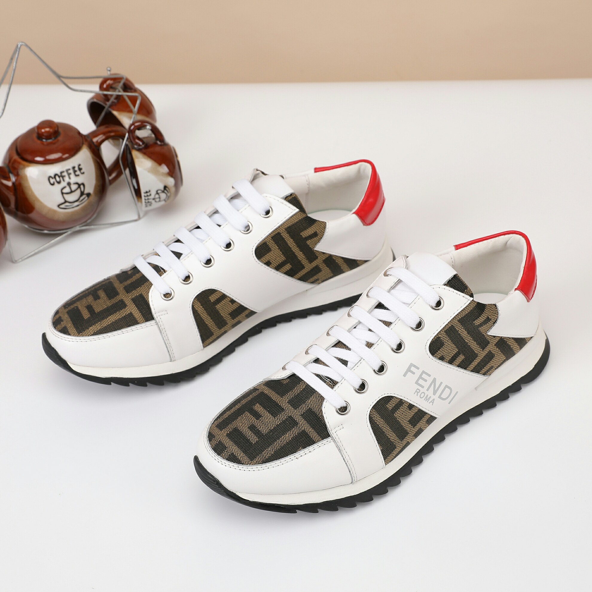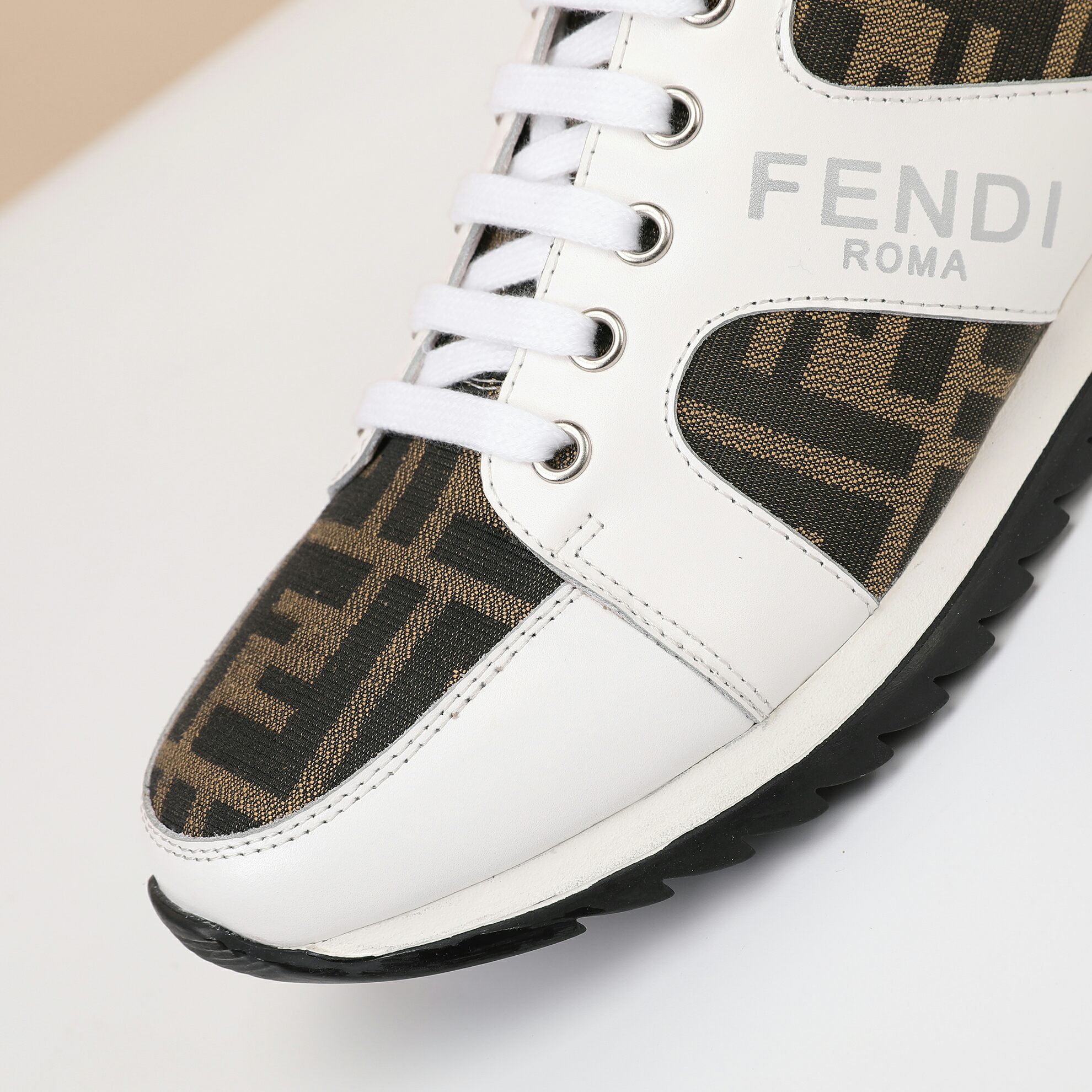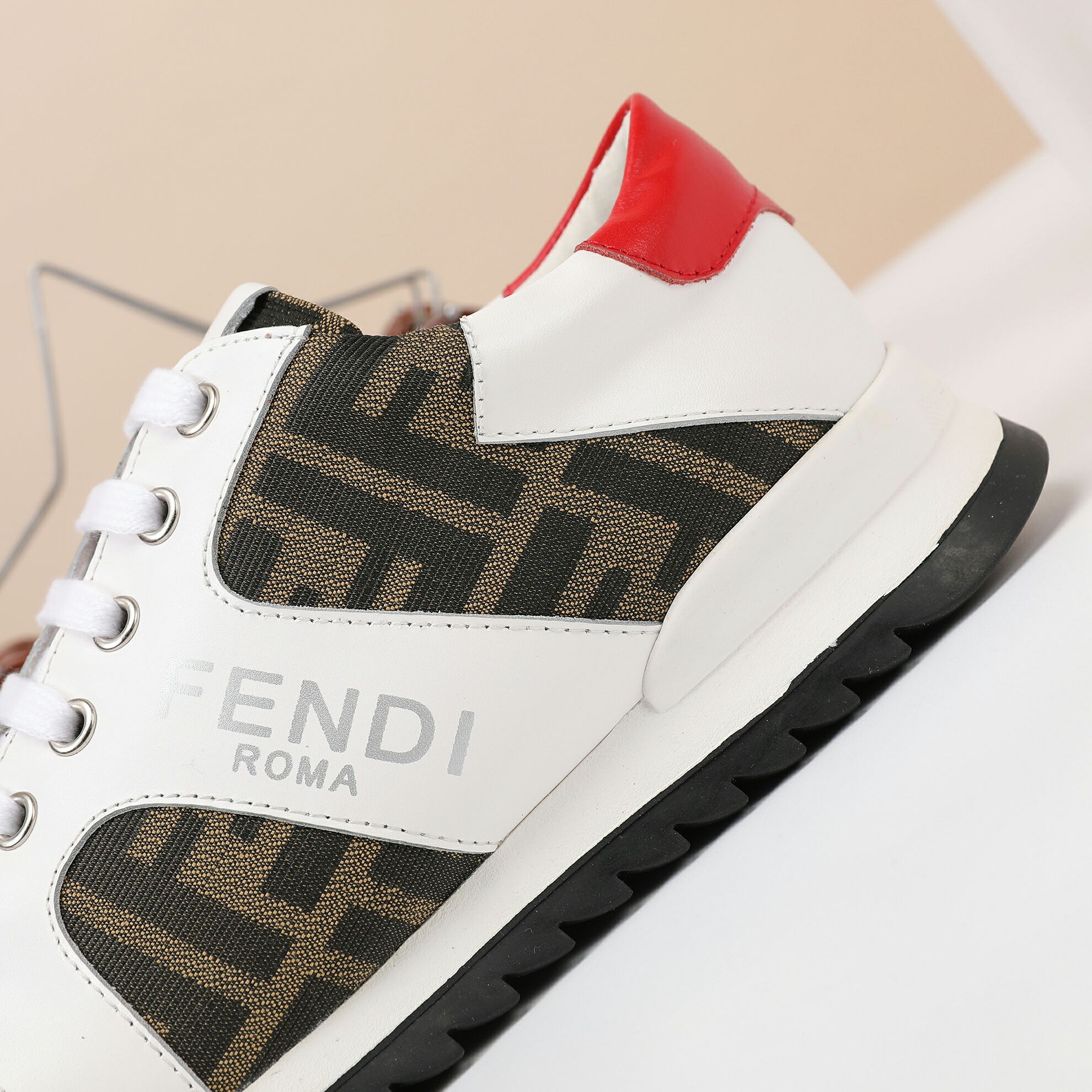这款鞋子是AAAAA 1:1 质量 (非常棒). 使用了和原版一模一样的材料. 商标部分也保持了和芬迪/Fendi一样. 图片拍摄是实物鞋子拍摄, 您所收到的实物保证和我们图片一模一样.
