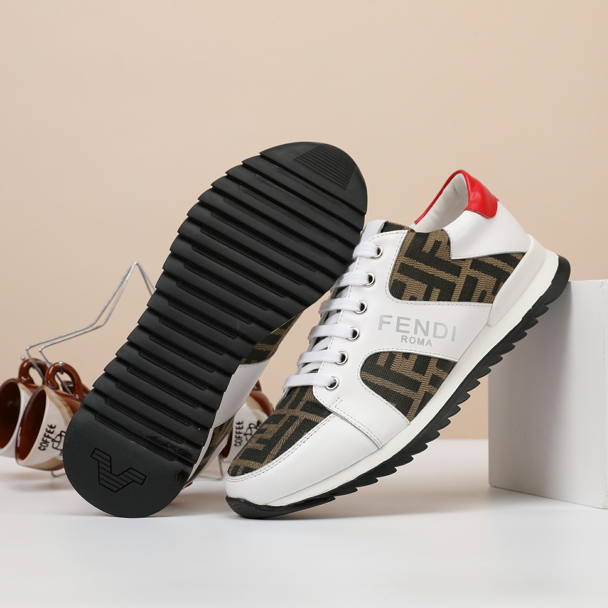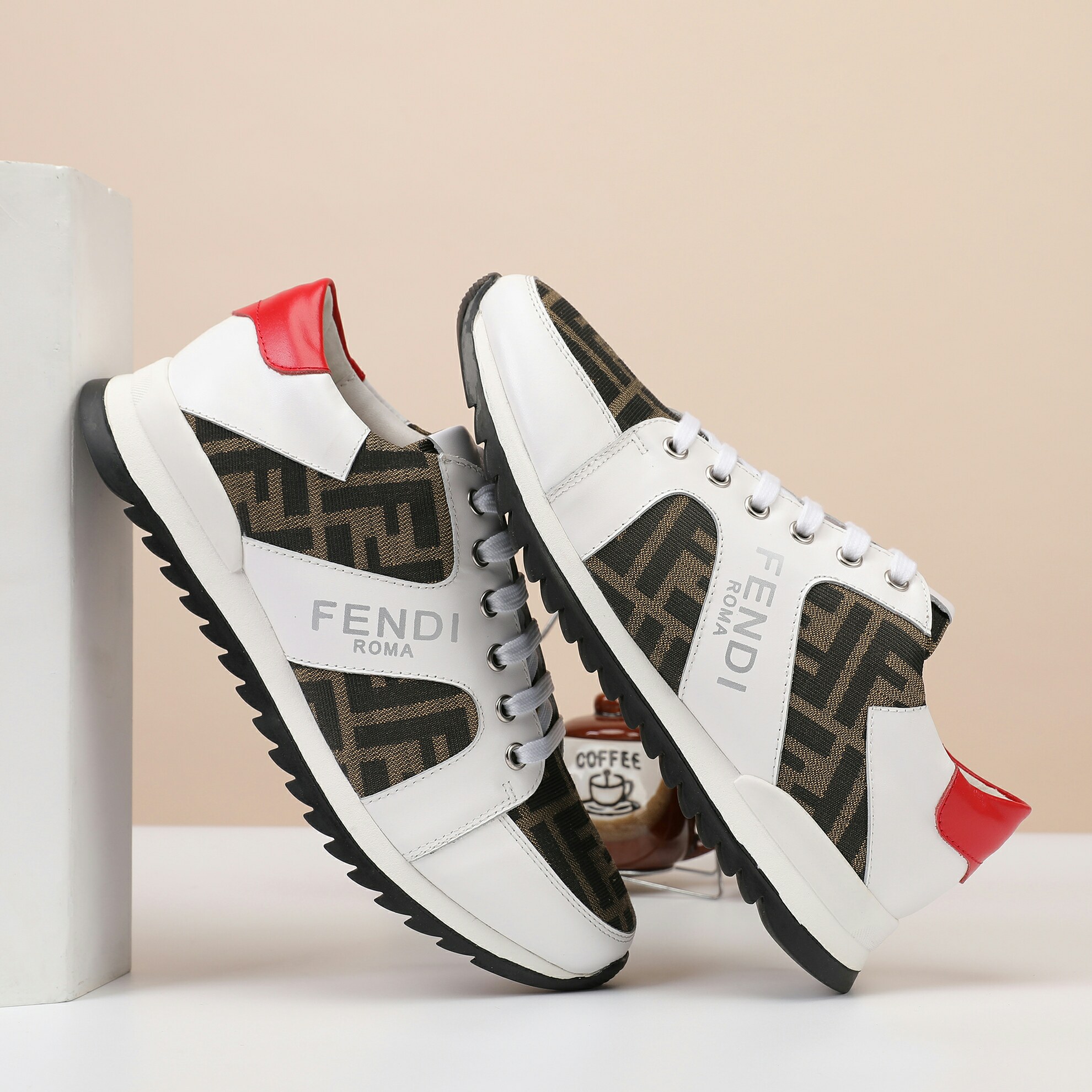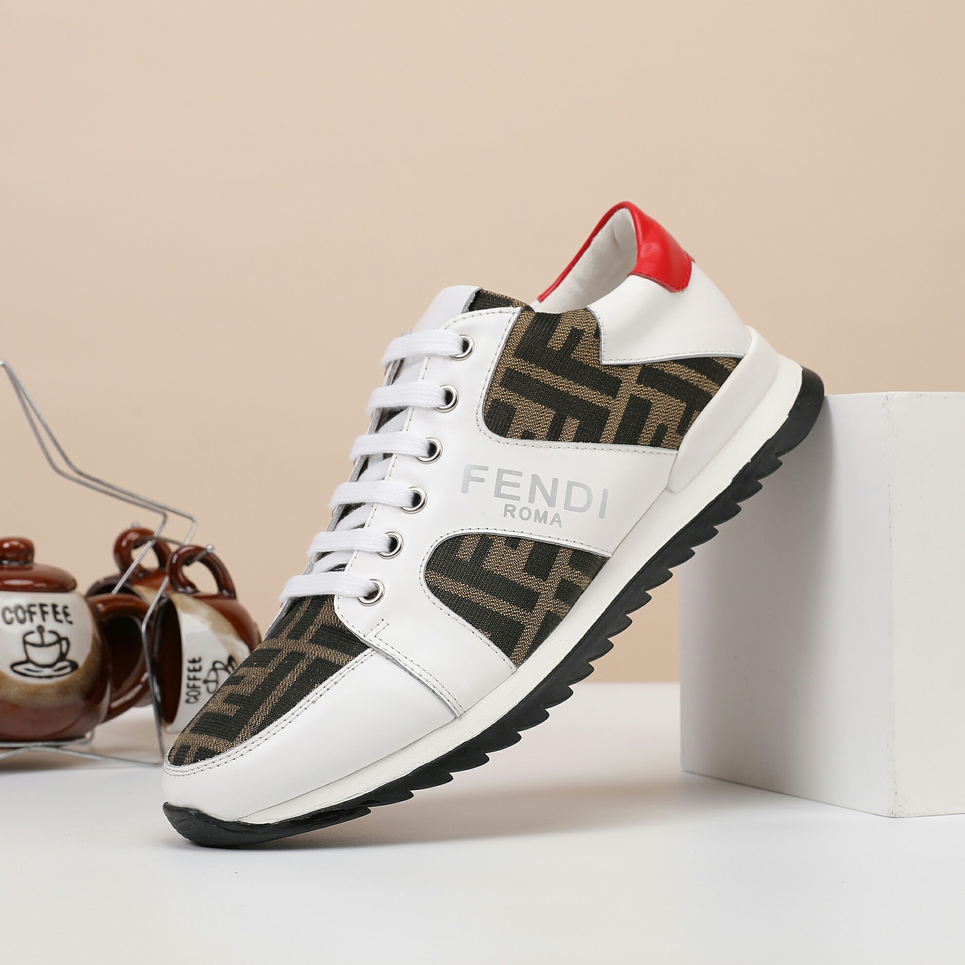 这款鞋子是AAAAA 1:1 质量 (非常棒). 使用了和原版一模一样的材料. 商标部分也保持了和芬迪/Fendi一样. 图片拍摄是实物鞋子拍摄, 您所收到的实物保证和我们图片一模一样.