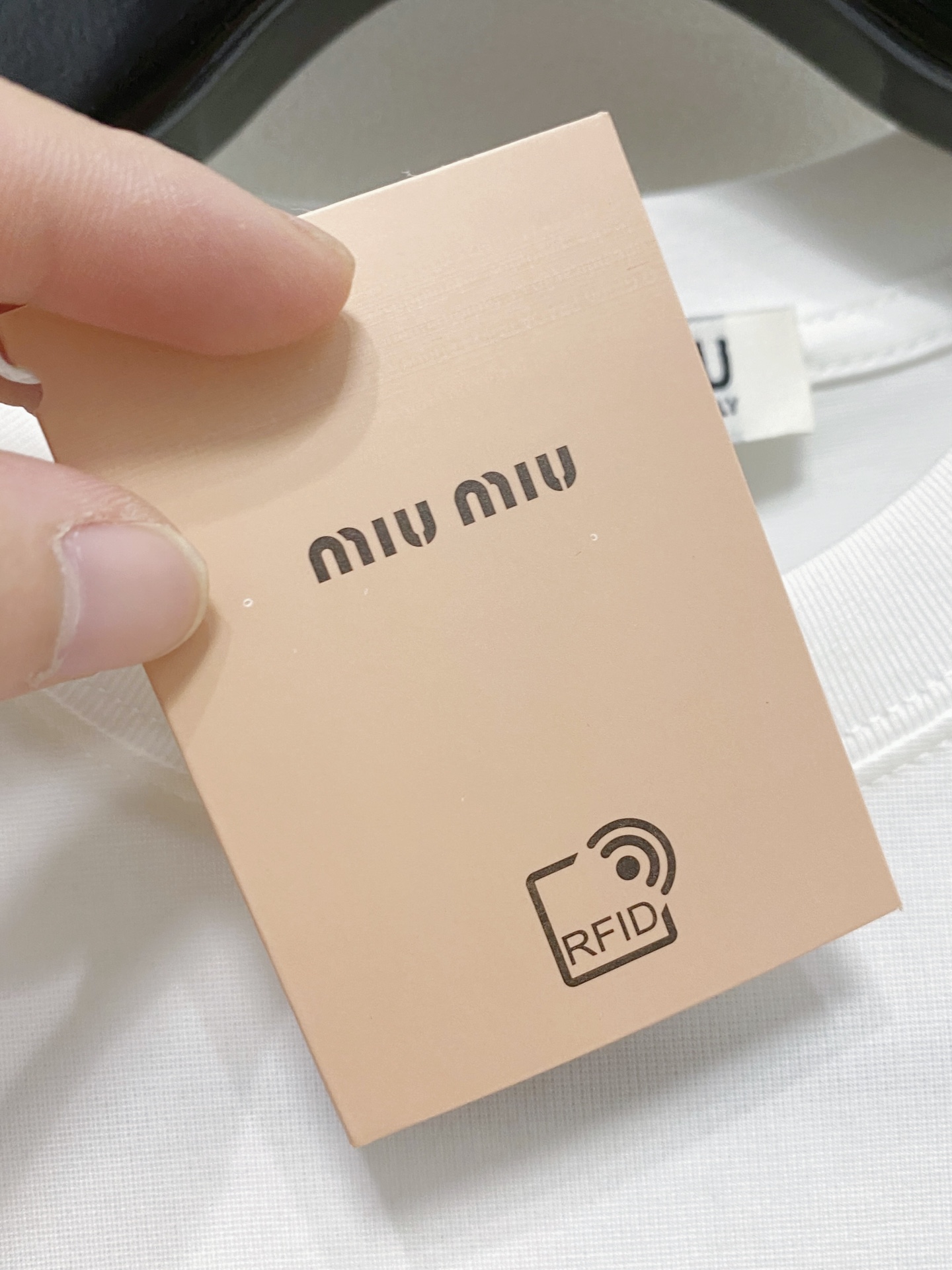这款衣服是AAAAA 1:1 质量 (非常棒). 使用了和原版一模一样的材料. 商标部分也保持了和缪缪/Miu Miu一样. 图片拍摄是实物衣服拍摄, 您所收到的实物保证和我们图片一模一样.