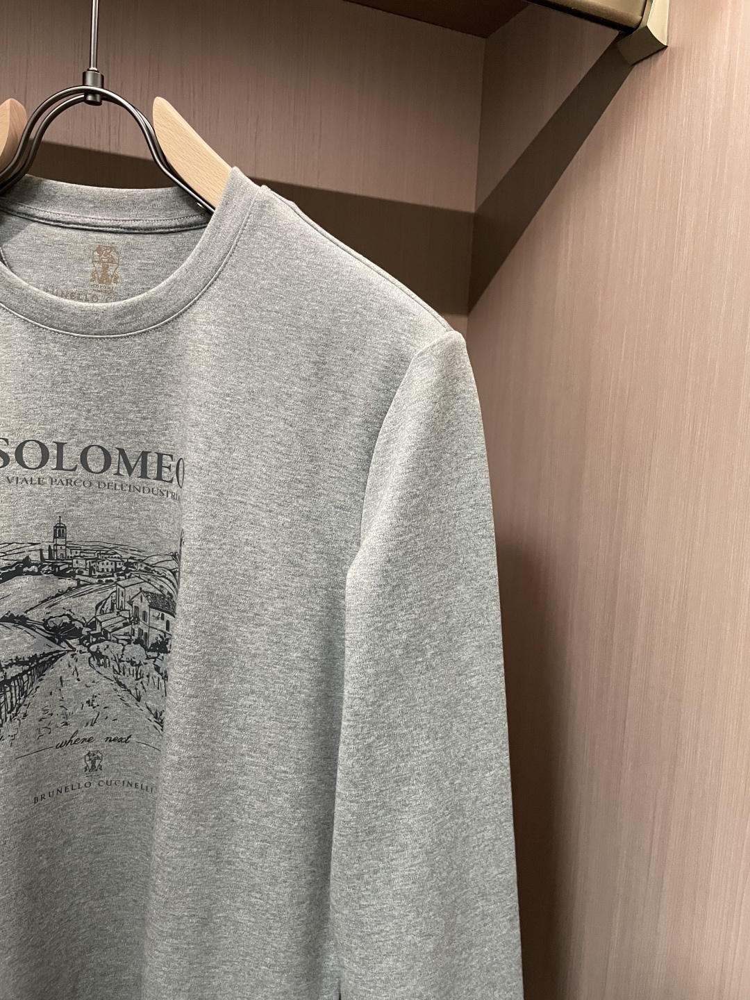 这款衣服是AAAAA 1:1 质量 (非常棒). 使用了和原版一模一样的材料. 商标部分也保持了和Brunello Cucinelli一样. 图片拍摄是实物衣服拍摄, 您所收到的实物保证和我们图片一模一样.