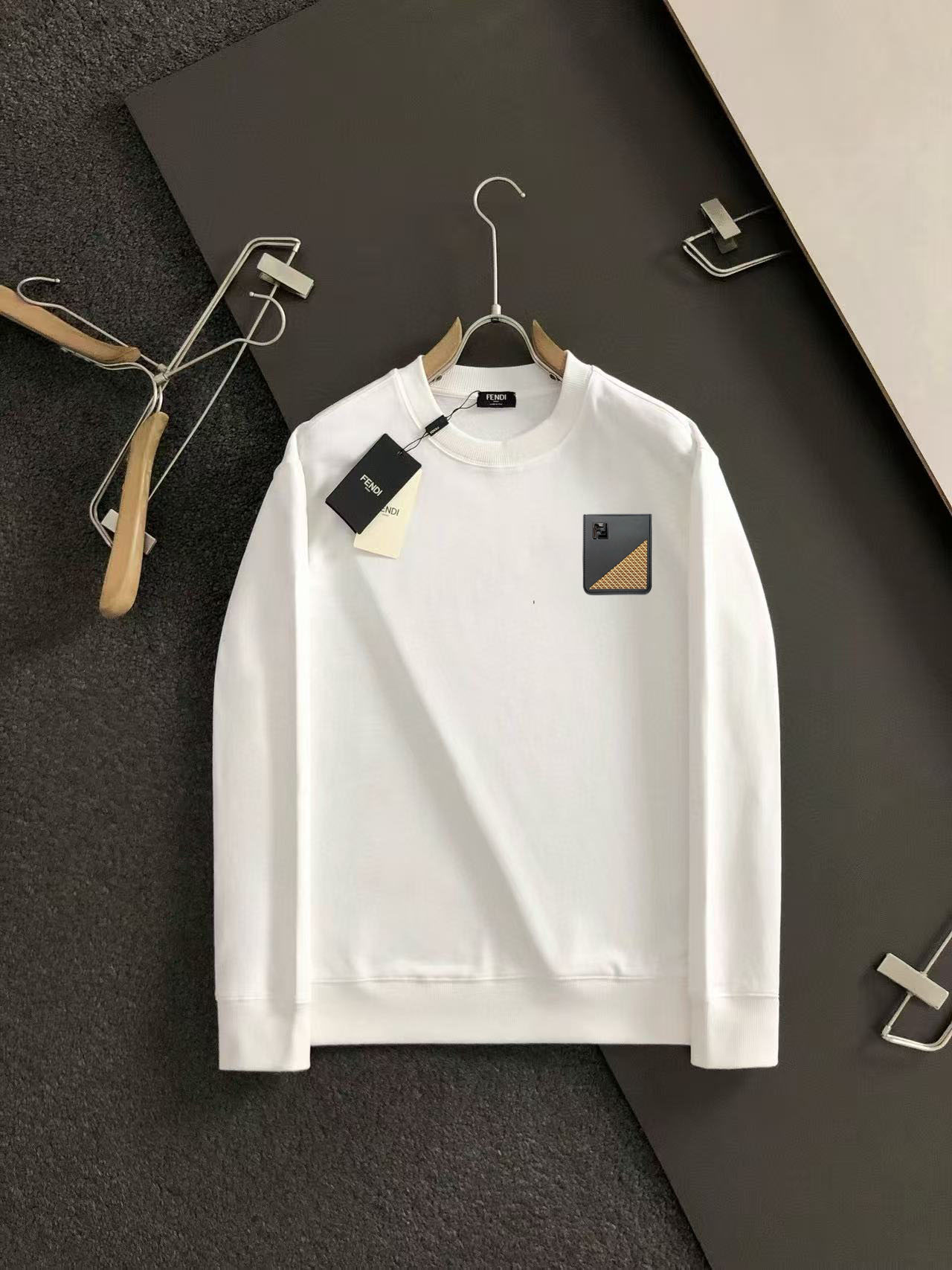 这款衣服是AAAAA 1:1 质量 (非常棒). 使用了和原版一模一样的材料. 商标部分也保持了和芬迪/Fendi一样. 图片拍摄是实物衣服拍摄, 您所收到的实物保证和我们图片一模一样.
