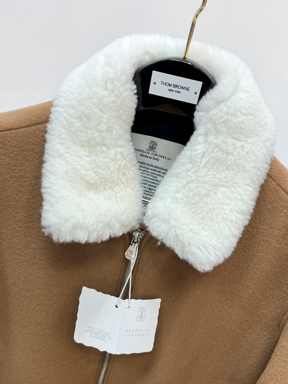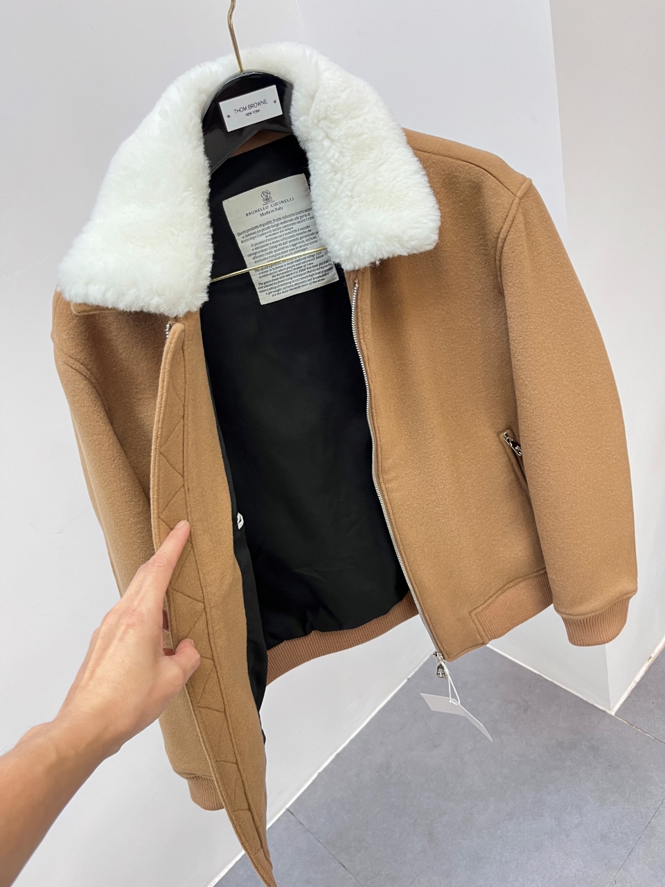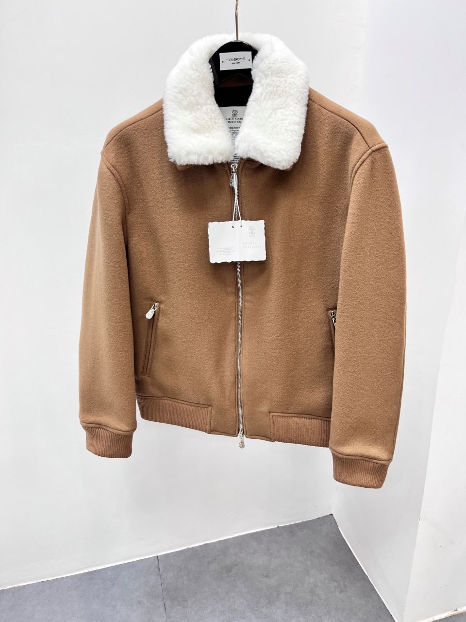 这款衣服是AAAAA 1:1 质量 (非常棒). 使用了和原版一模一样的材料. 商标部分也保持了和Brunello Cucinelli一样. 图片拍摄是实物衣服拍摄, 您所收到的实物保证和我们图片一模一样.