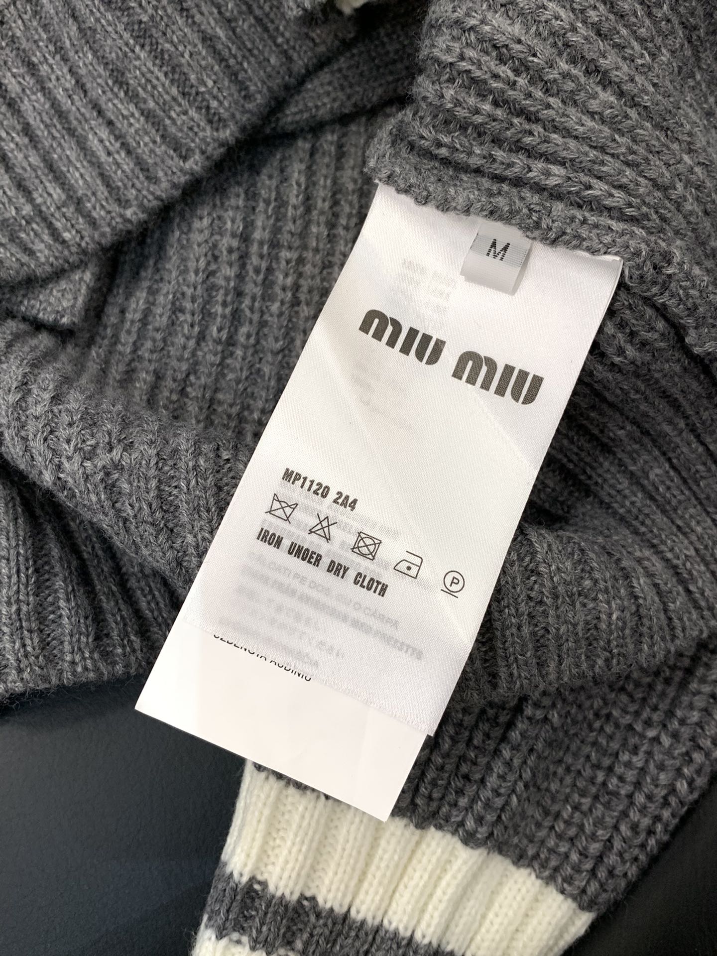 这款衣服是AAAAA 1:1 质量 (非常棒). 使用了和原版一模一样的材料. 商标部分也保持了和缪缪/Miu Miu一样. 图片拍摄是实物衣服拍摄, 您所收到的实物保证和我们图片一模一样.