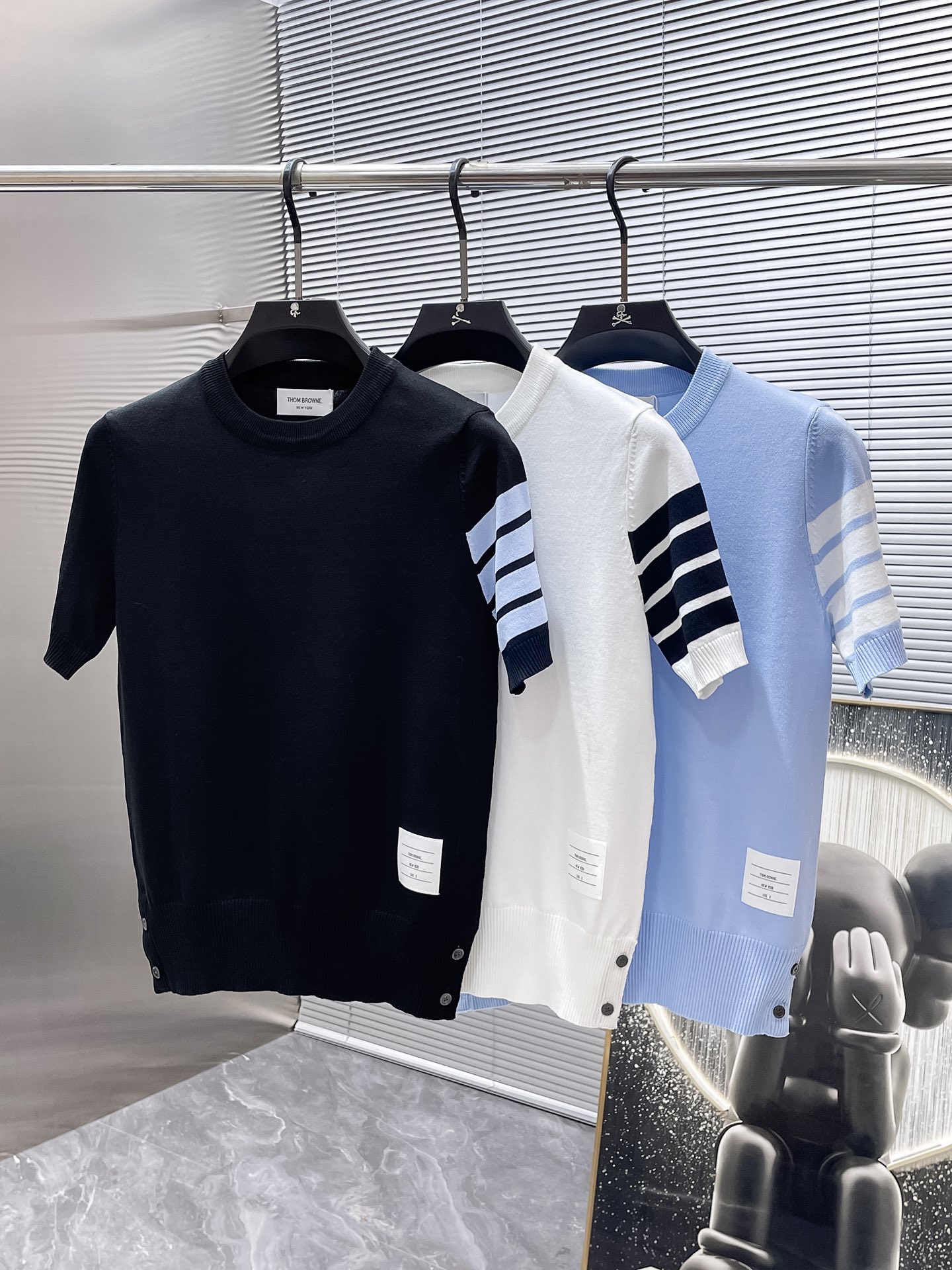 这款衣服是AAAAA 1:1 质量 (非常棒). 使用了和原版一模一样的材料. 商标部分也保持了和汤姆布朗/Thom Browne一样. 图片拍摄是实物衣服拍摄, 您所收到的实物保证和我们图片一模一样.