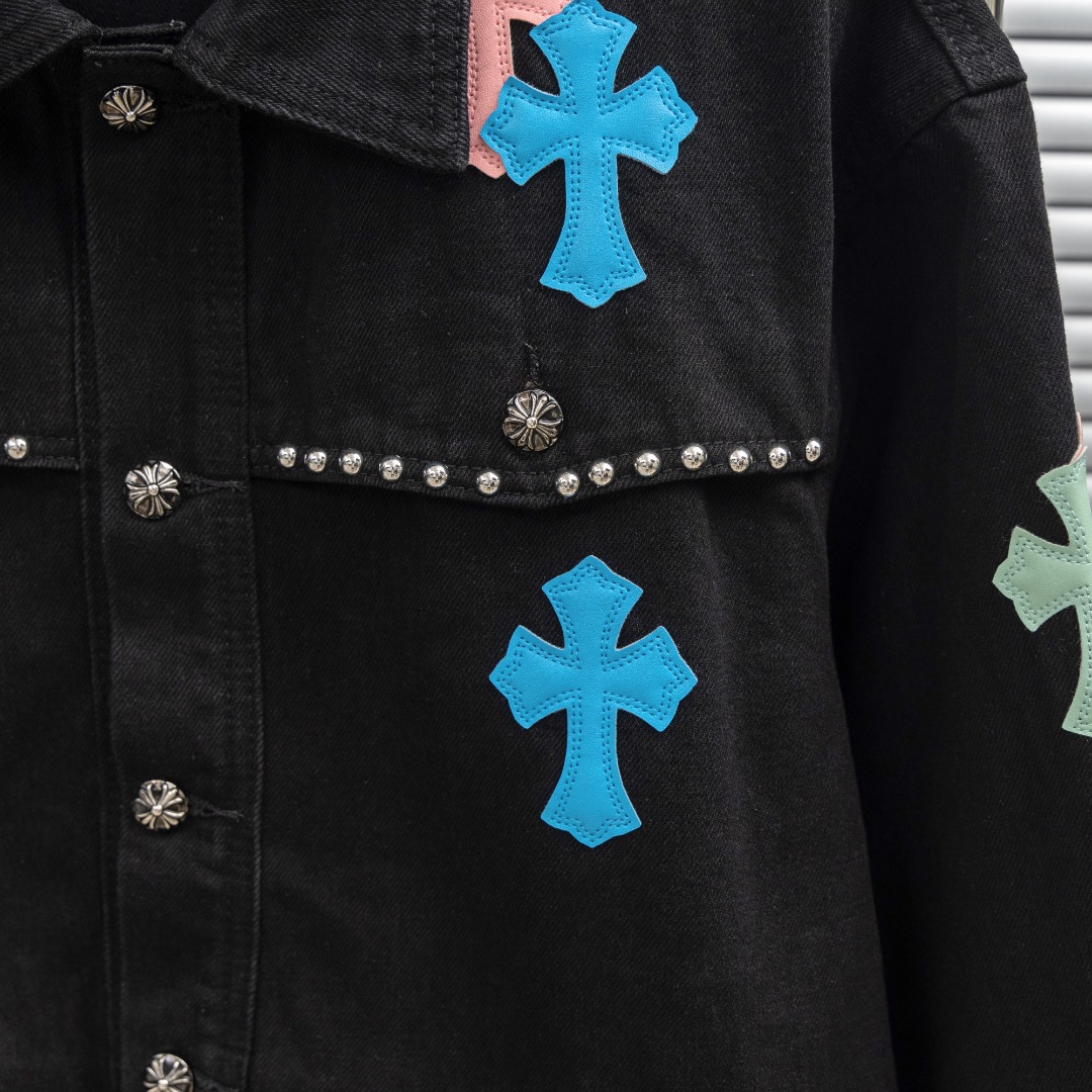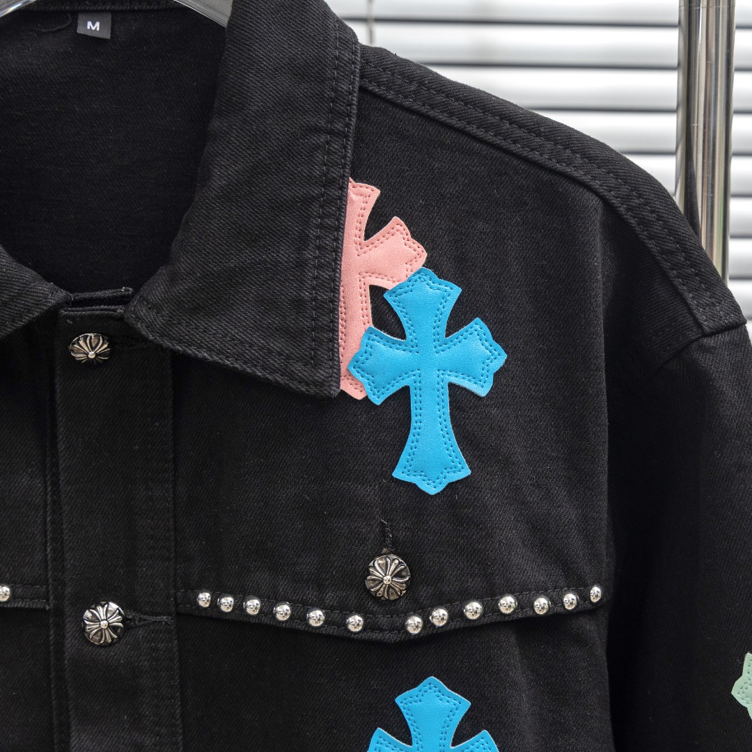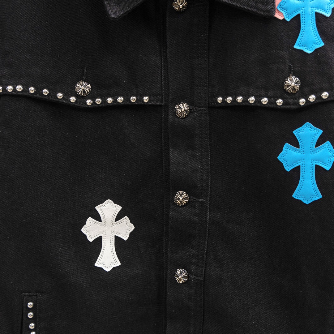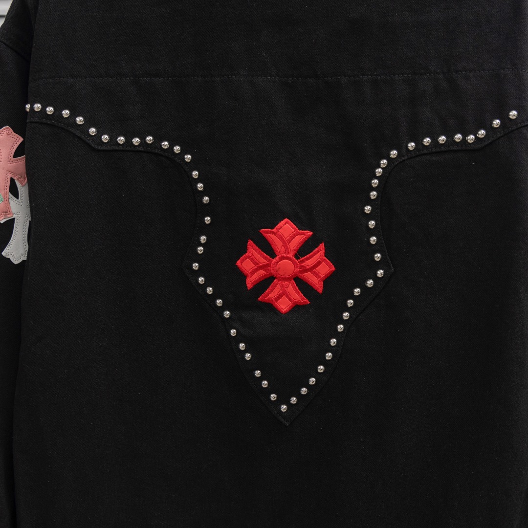 这款衣服是AAAAA 1:1 质量 (非常棒). 使用了和原版一模一样的材料. 商标部分也保持了和克罗心/Chrome Hearts一样. 图片拍摄是实物衣服拍摄, 您所收到的实物保证和我们图片一模一样.