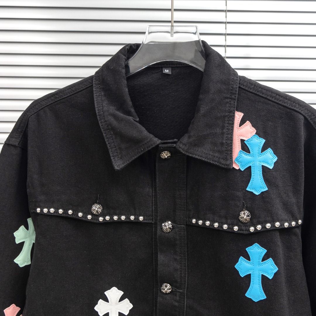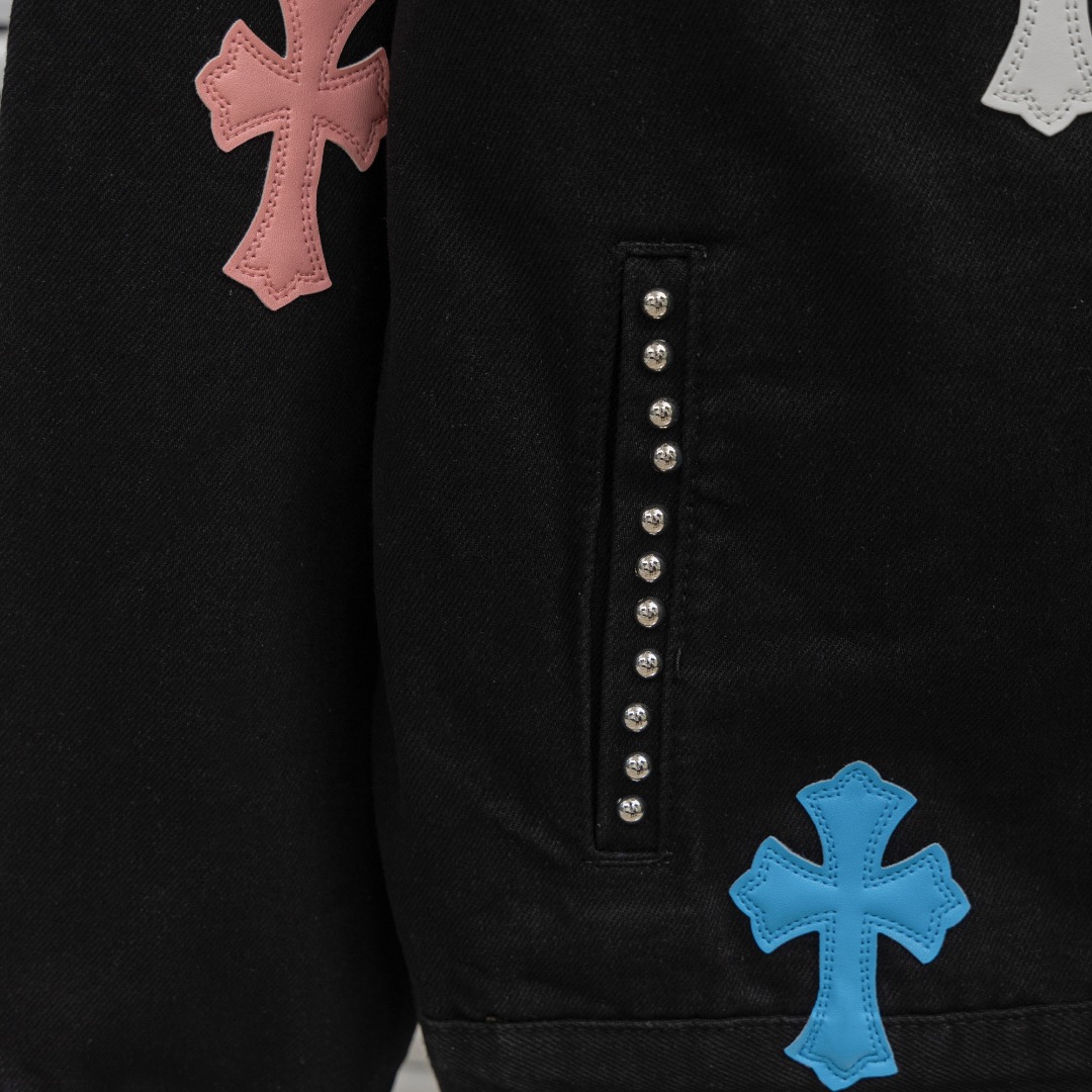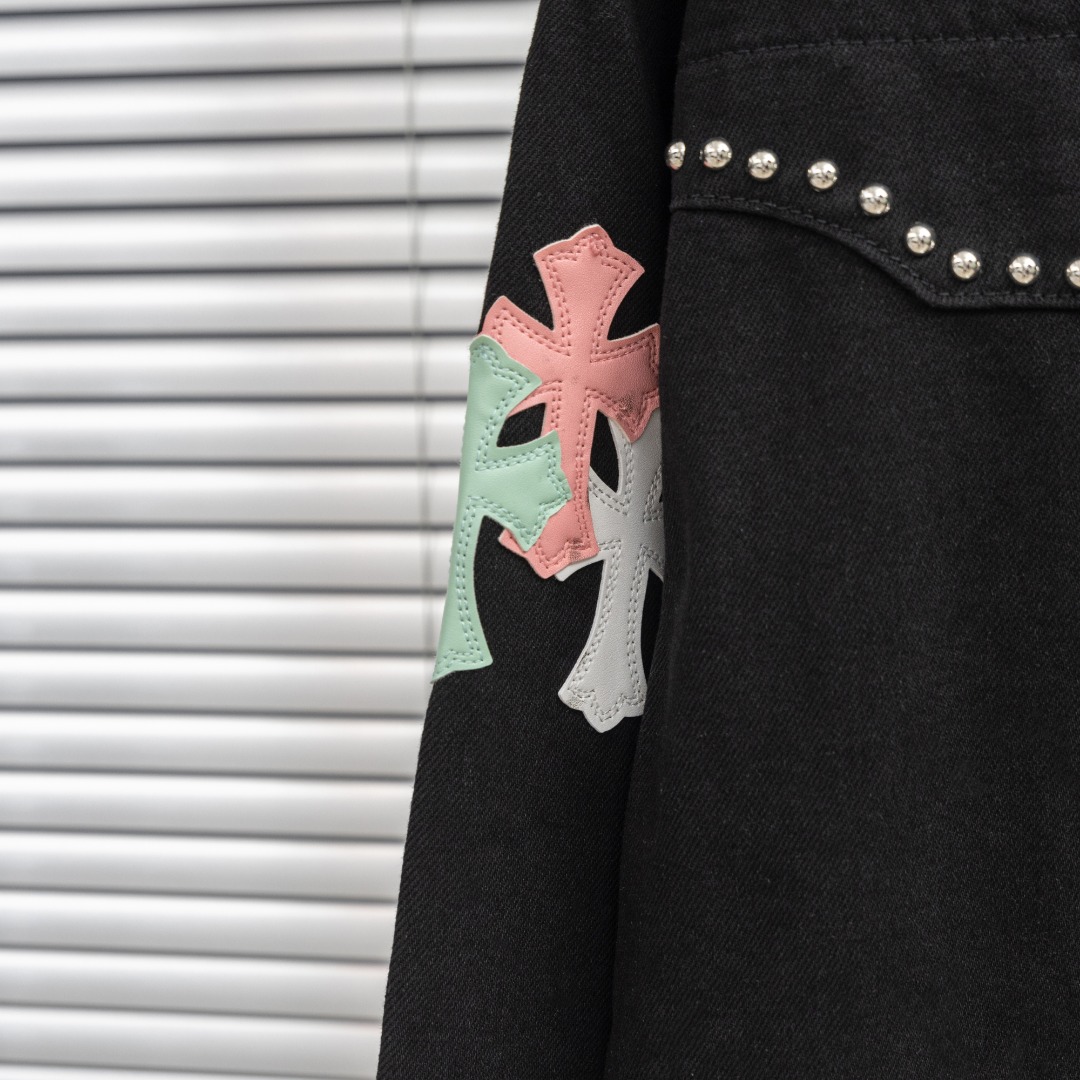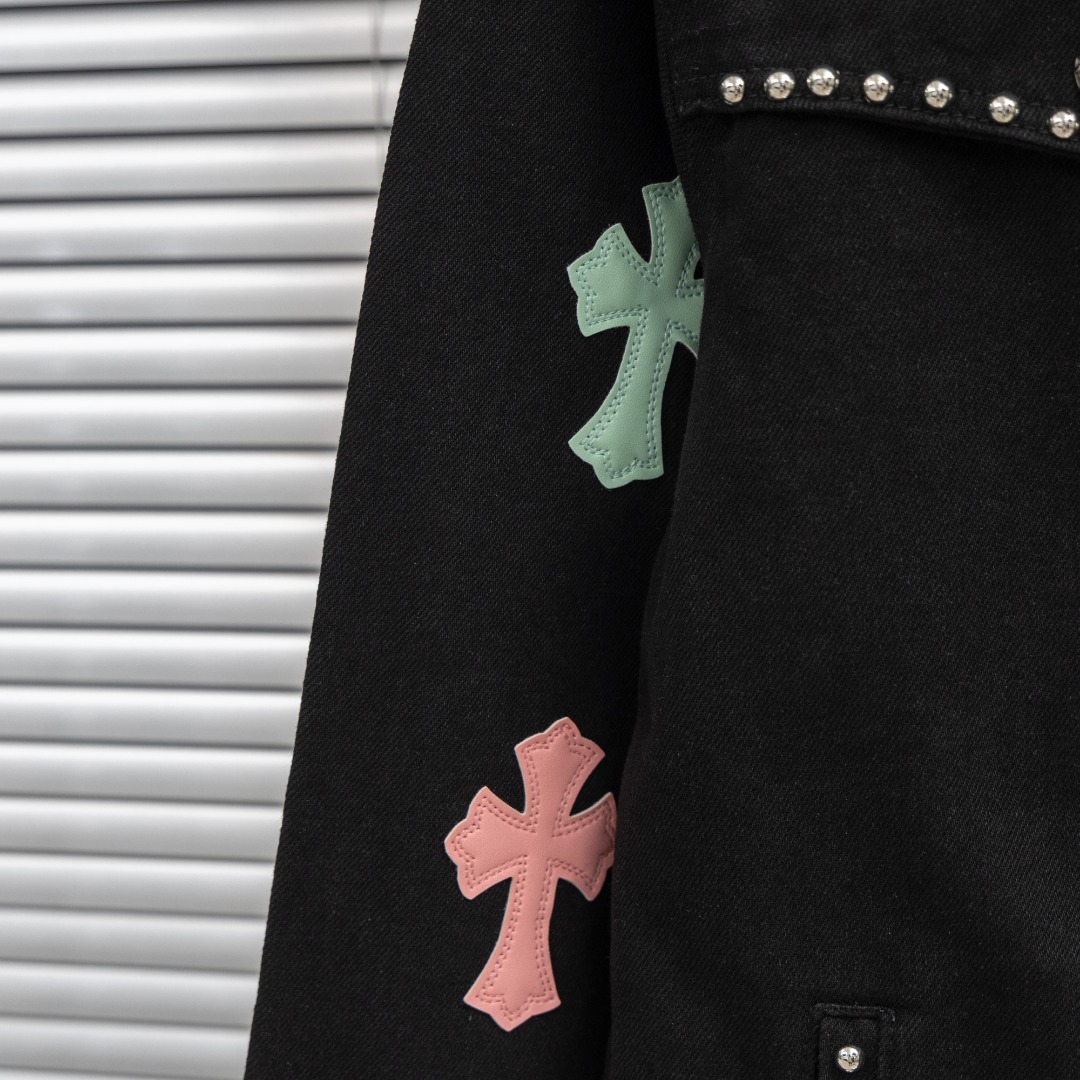 这款衣服是AAAAA 1:1 质量 (非常棒). 使用了和原版一模一样的材料. 商标部分也保持了和克罗心/Chrome Hearts一样. 图片拍摄是实物衣服拍摄, 您所收到的实物保证和我们图片一模一样.