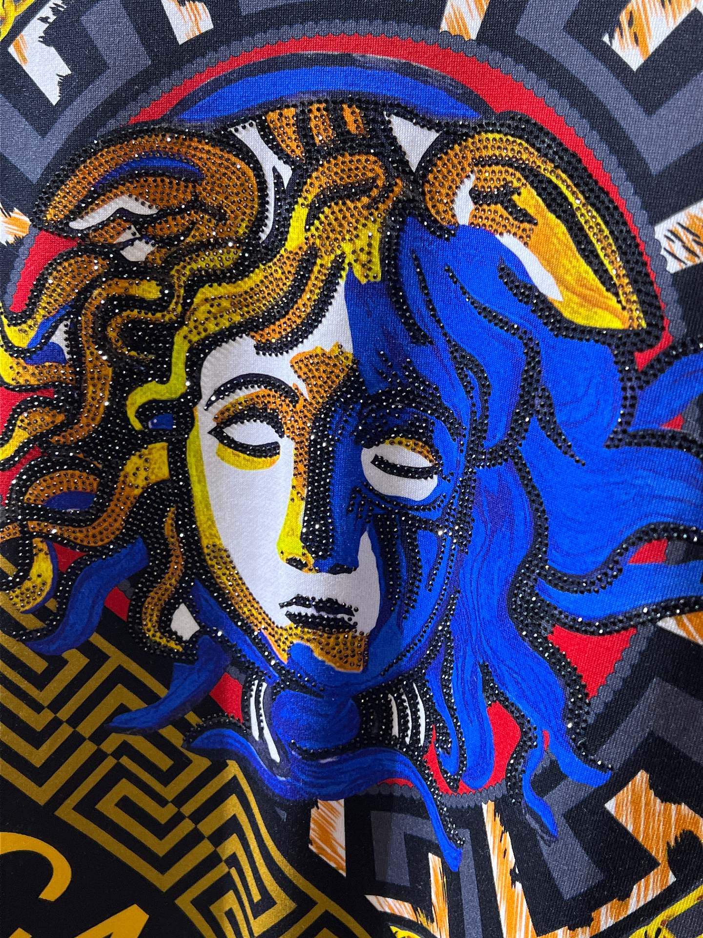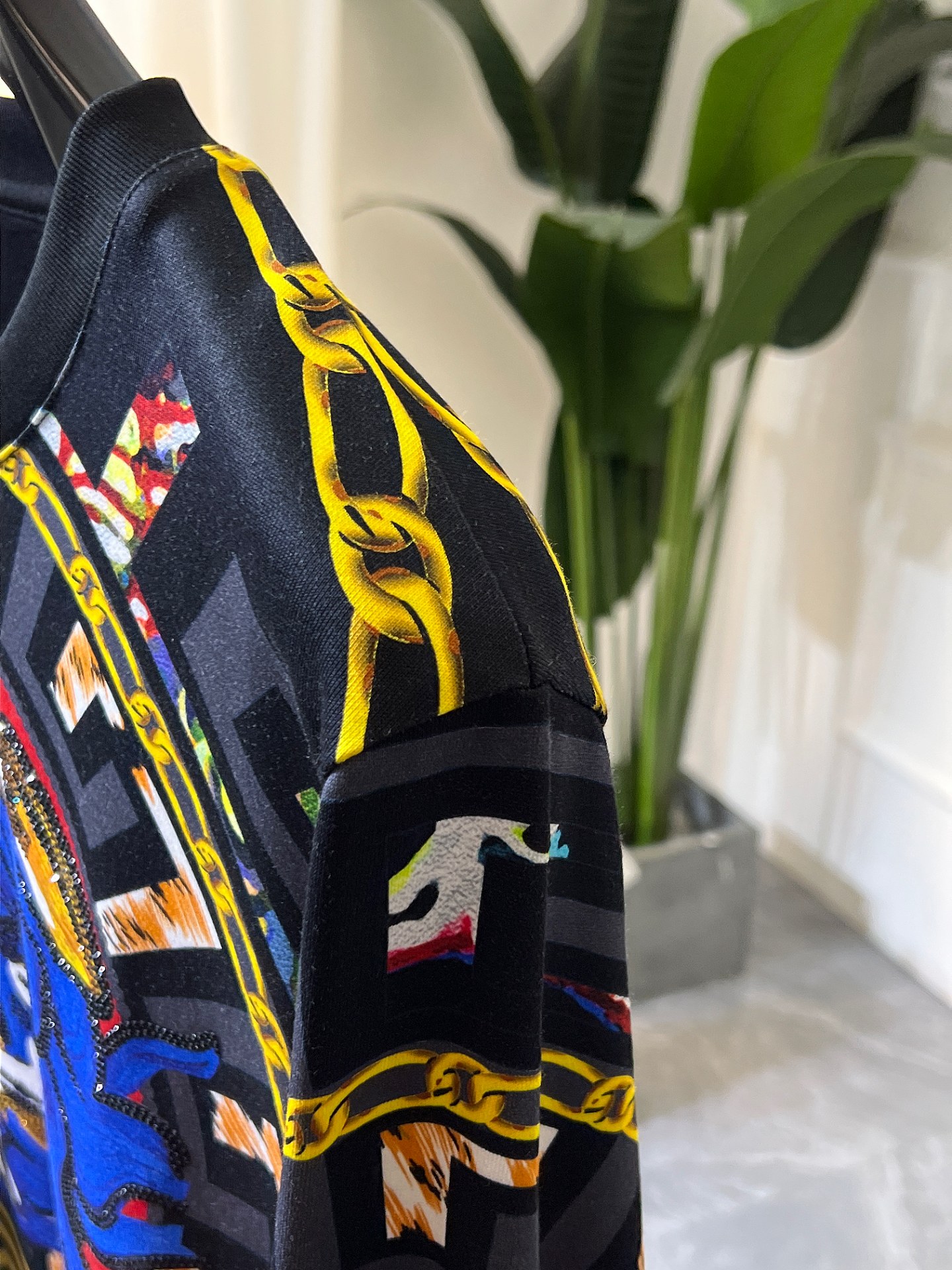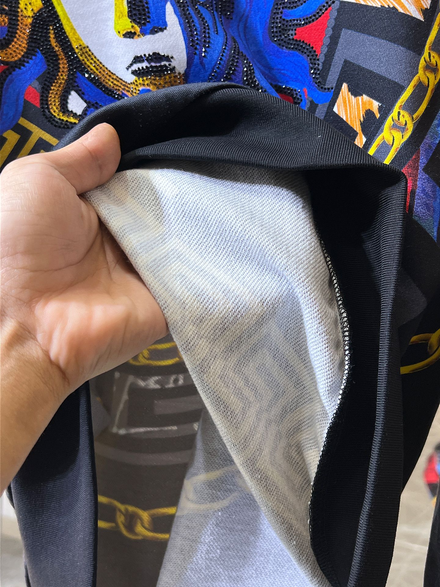 这款衣服是AAAAA 1:1 质量 (非常棒). 使用了和原版一模一样的材料. 商标部分也保持了和范思哲/Versace一样. 图片拍摄是实物衣服拍摄, 您所收到的实物保证和我们图片一模一样.