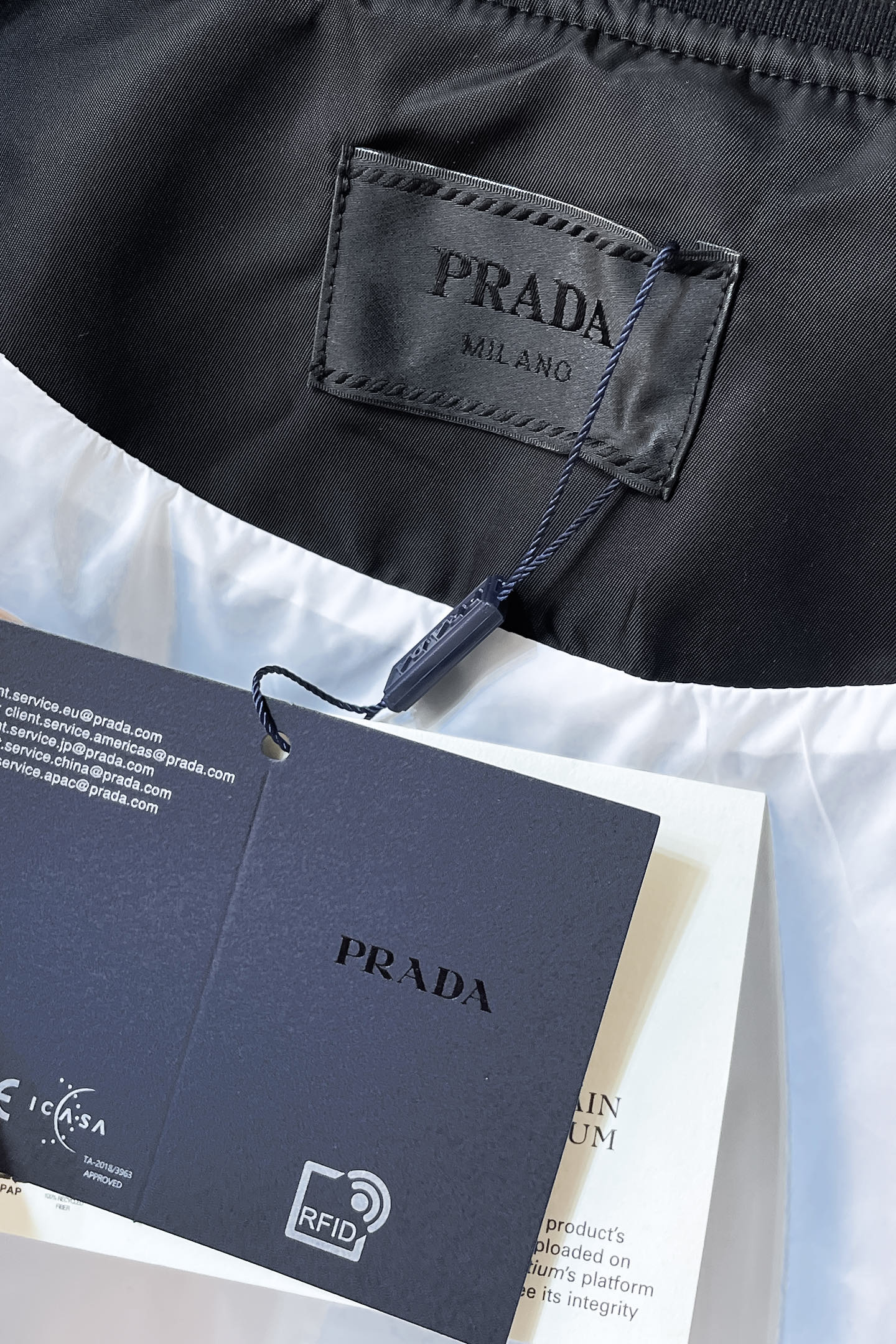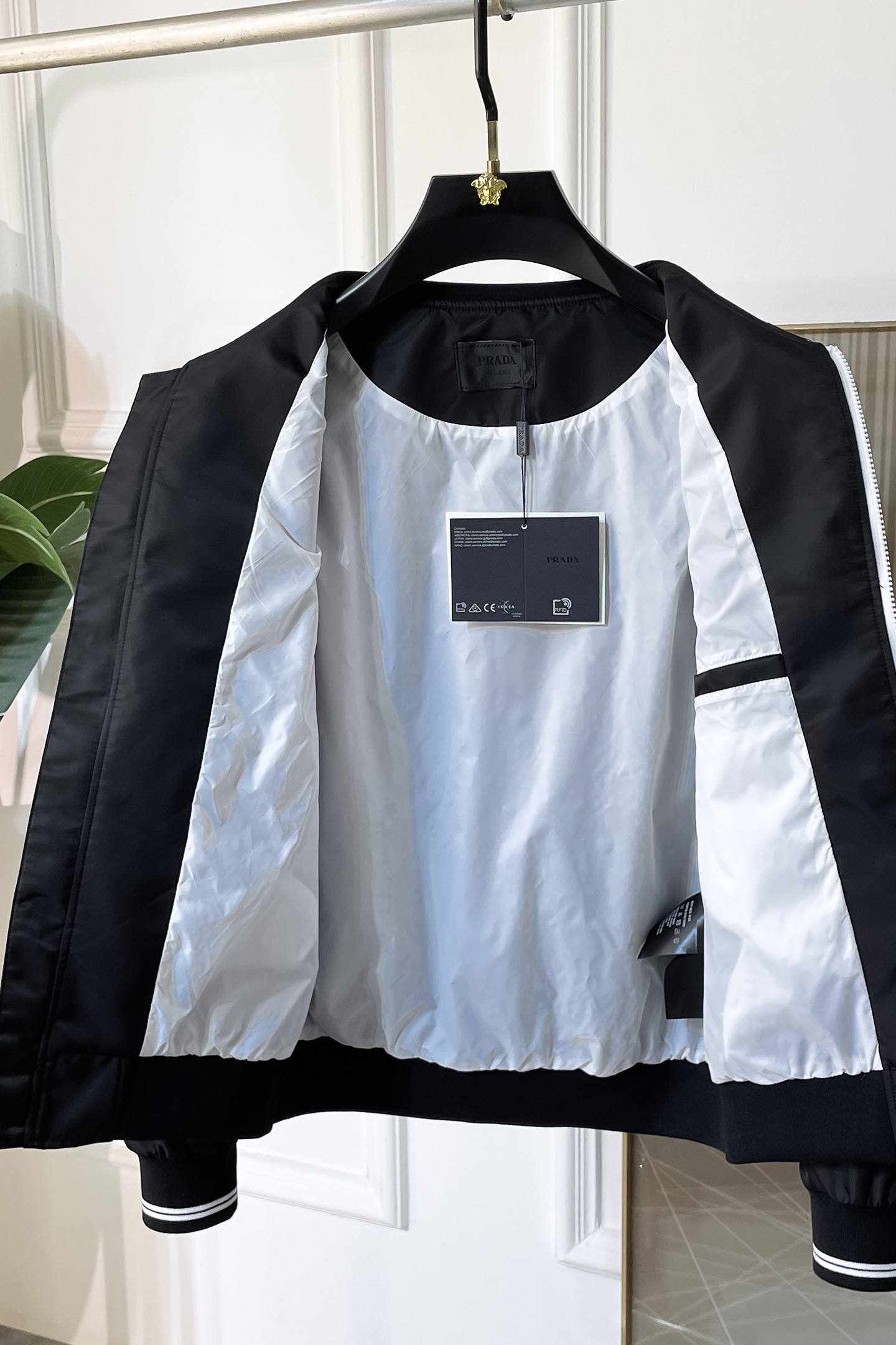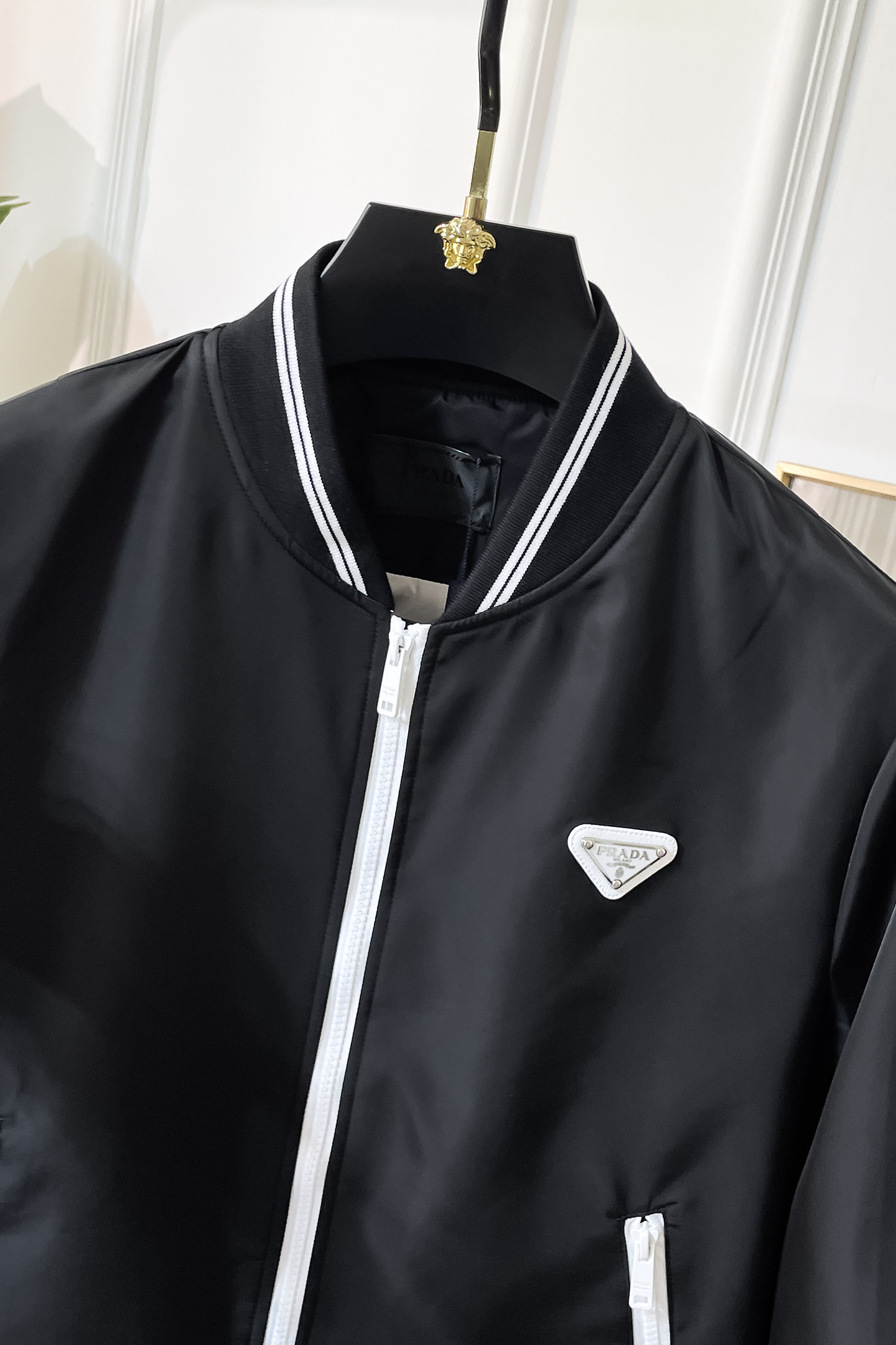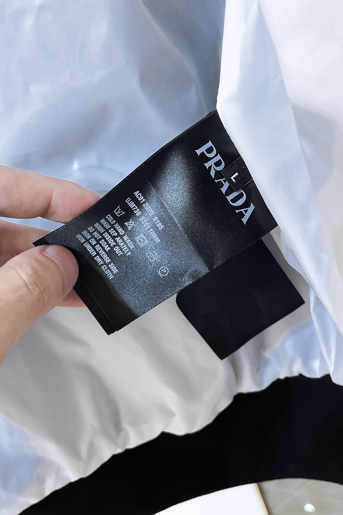 这款衣服是AAAAA 1:1 质量 (非常棒). 使用了和原版一模一样的材料. 商标部分也保持了和普拉达/Prada一样. 图片拍摄是实物衣服拍摄, 您所收到的实物保证和我们图片一模一样.