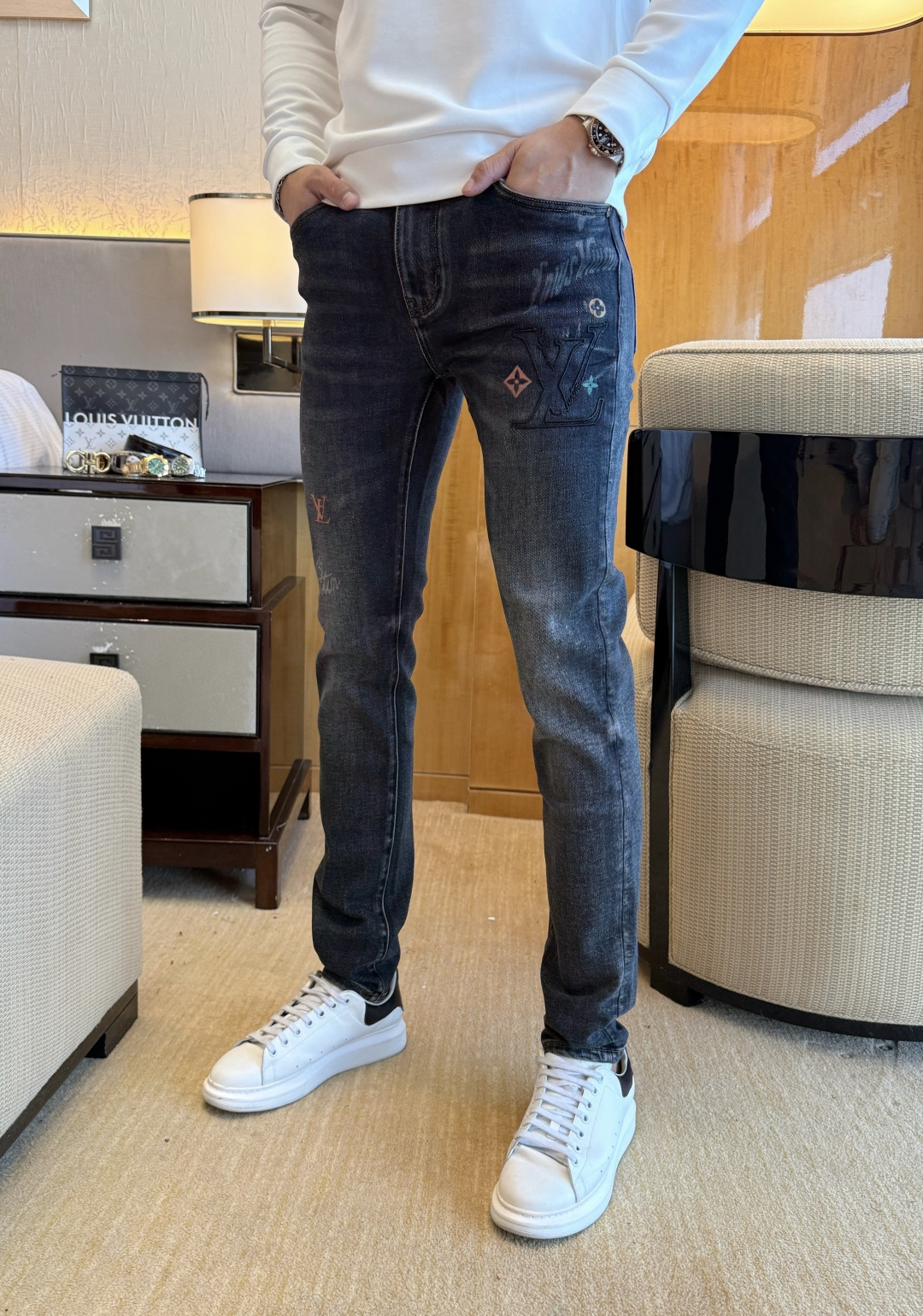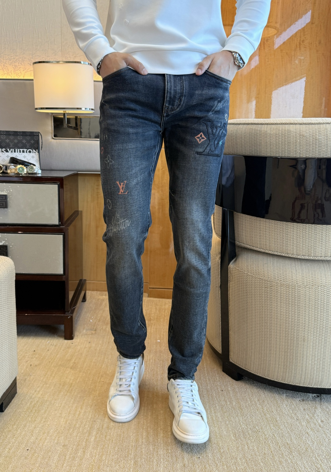 这款衣服是AAAAA 1:1 质量 (非常棒). 使用了和原版一模一样的材料. 商标部分也保持了和路易威登/Louis Vuitton一样. 图片拍摄是实物衣服拍摄, 您所收到的实物保证和我们图片一模一样.