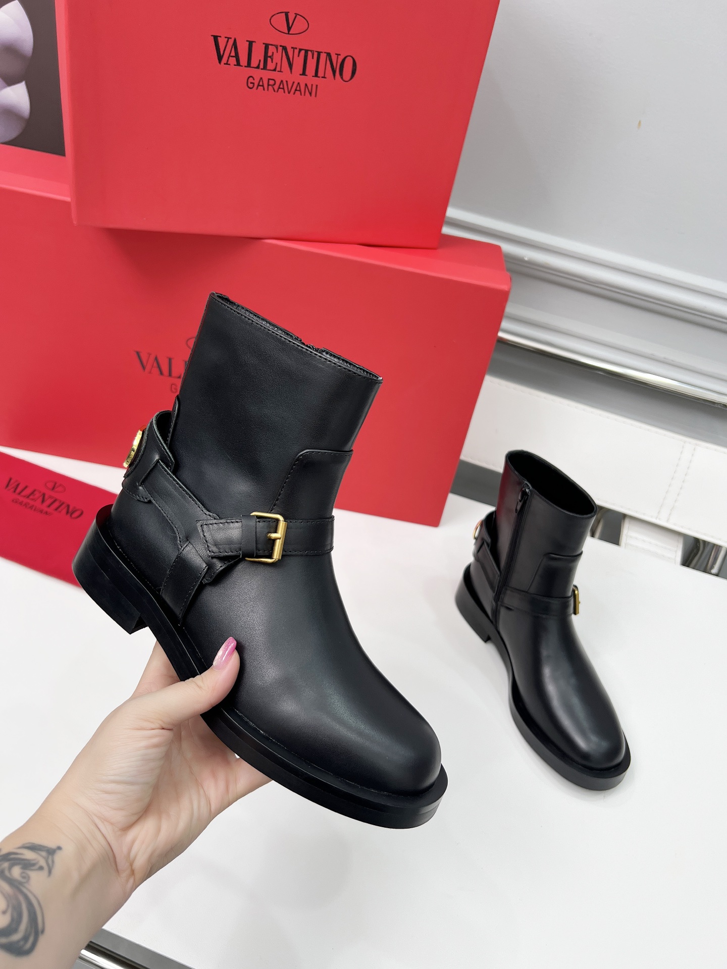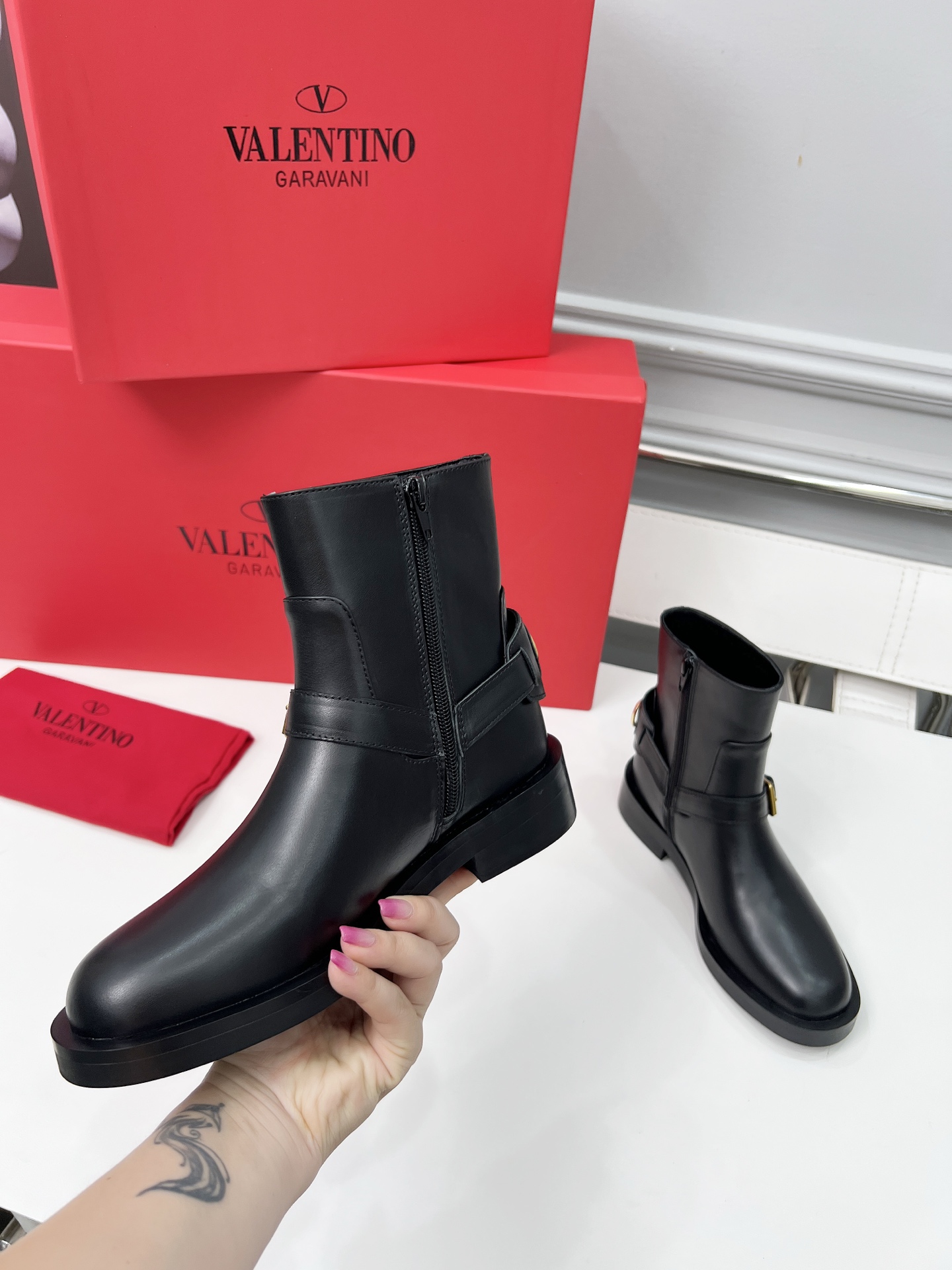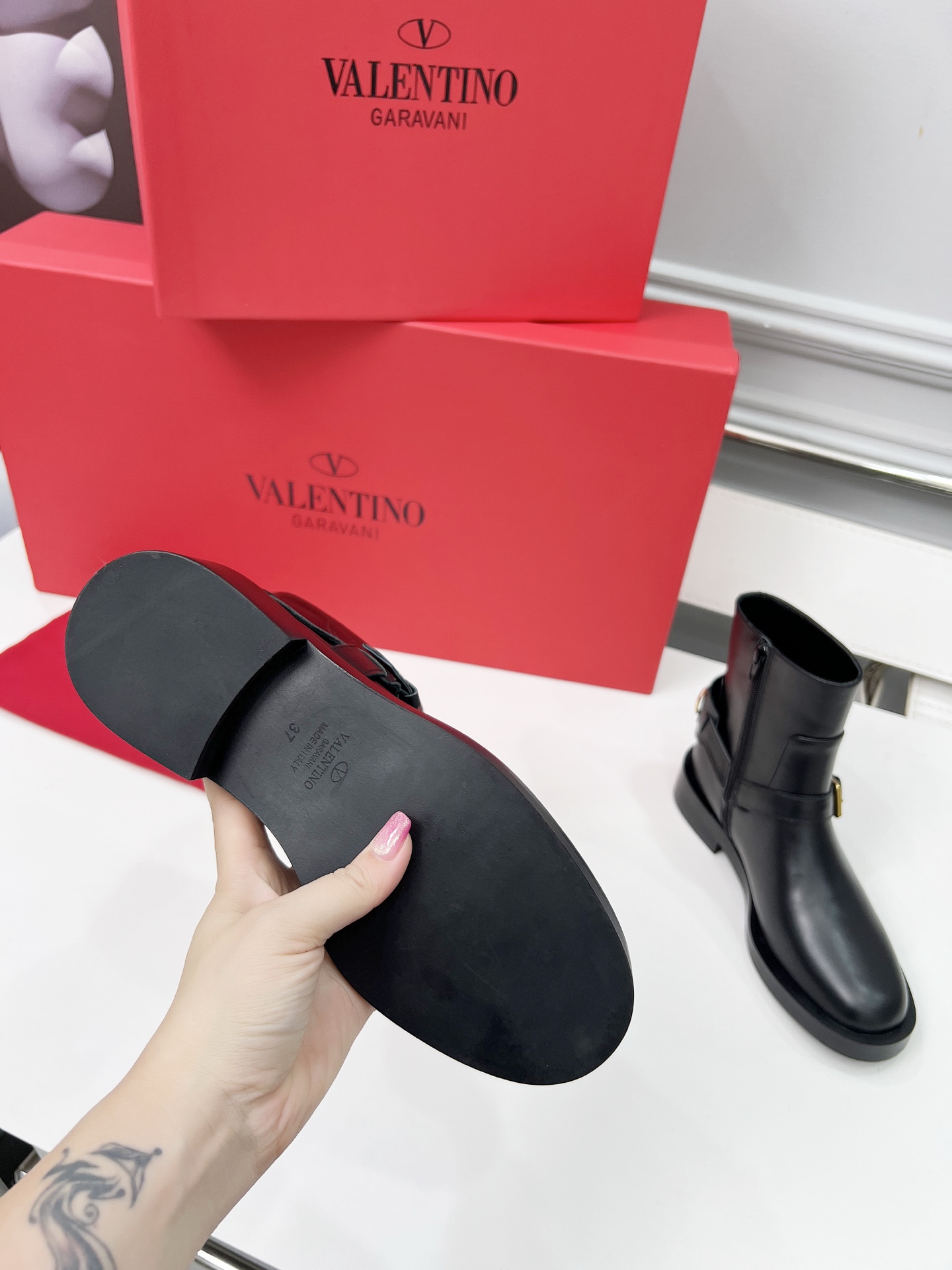 这款鞋子是AAAAA 1:1 质量 (非常棒). 使用了和原版一模一样的材料. 商标部分也保持了和华伦天奴/Valentino一样. 图片拍摄是实物鞋子拍摄, 您所收到的实物保证和我们图片一模一样.