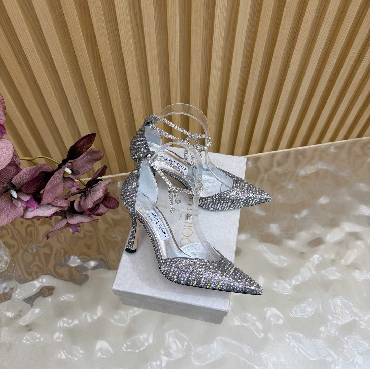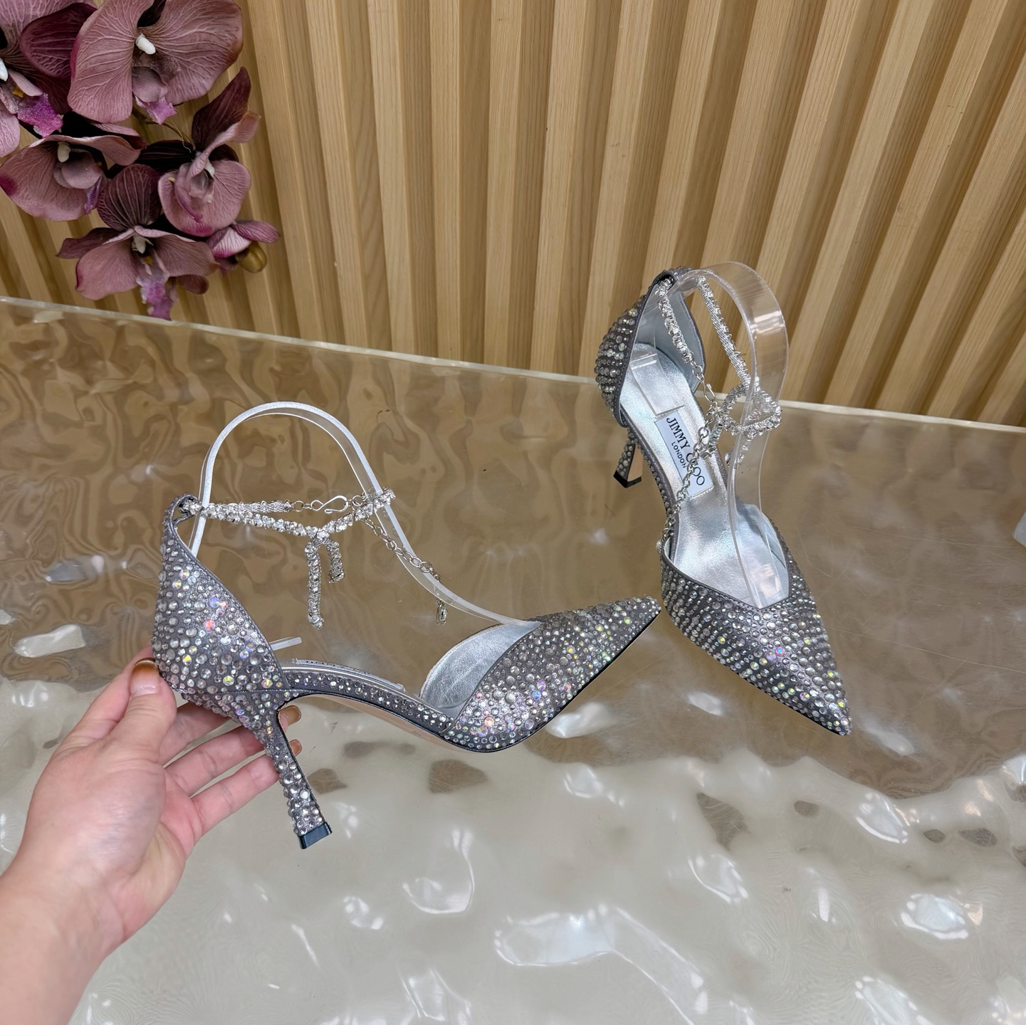 这款鞋子是AAAAA 1:1 质量 (非常棒). 使用了和原版一模一样的材料. 商标部分也保持了和吉米乔/JIMMY CHOO一样. 图片拍摄是实物鞋子拍摄, 您所收到的实物保证和我们图片一模一样.