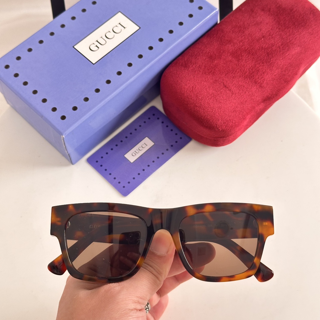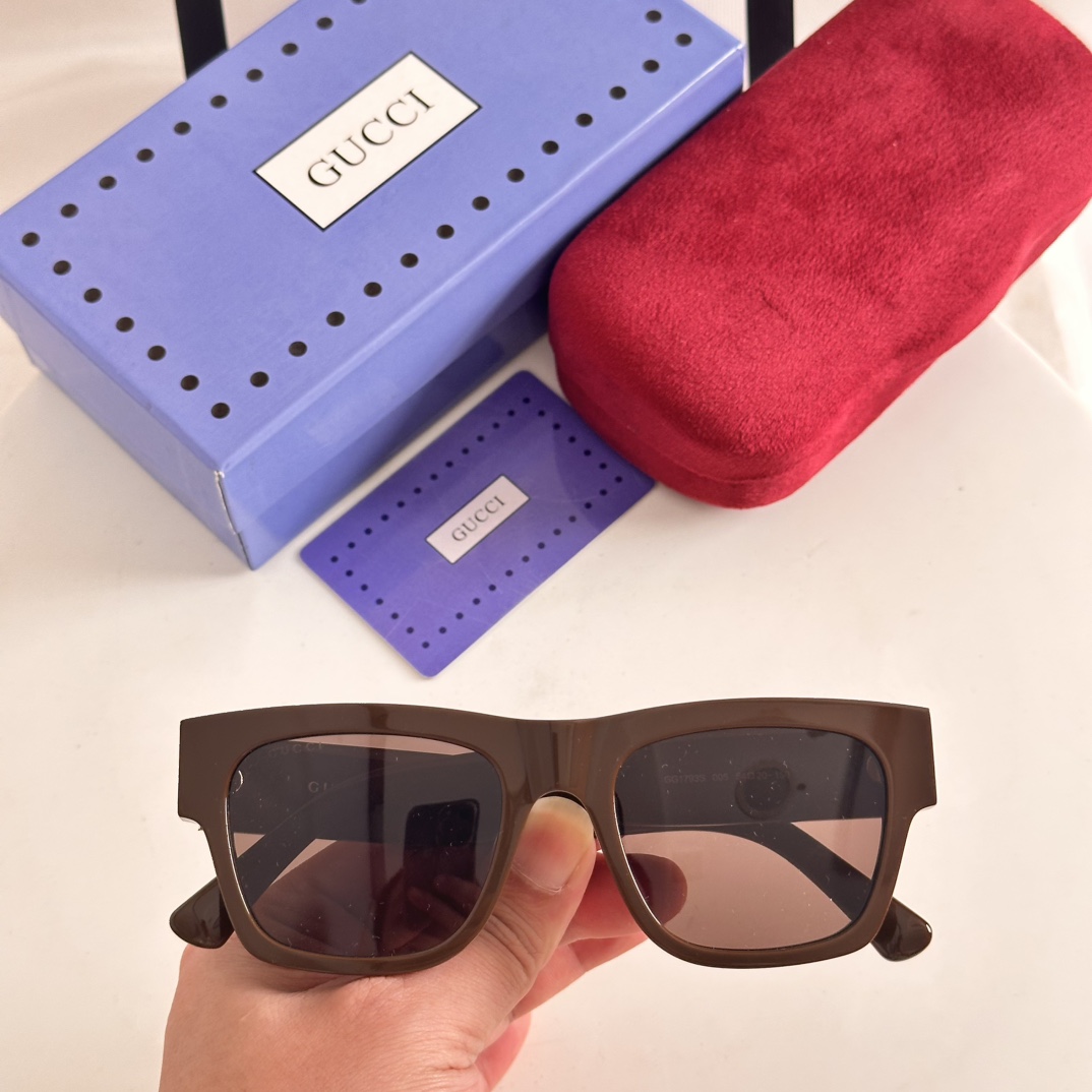 这款太阳眼镜是AAAAA 1:1 质量 (非常棒). 使用了和原版一模一样的材料. 商标部分也保持了和古奇/Gucci一样. 图片拍摄是实物太阳眼镜拍摄, 您所收到的实物保证和我们图片一模一样.