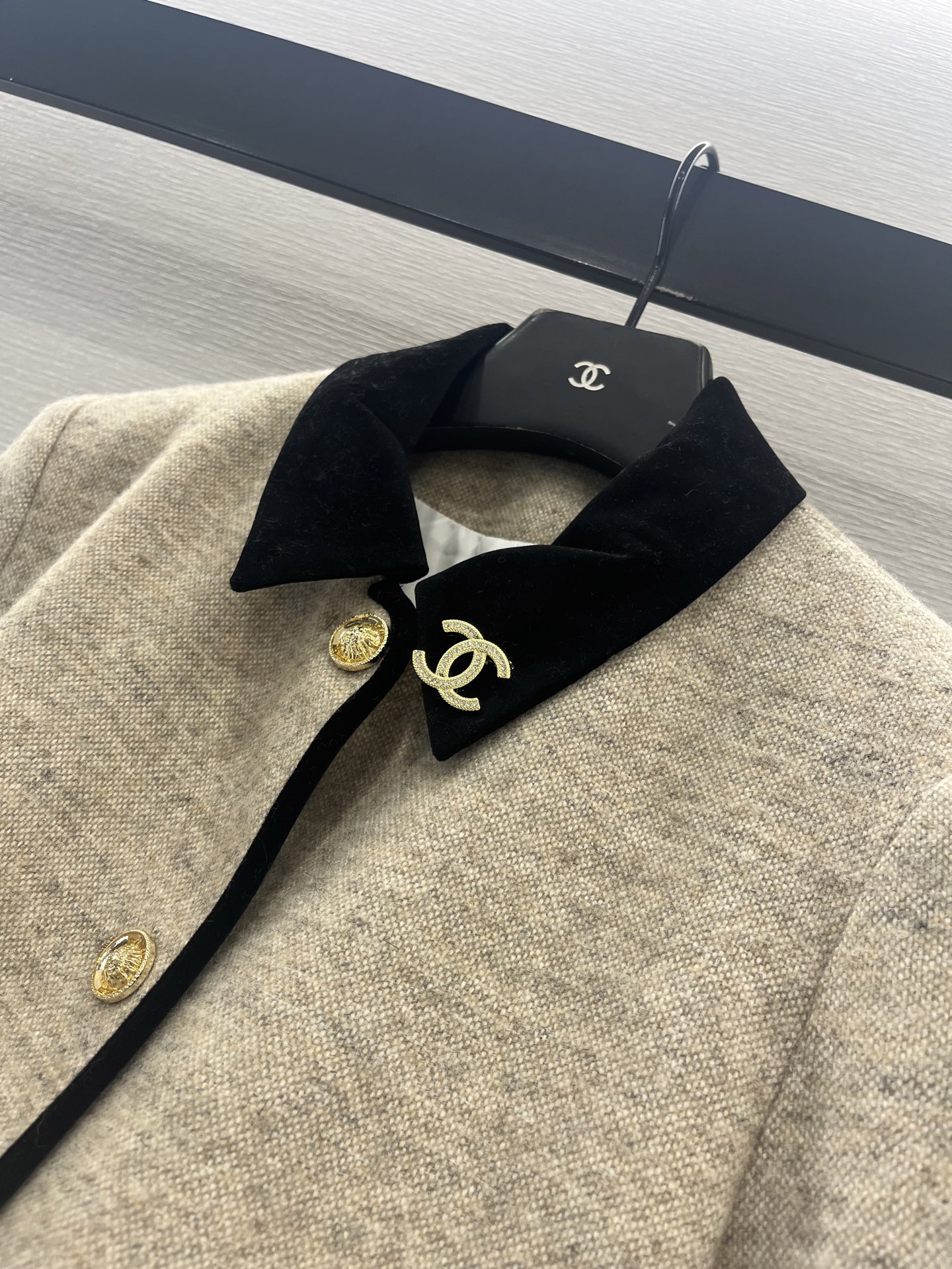 这款衣服是AAAAA 1:1 质量 (非常棒). 使用了和原版一模一样的材料. 商标部分也保持了和香奈儿/Chanel一样. 图片拍摄是实物衣服拍摄, 您所收到的实物保证和我们图片一模一样.