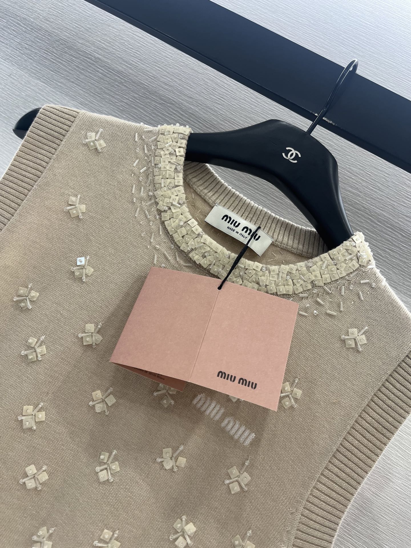 这款衣服是AAAAA 1:1 质量 (非常棒). 使用了和原版一模一样的材料. 商标部分也保持了和缪缪/Miu Miu一样. 图片拍摄是实物衣服拍摄, 您所收到的实物保证和我们图片一模一样.