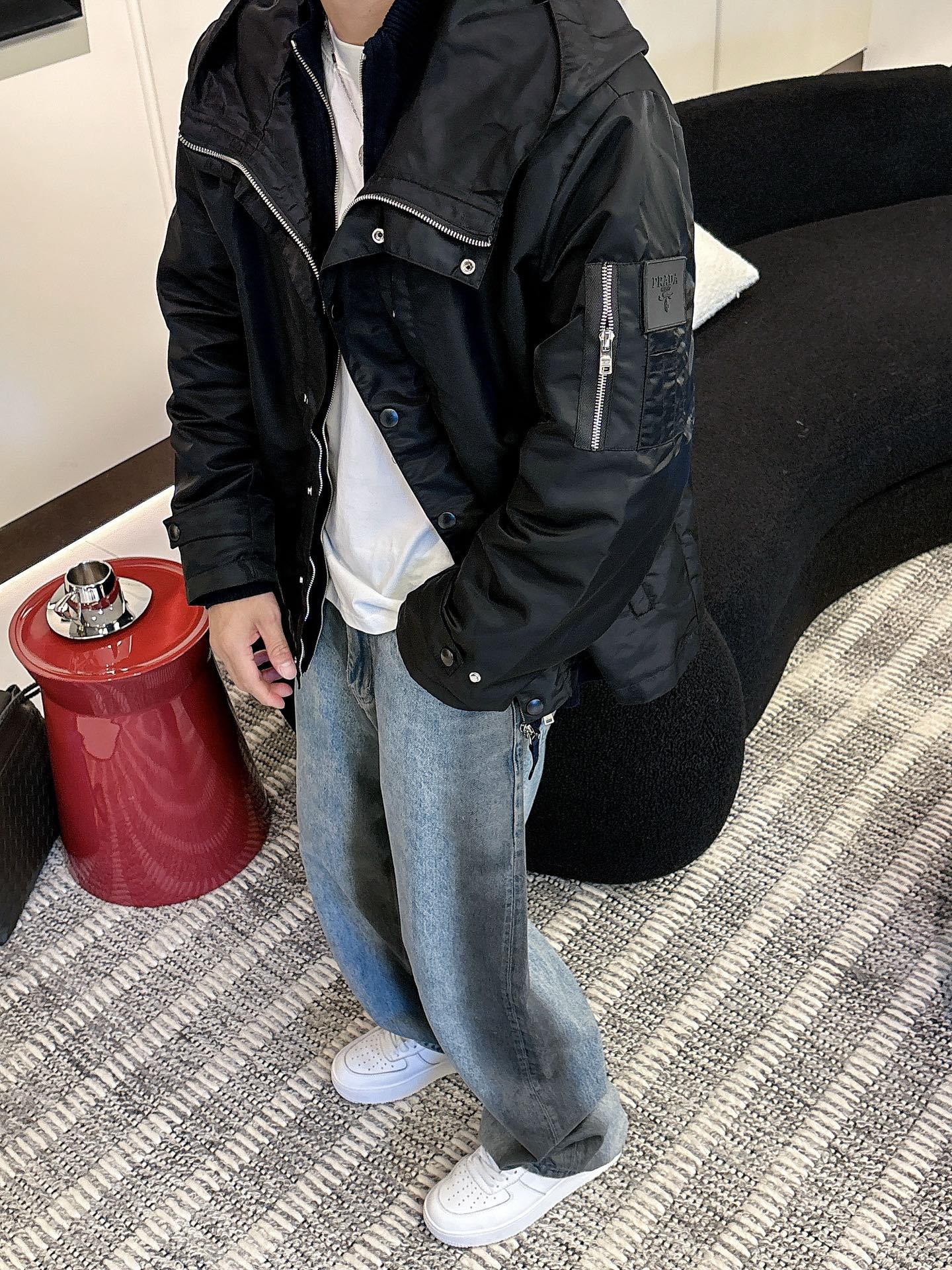 这款衣服是AAAAA 1:1 质量 (非常棒). 使用了和原版一模一样的材料. 商标部分也保持了和普拉达/Prada一样. 图片拍摄是实物衣服拍摄, 您所收到的实物保证和我们图片一模一样.