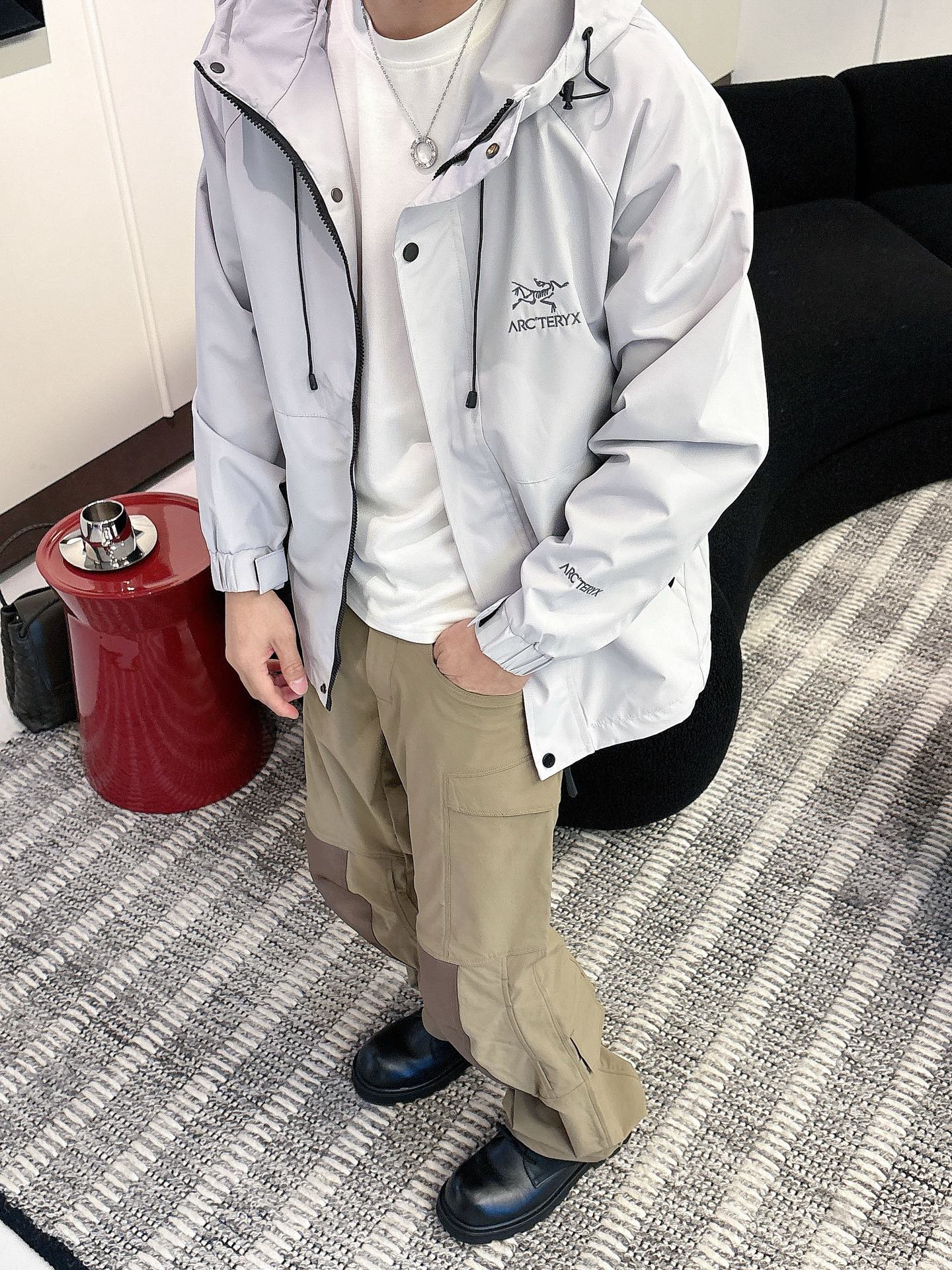 这款衣服是AAAAA 1:1 质量 (非常棒). 使用了和原版一模一样的材料. 商标部分也保持了和ARC'TERYX一样. 图片拍摄是实物衣服拍摄, 您所收到的实物保证和我们图片一模一样.