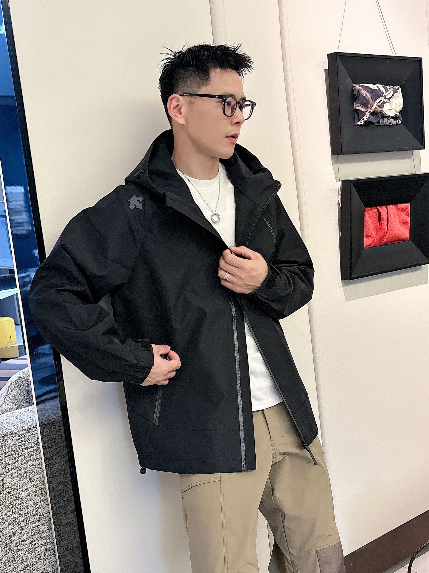这款衣服是AAAAA 1:1 质量 (非常棒). 使用了和原版一模一样的材料. 商标部分也保持了和Descente一样. 图片拍摄是实物衣服拍摄, 您所收到的实物保证和我们图片一模一样.