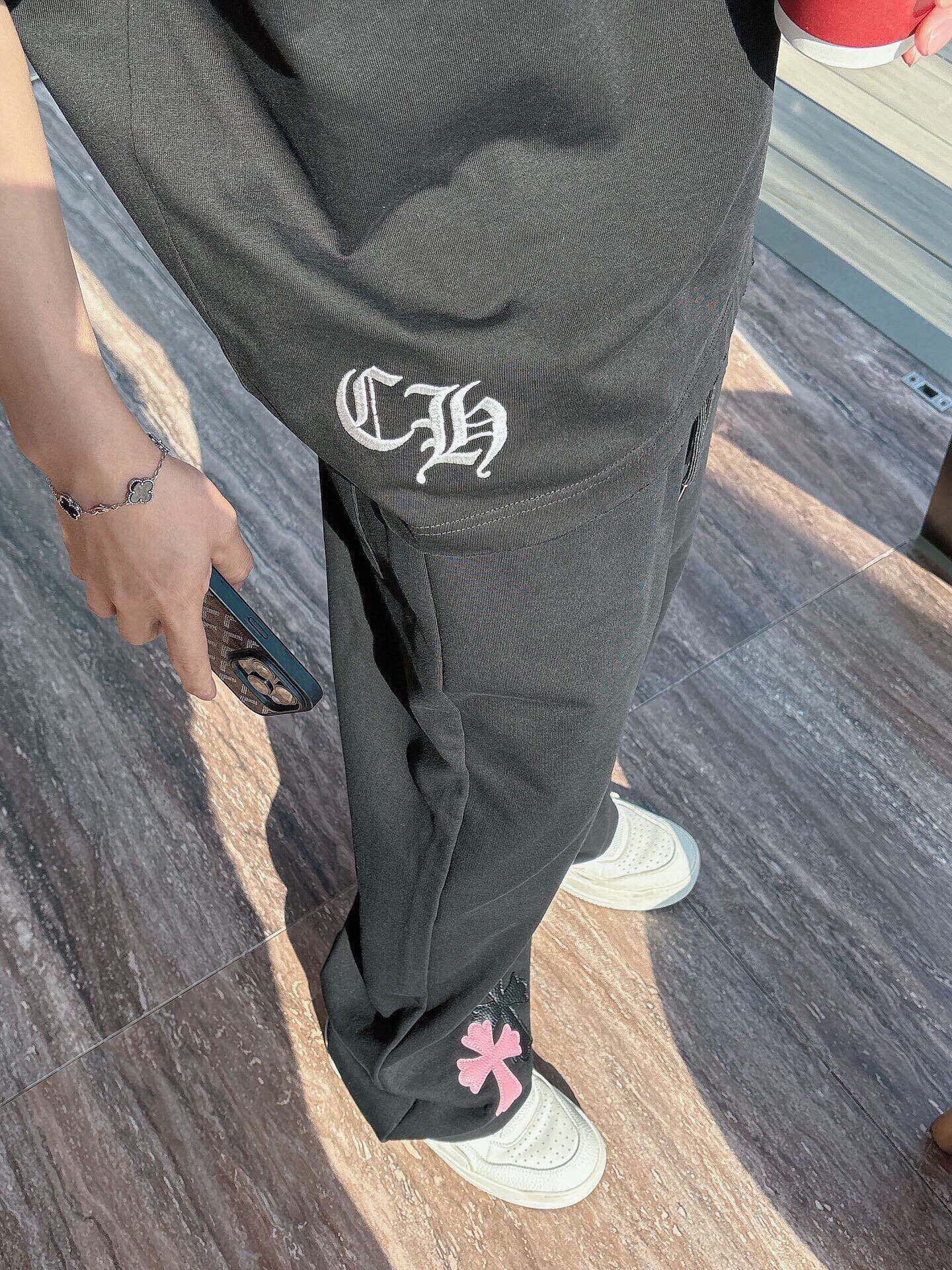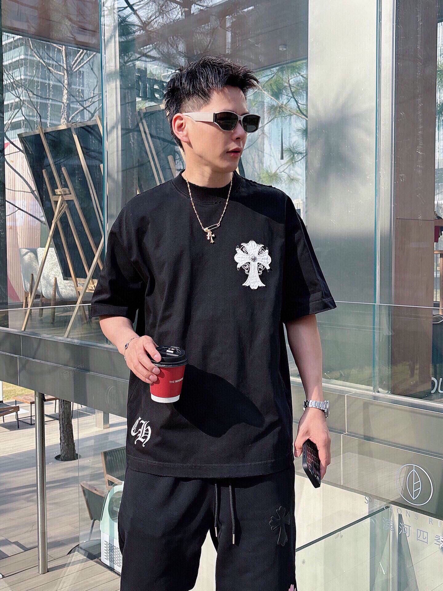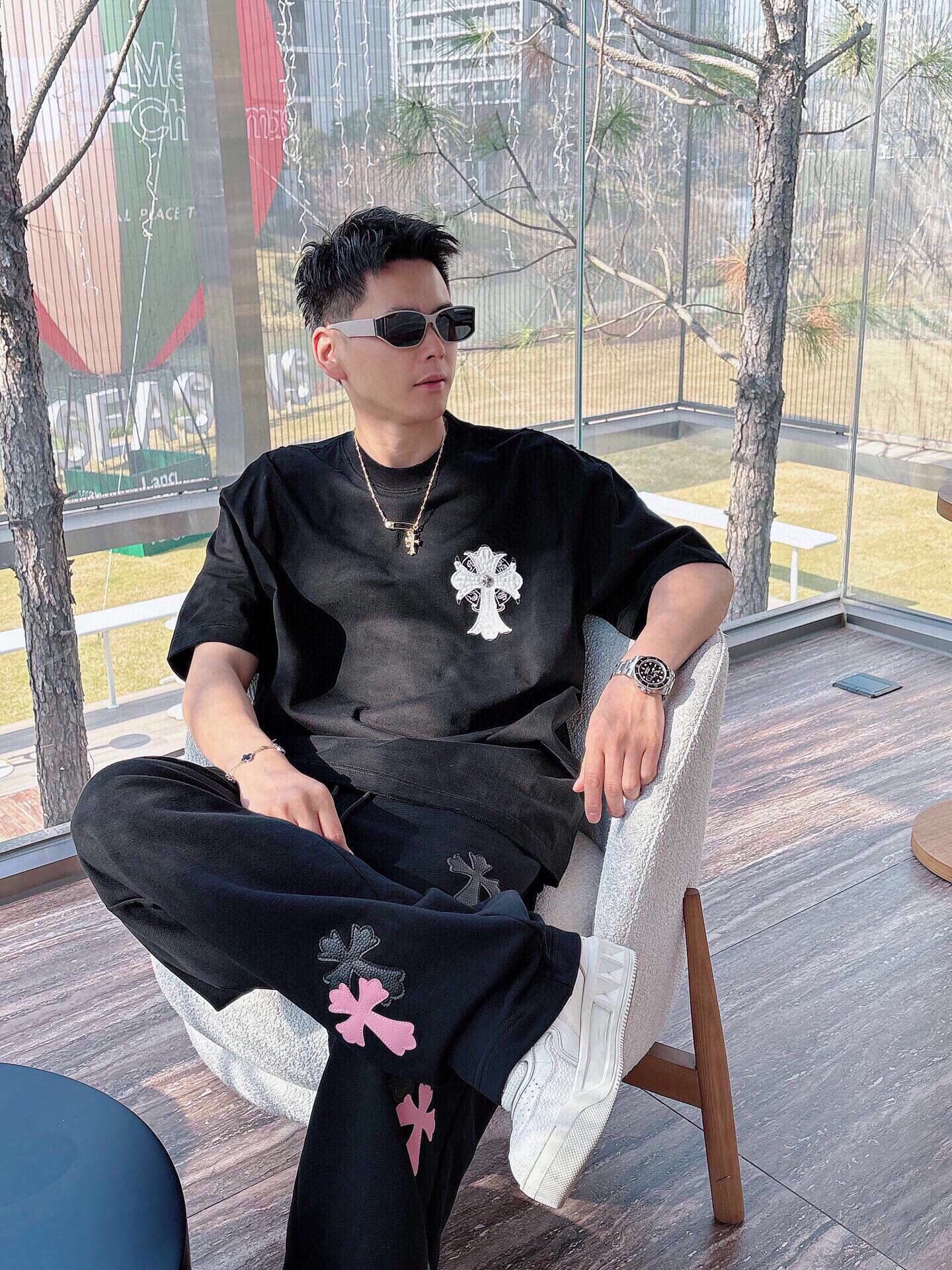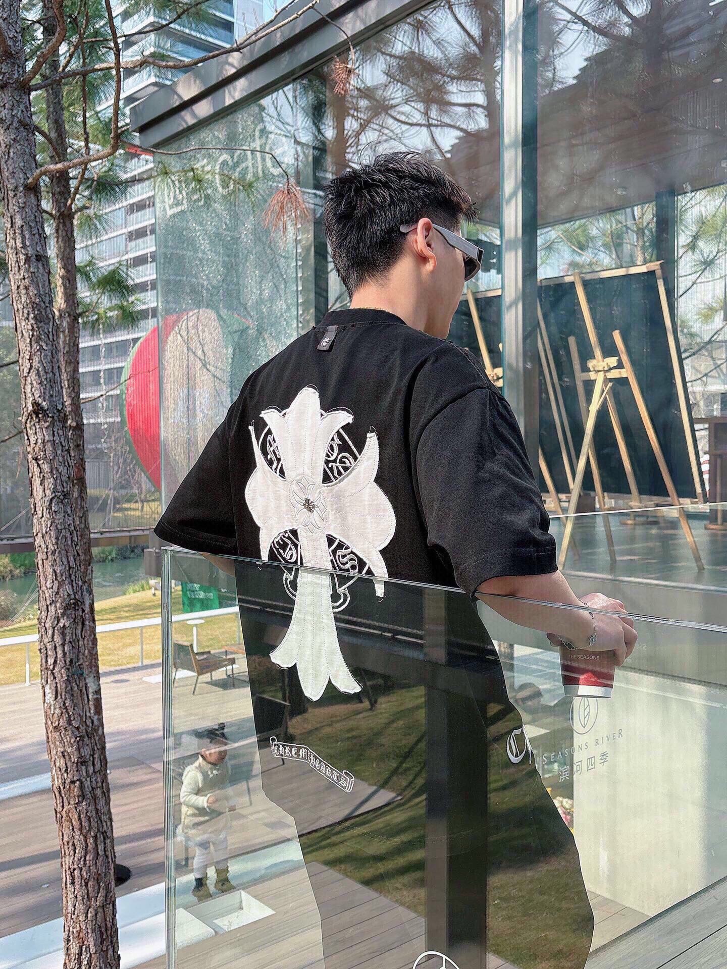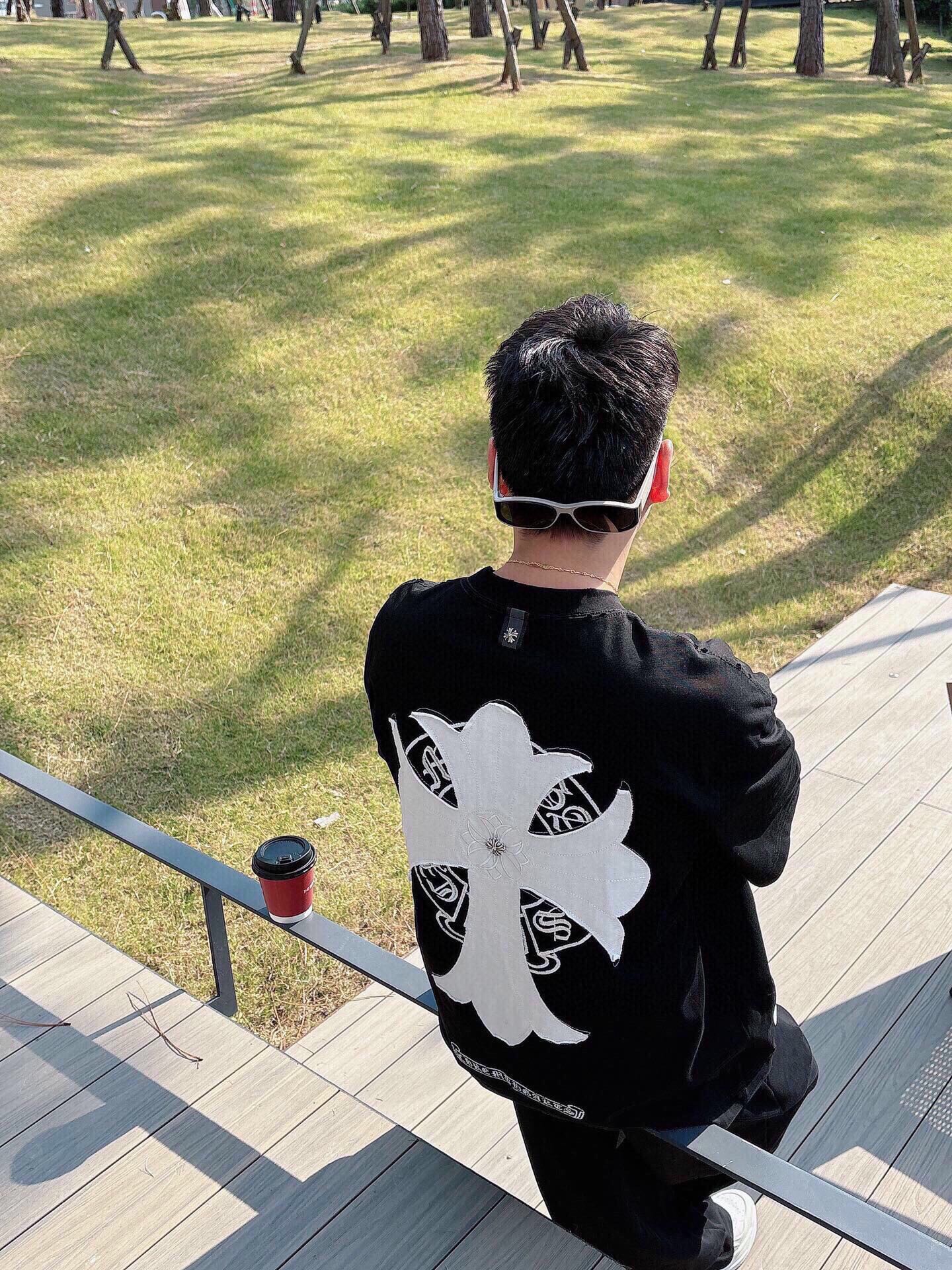 这款衣服是AAAAA 1:1 质量 (非常棒). 使用了和原版一模一样的材料. 商标部分也保持了和克罗心/Chrome Hearts一样. 图片拍摄是实物衣服拍摄, 您所收到的实物保证和我们图片一模一样.