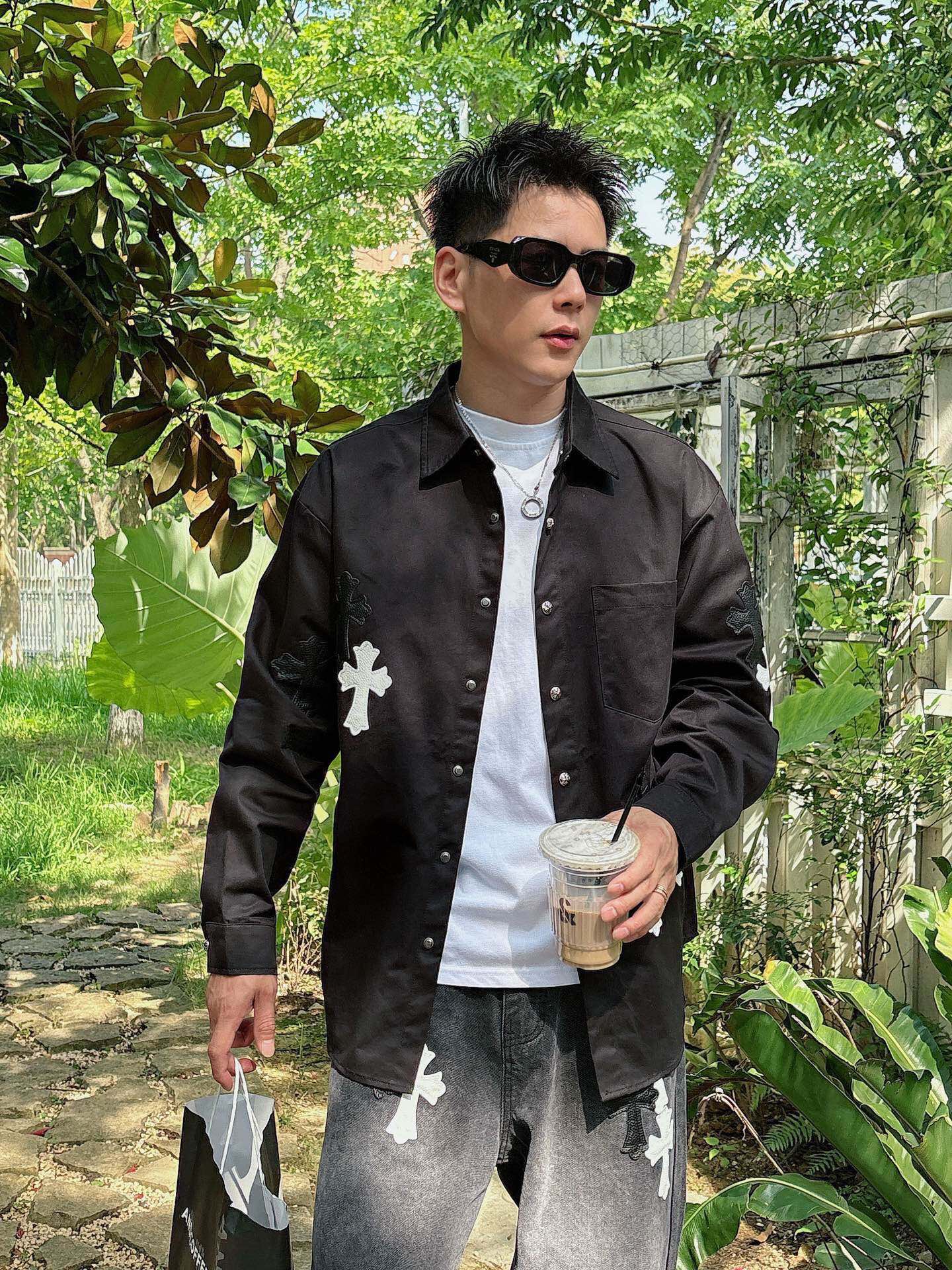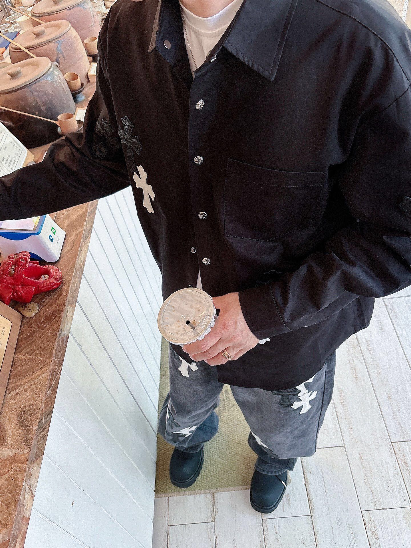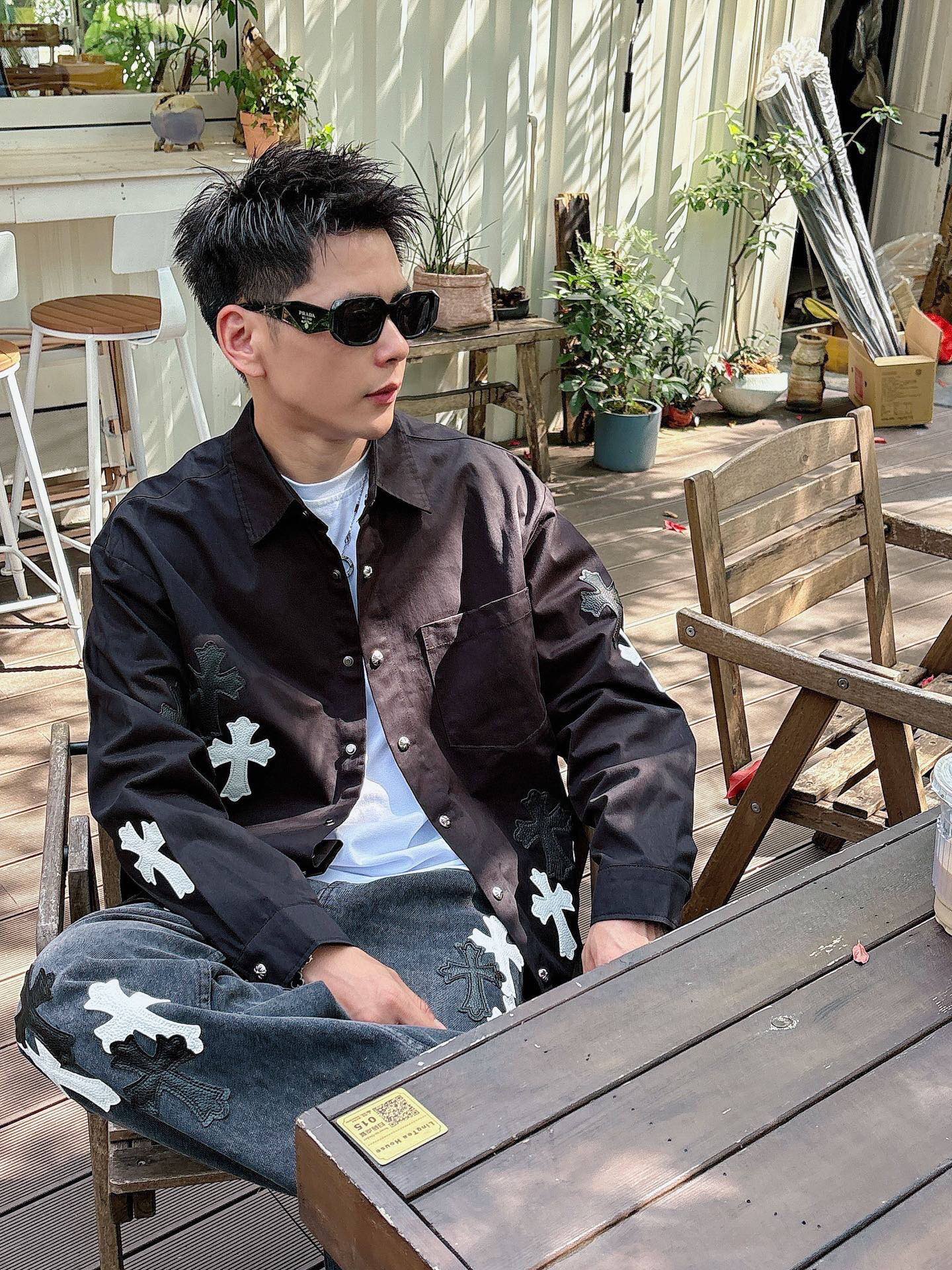 这款衣服是AAAAA 1:1 质量 (非常棒). 使用了和原版一模一样的材料. 商标部分也保持了和克罗心/Chrome Hearts一样. 图片拍摄是实物衣服拍摄, 您所收到的实物保证和我们图片一模一样.