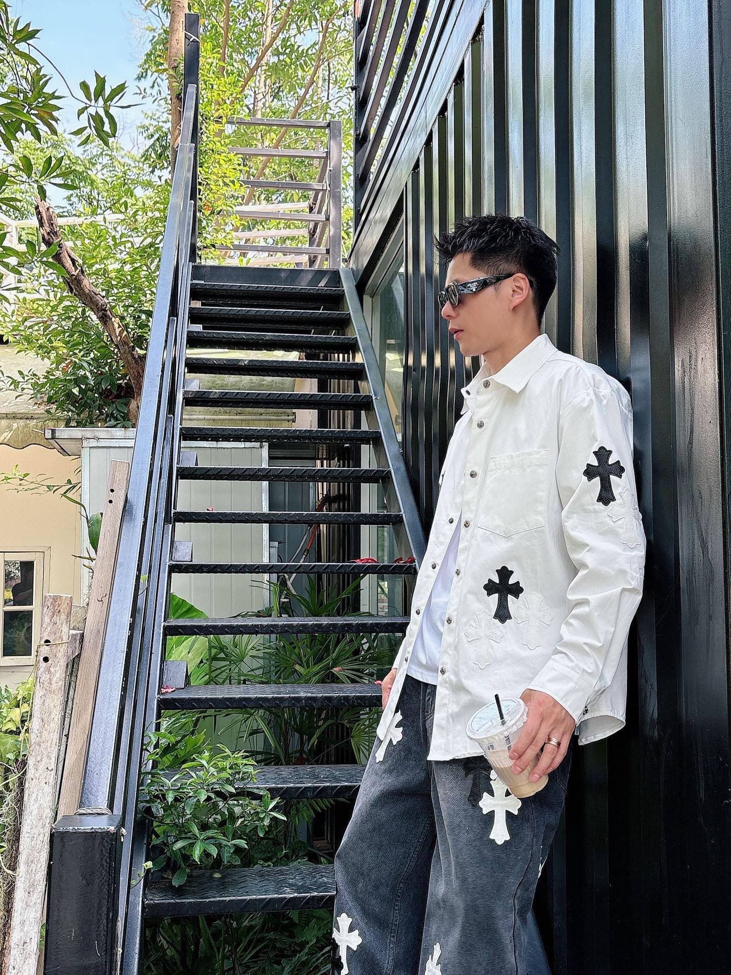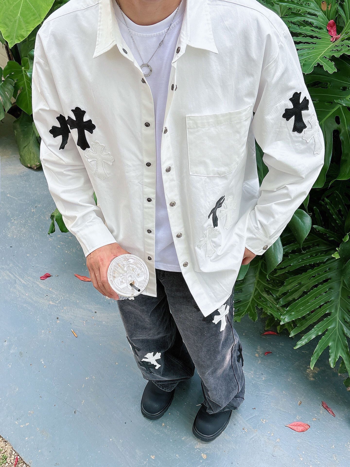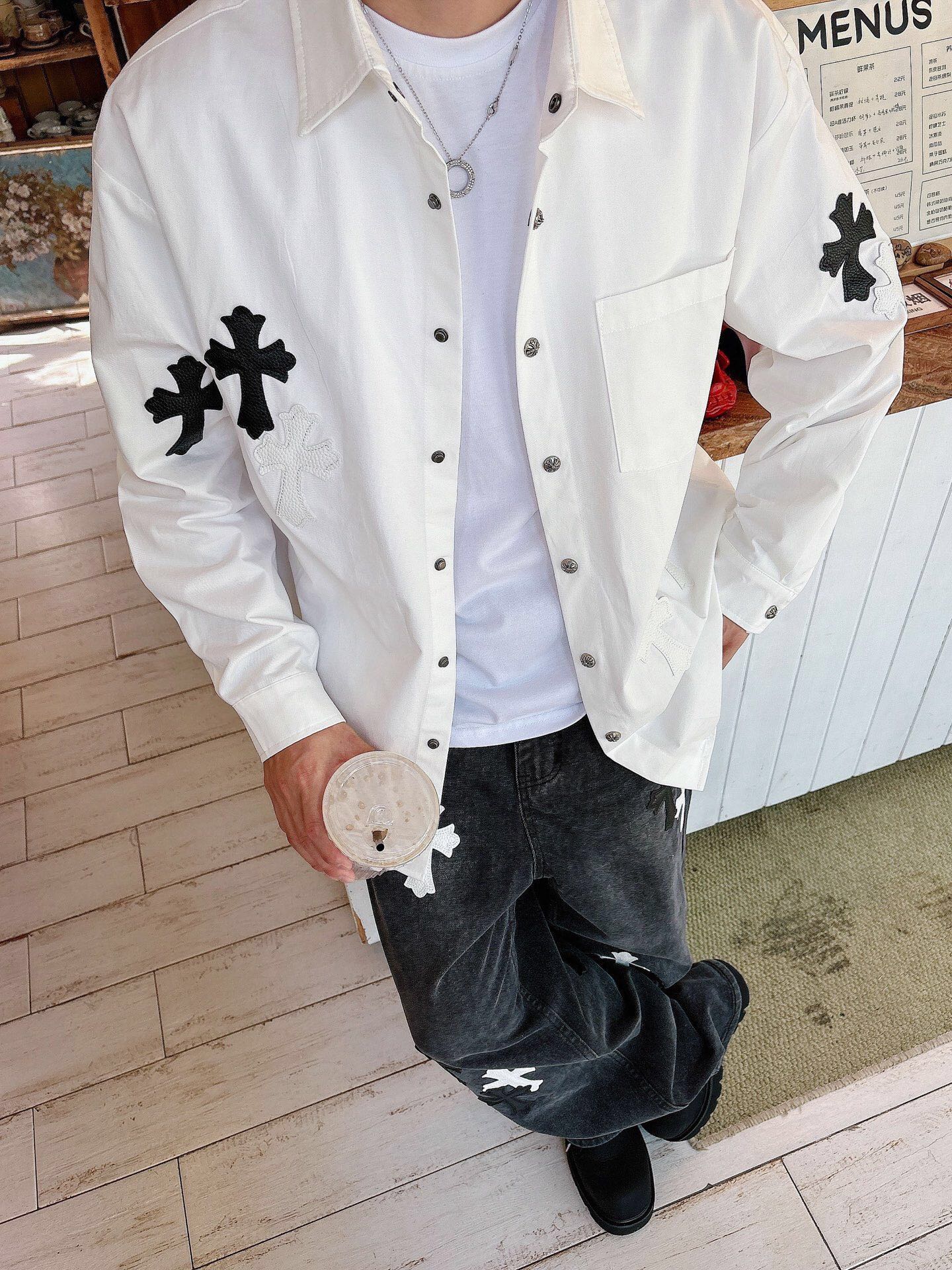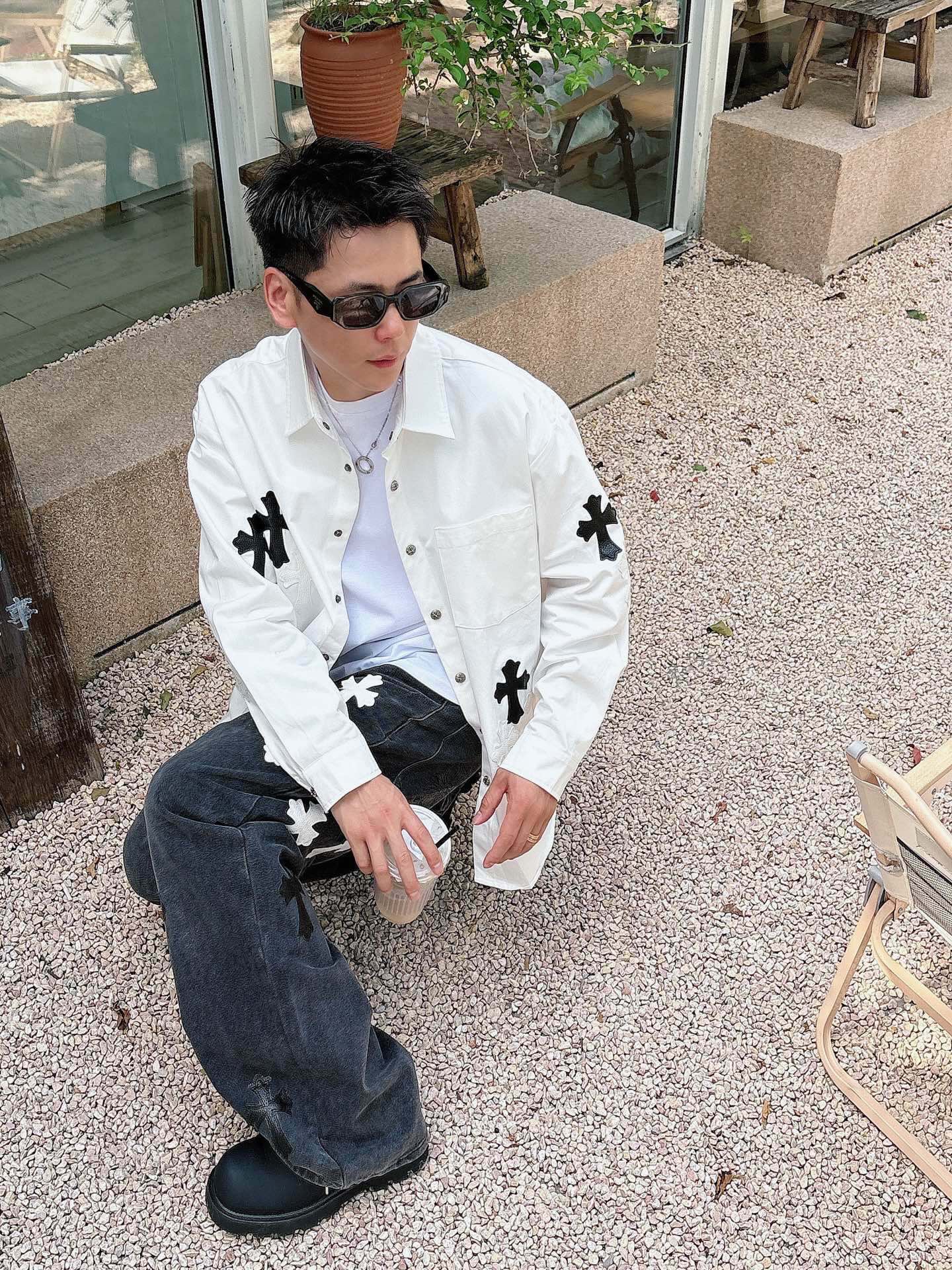 这款衣服是AAAAA 1:1 质量 (非常棒). 使用了和原版一模一样的材料. 商标部分也保持了和克罗心/Chrome Hearts一样. 图片拍摄是实物衣服拍摄, 您所收到的实物保证和我们图片一模一样.