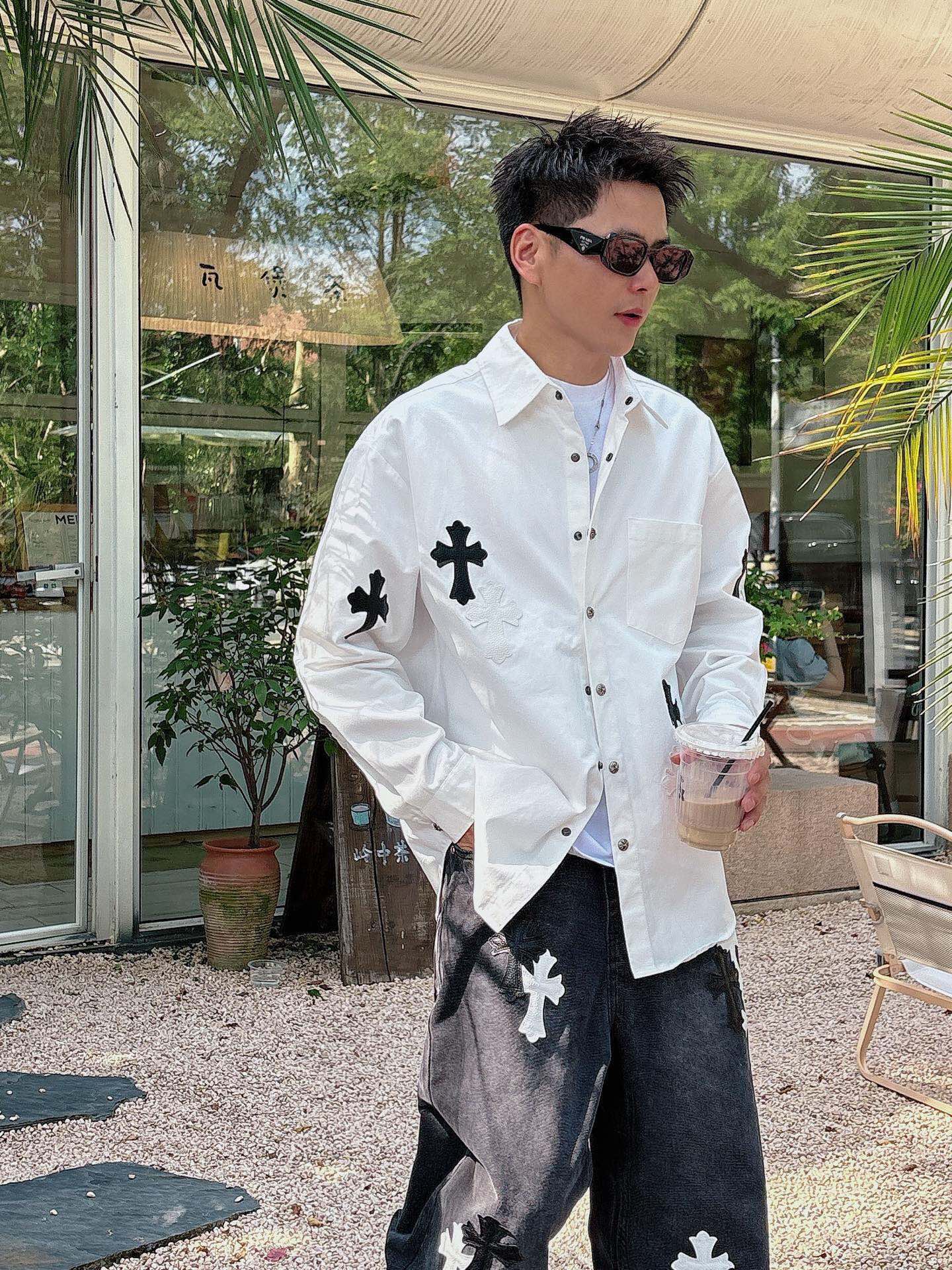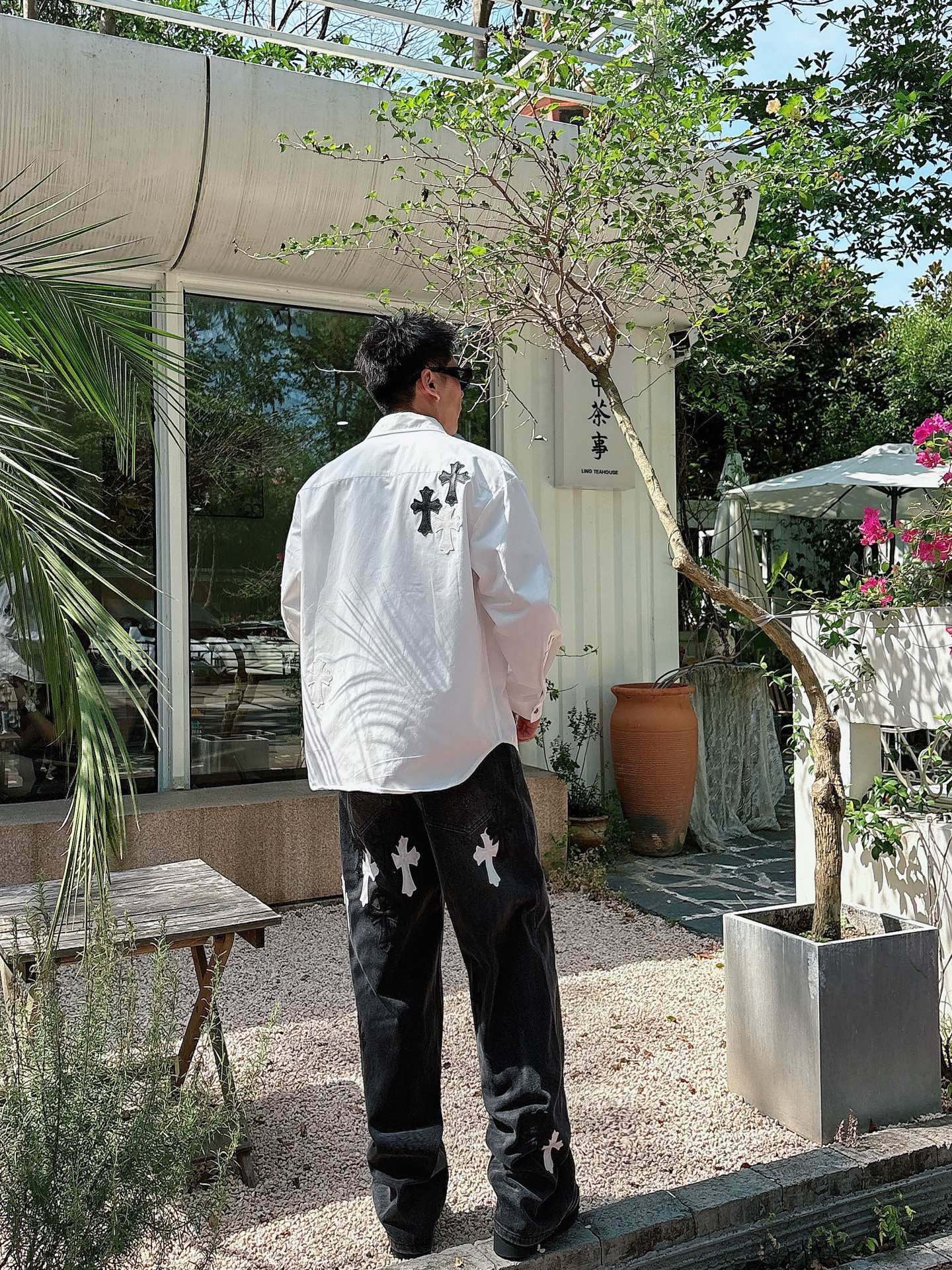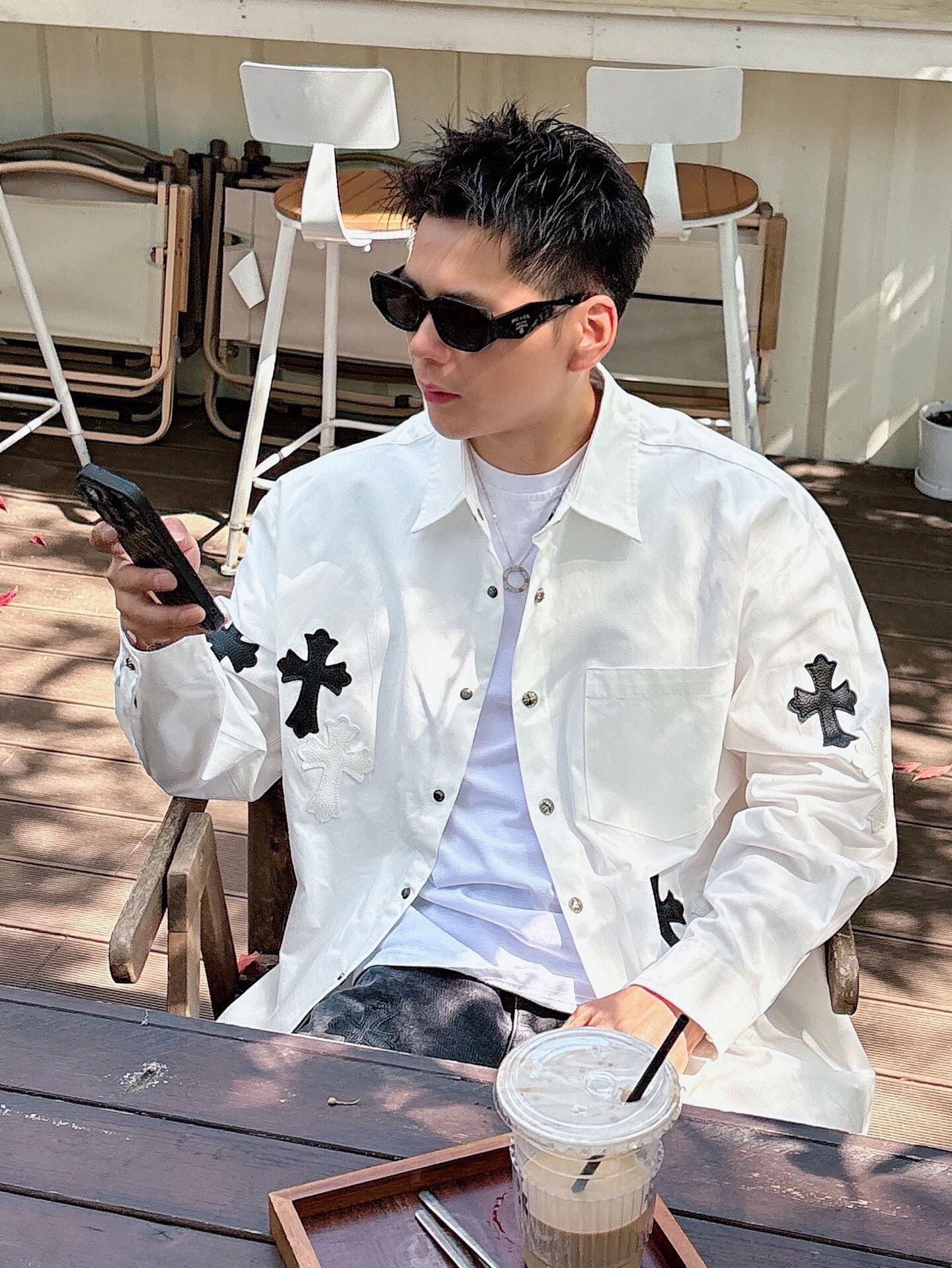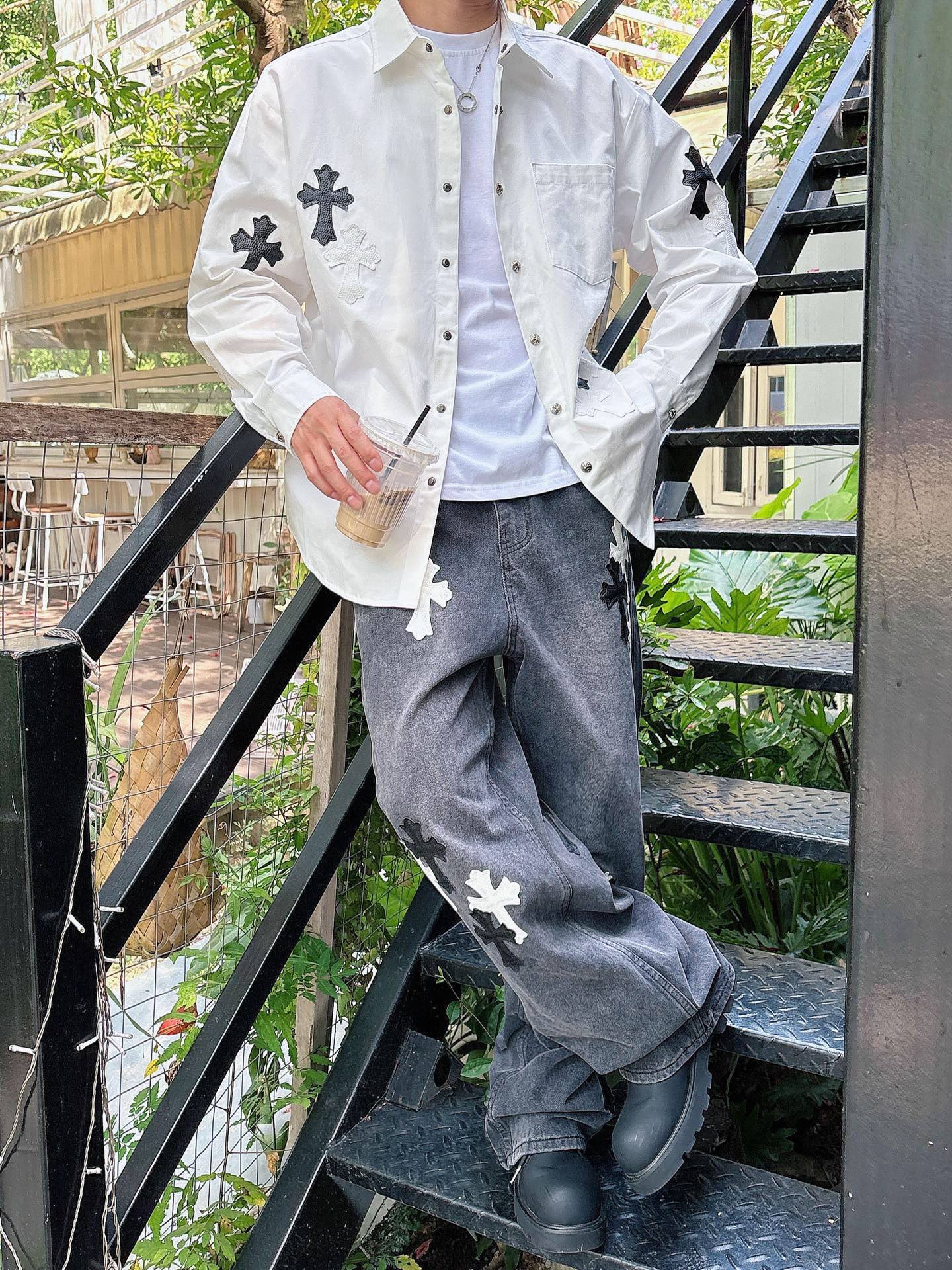 这款衣服是AAAAA 1:1 质量 (非常棒). 使用了和原版一模一样的材料. 商标部分也保持了和克罗心/Chrome Hearts一样. 图片拍摄是实物衣服拍摄, 您所收到的实物保证和我们图片一模一样.