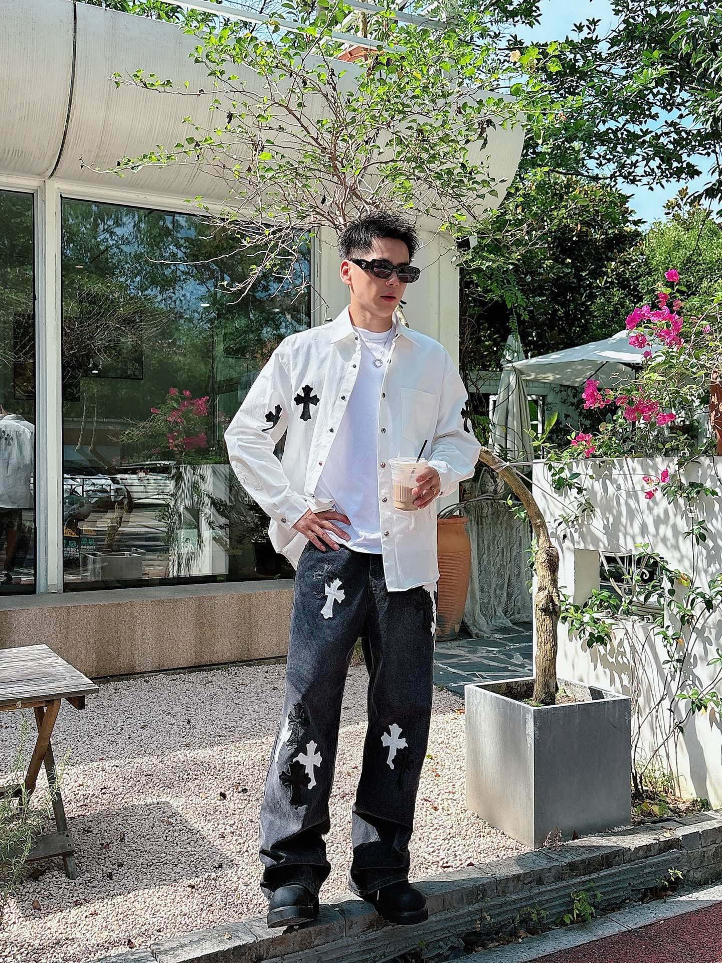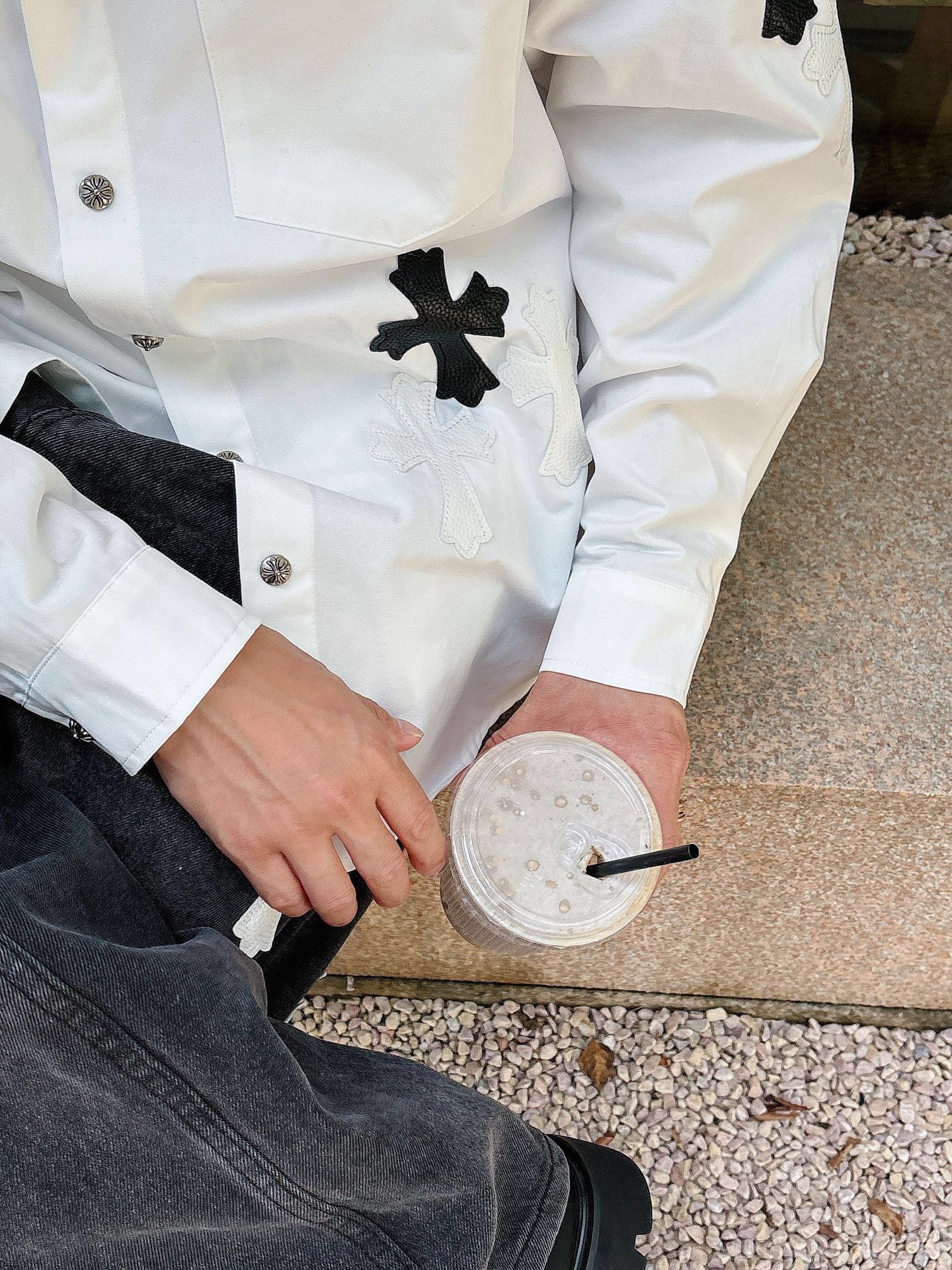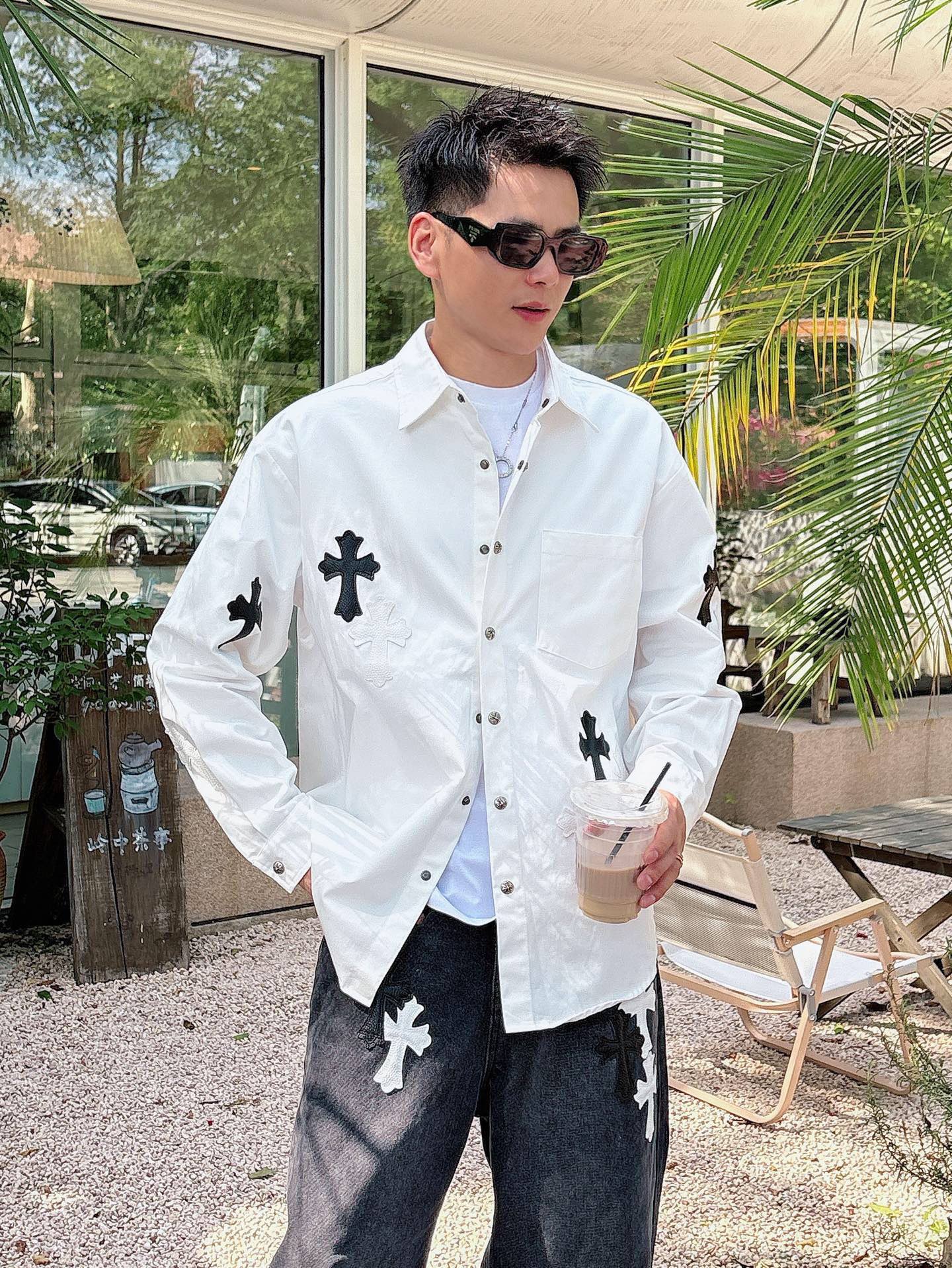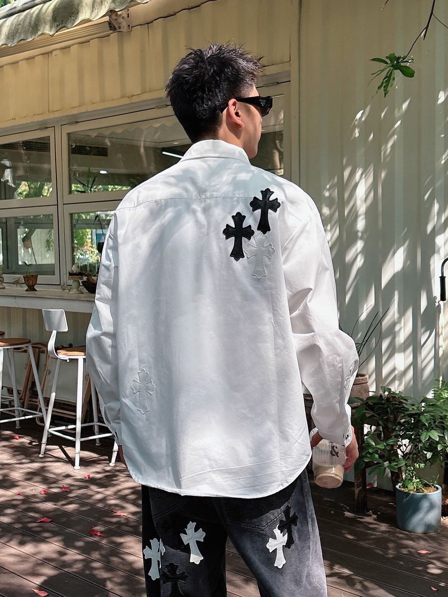 这款衣服是AAAAA 1:1 质量 (非常棒). 使用了和原版一模一样的材料. 商标部分也保持了和克罗心/Chrome Hearts一样. 图片拍摄是实物衣服拍摄, 您所收到的实物保证和我们图片一模一样.