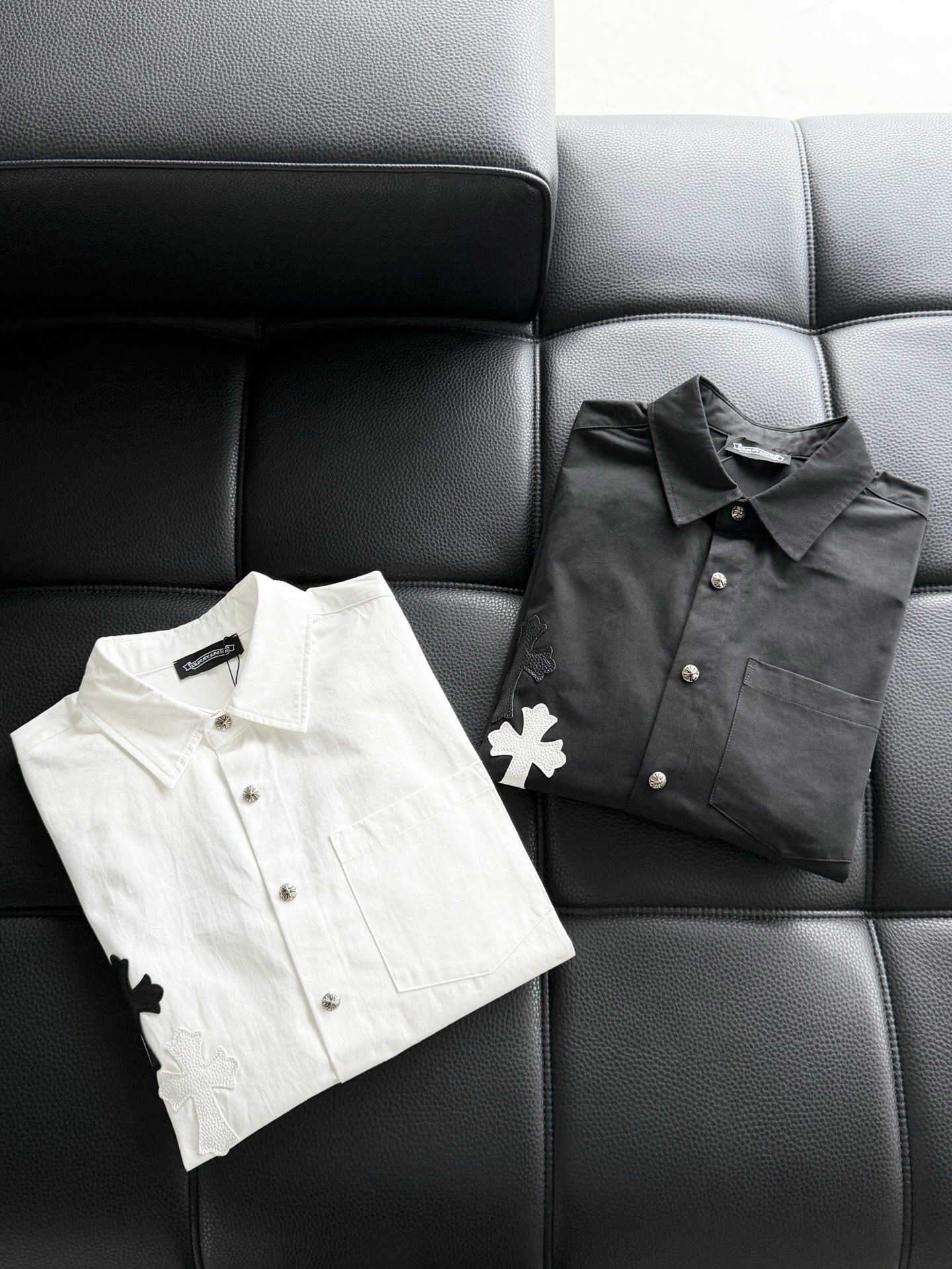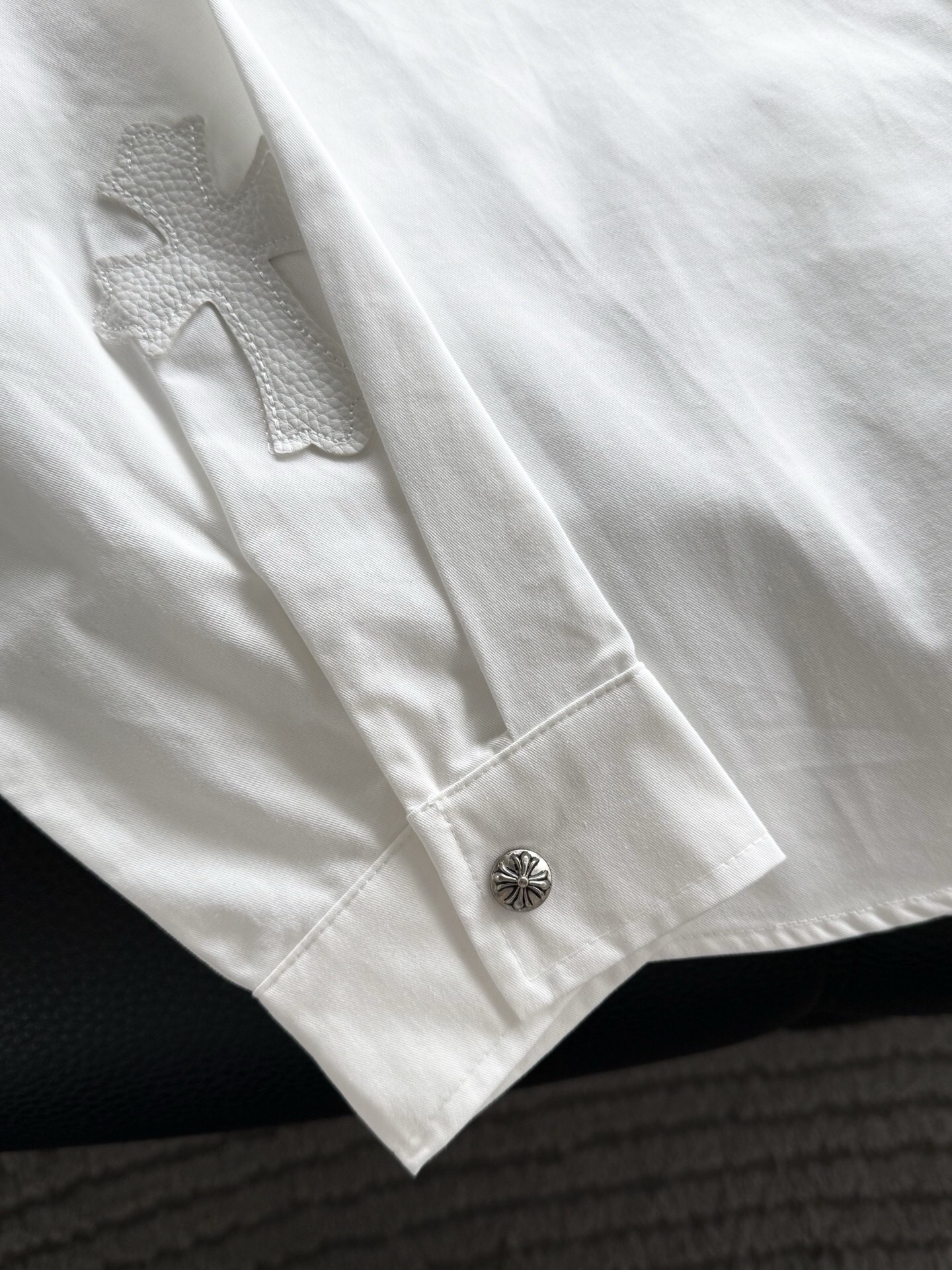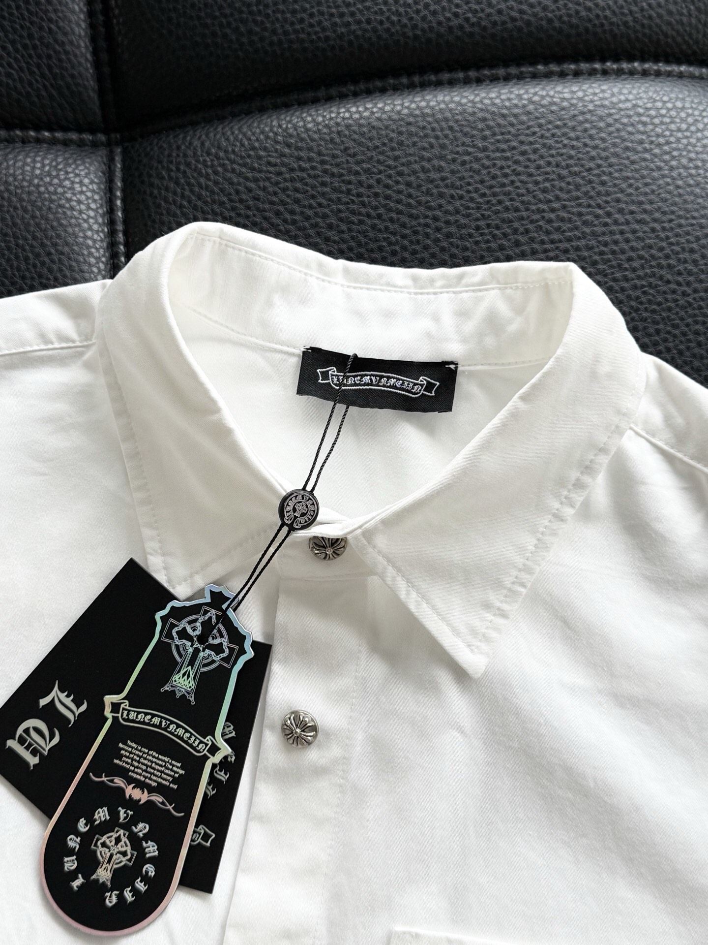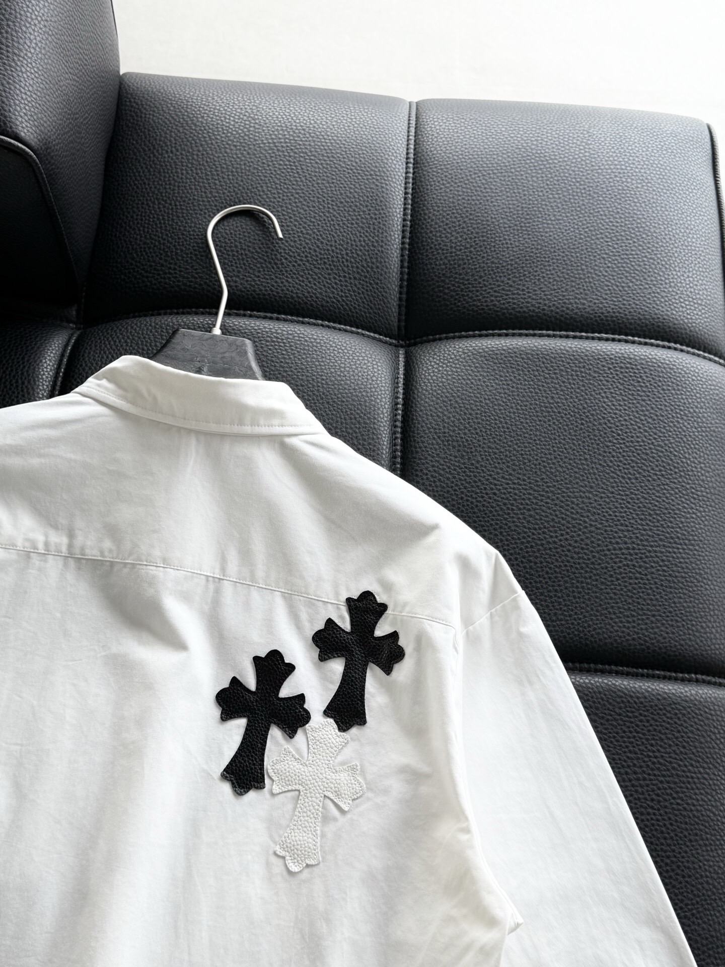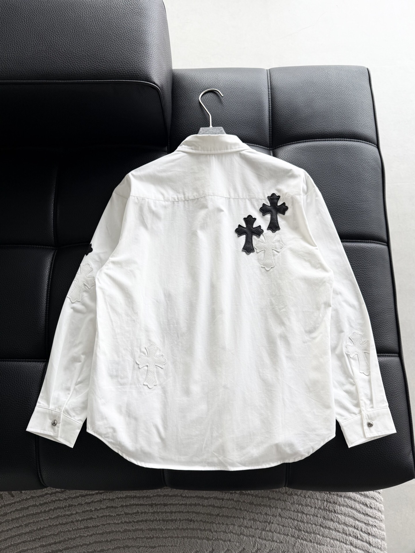 这款衣服是AAAAA 1:1 质量 (非常棒). 使用了和原版一模一样的材料. 商标部分也保持了和克罗心/Chrome Hearts一样. 图片拍摄是实物衣服拍摄, 您所收到的实物保证和我们图片一模一样.