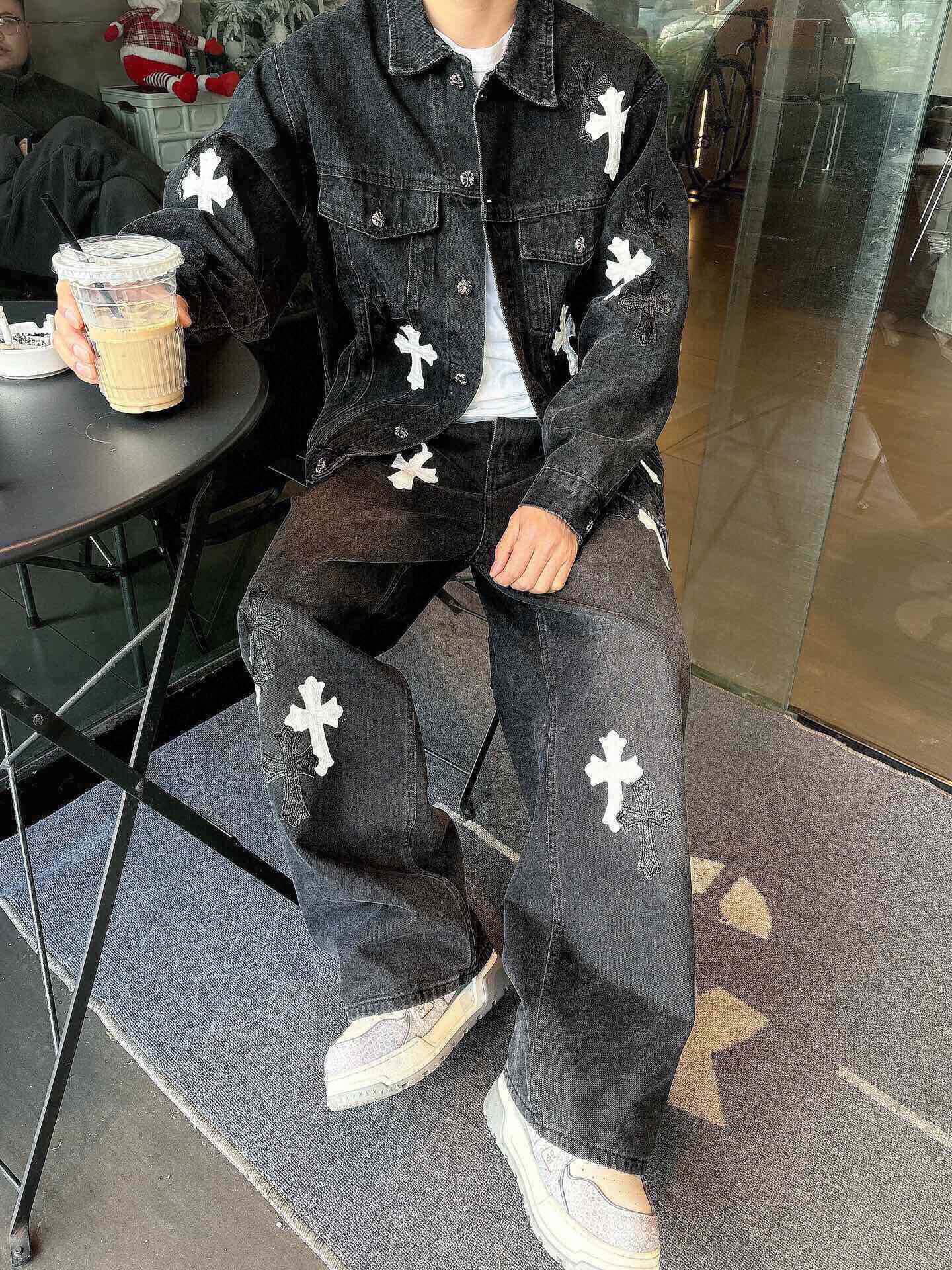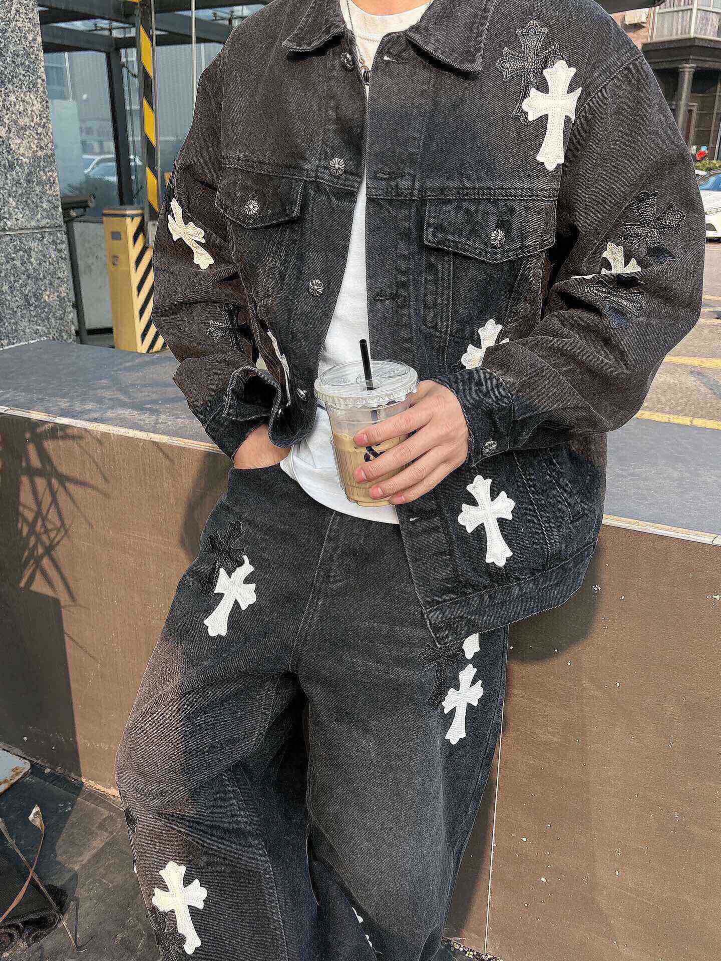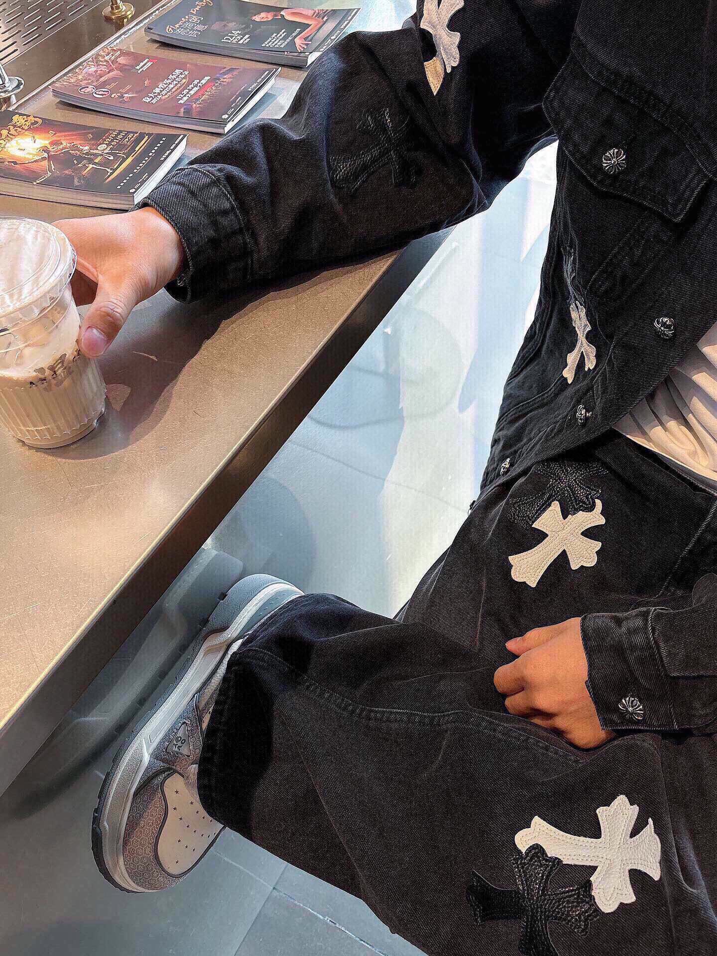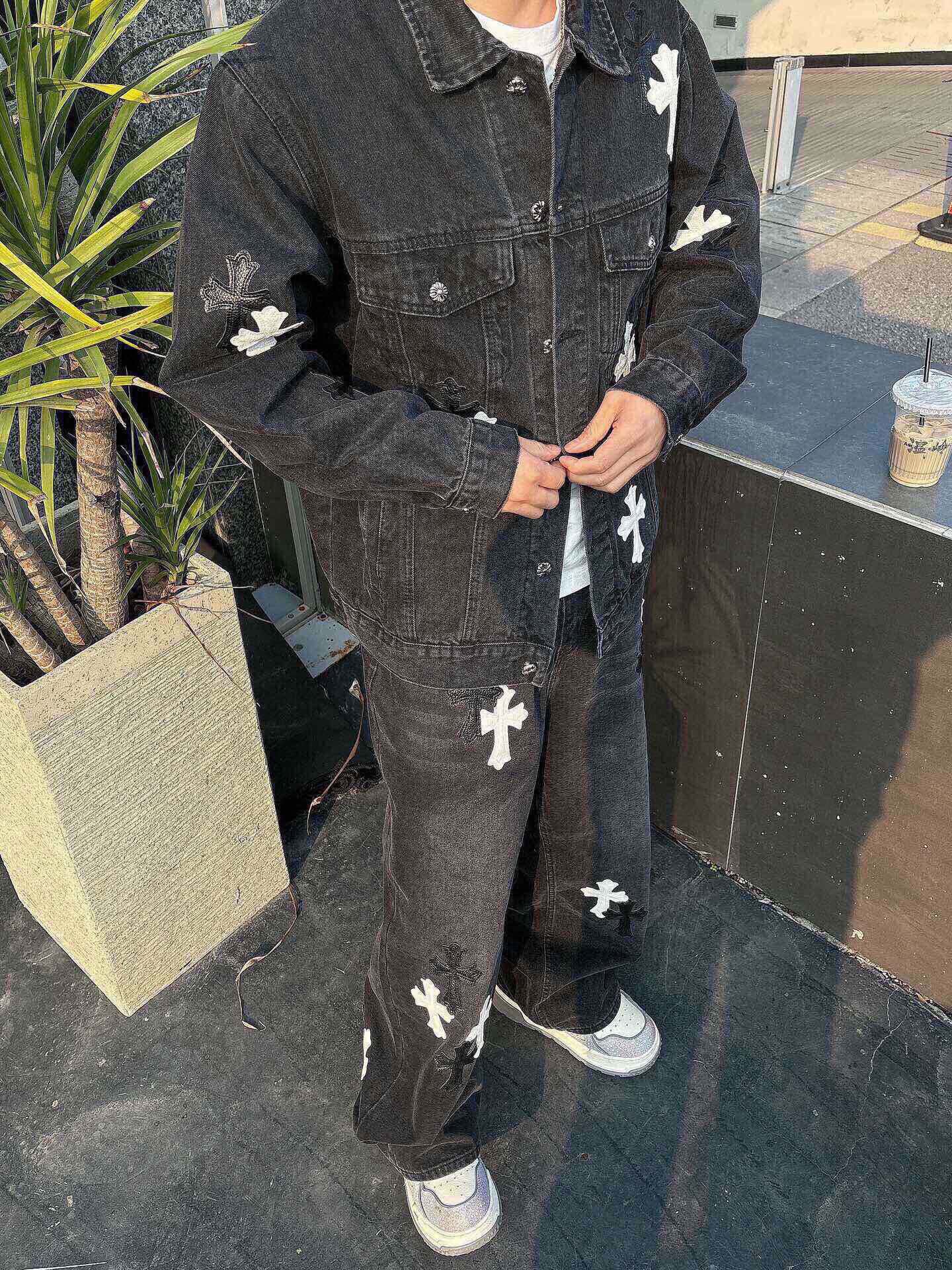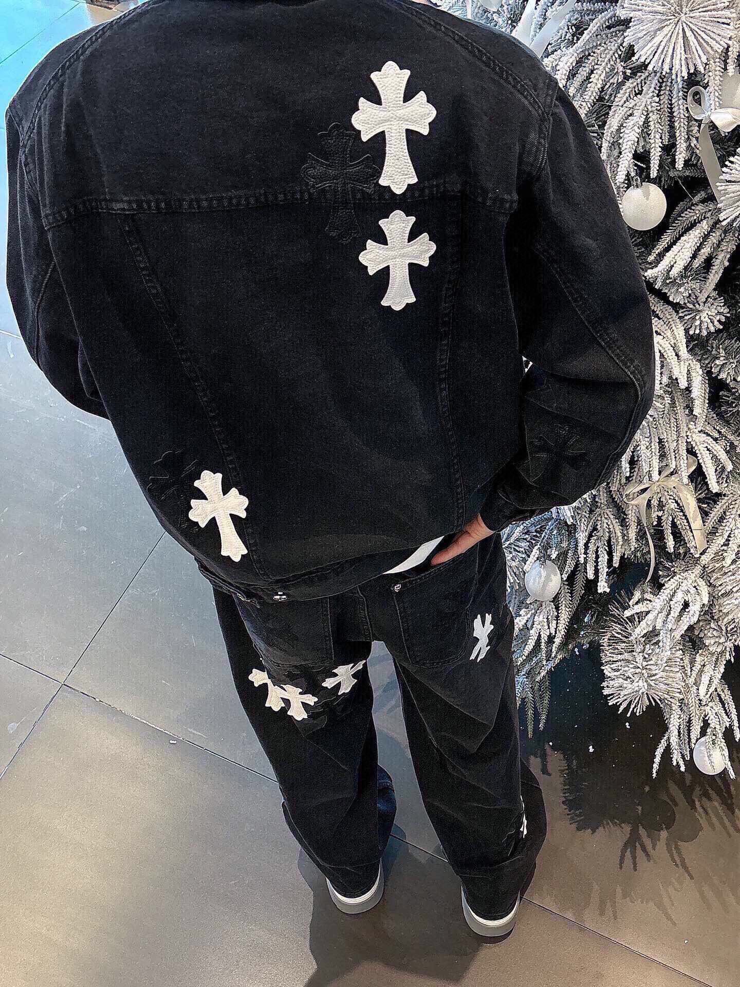 这款衣服是AAAAA 1:1 质量 (非常棒). 使用了和原版一模一样的材料. 商标部分也保持了和克罗心/Chrome Hearts一样. 图片拍摄是实物衣服拍摄, 您所收到的实物保证和我们图片一模一样.