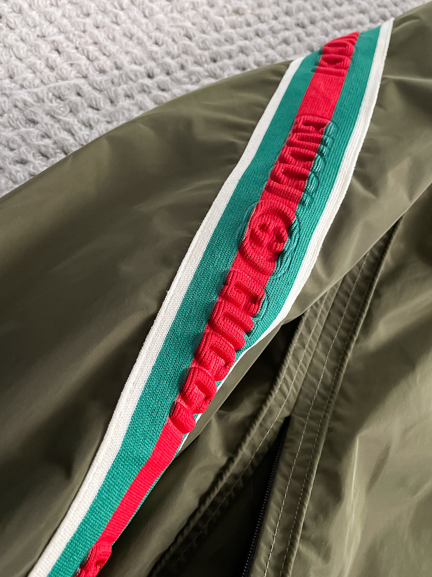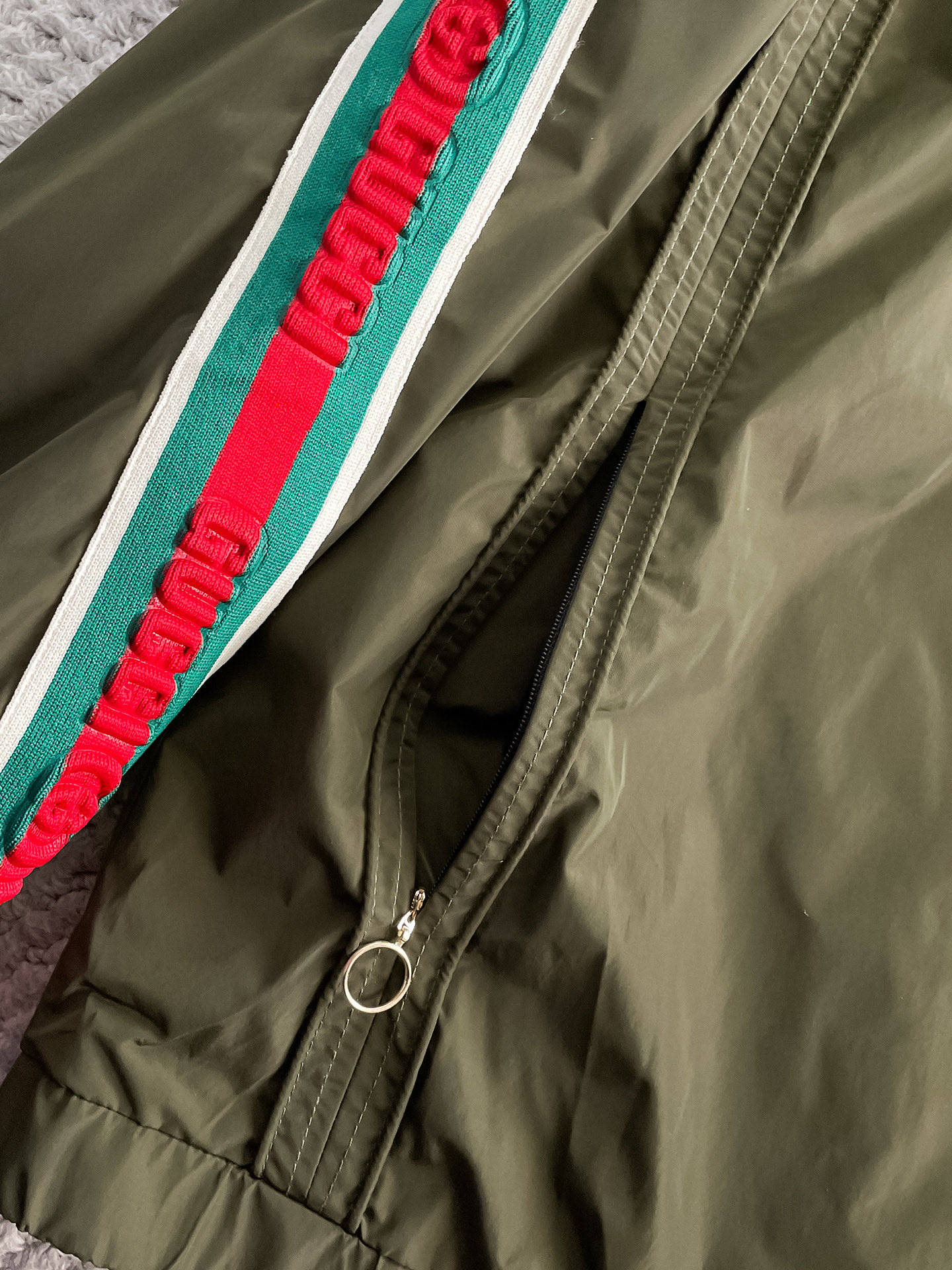 这款衣服是AAAAA 1:1 质量 (非常棒). 使用了和原版一模一样的材料. 商标部分也保持了和古奇/Gucci一样. 图片拍摄是实物衣服拍摄, 您所收到的实物保证和我们图片一模一样.