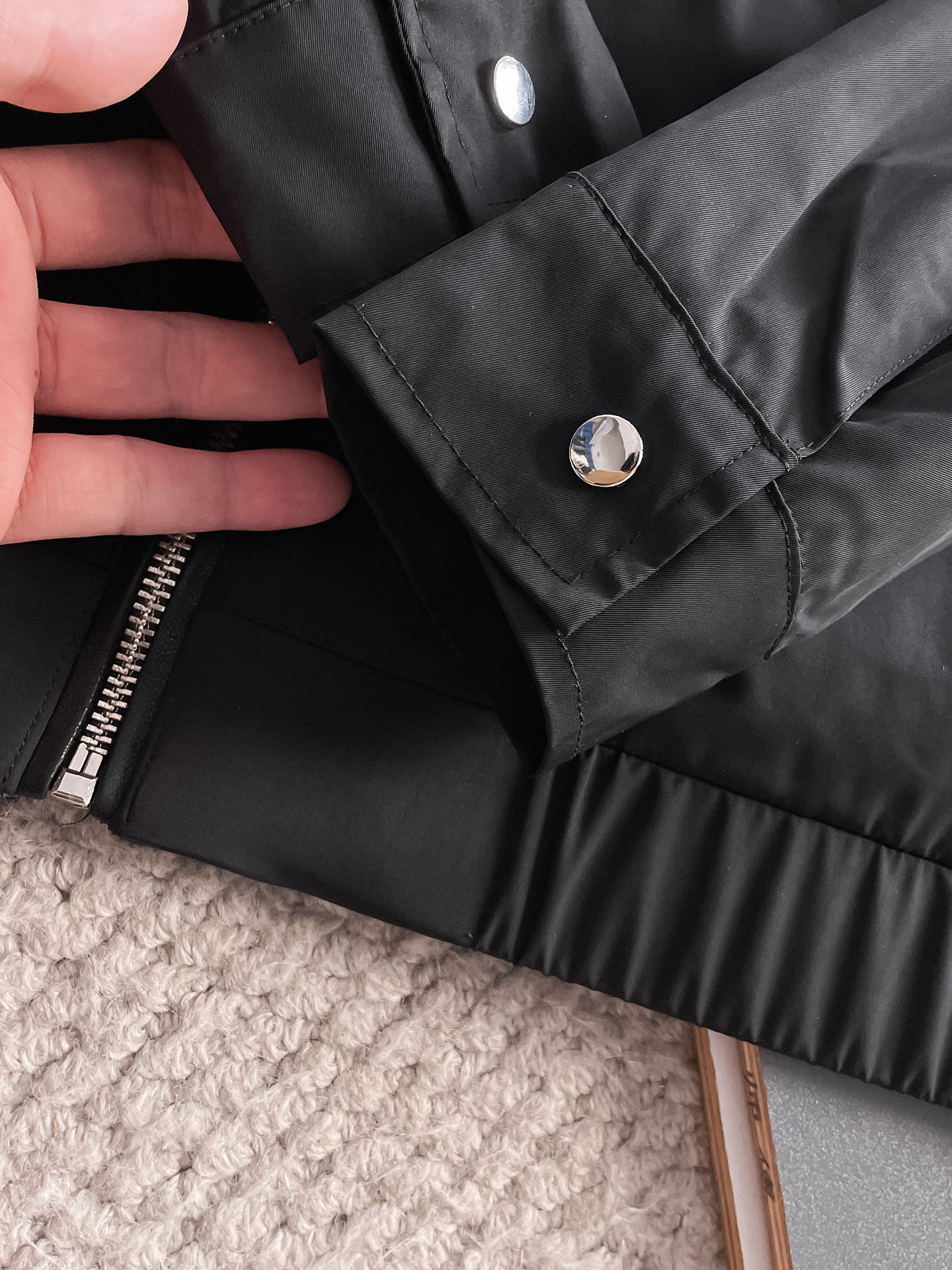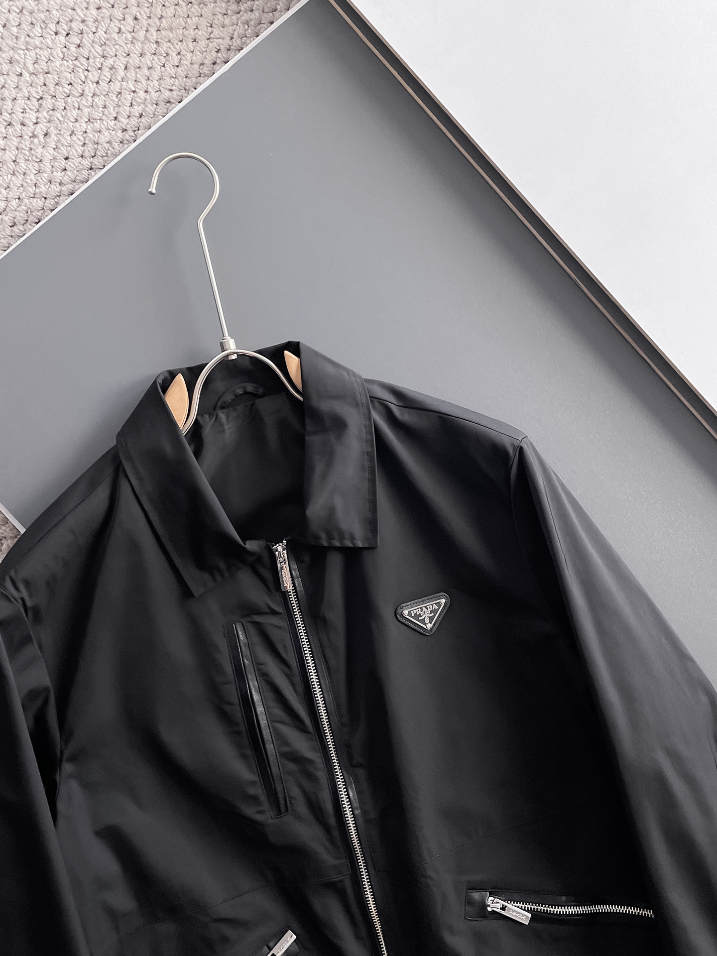 这款衣服是AAAAA 1:1 质量 (非常棒). 使用了和原版一模一样的材料. 商标部分也保持了和普拉达/Prada一样. 图片拍摄是实物衣服拍摄, 您所收到的实物保证和我们图片一模一样.