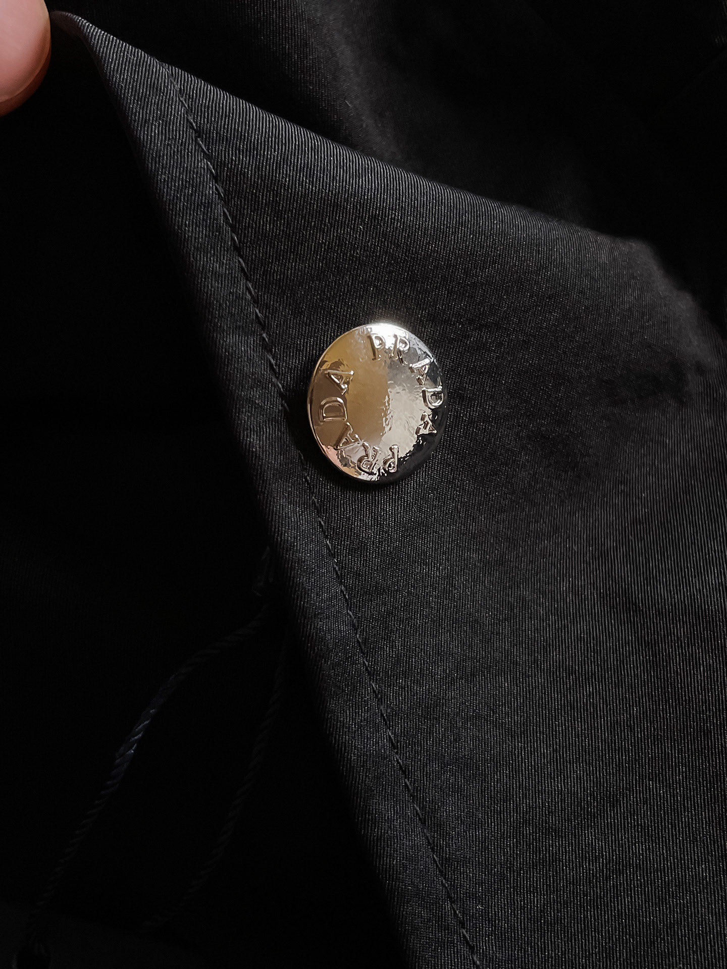 这款衣服是AAAAA 1:1 质量 (非常棒). 使用了和原版一模一样的材料. 商标部分也保持了和普拉达/Prada一样. 图片拍摄是实物衣服拍摄, 您所收到的实物保证和我们图片一模一样.