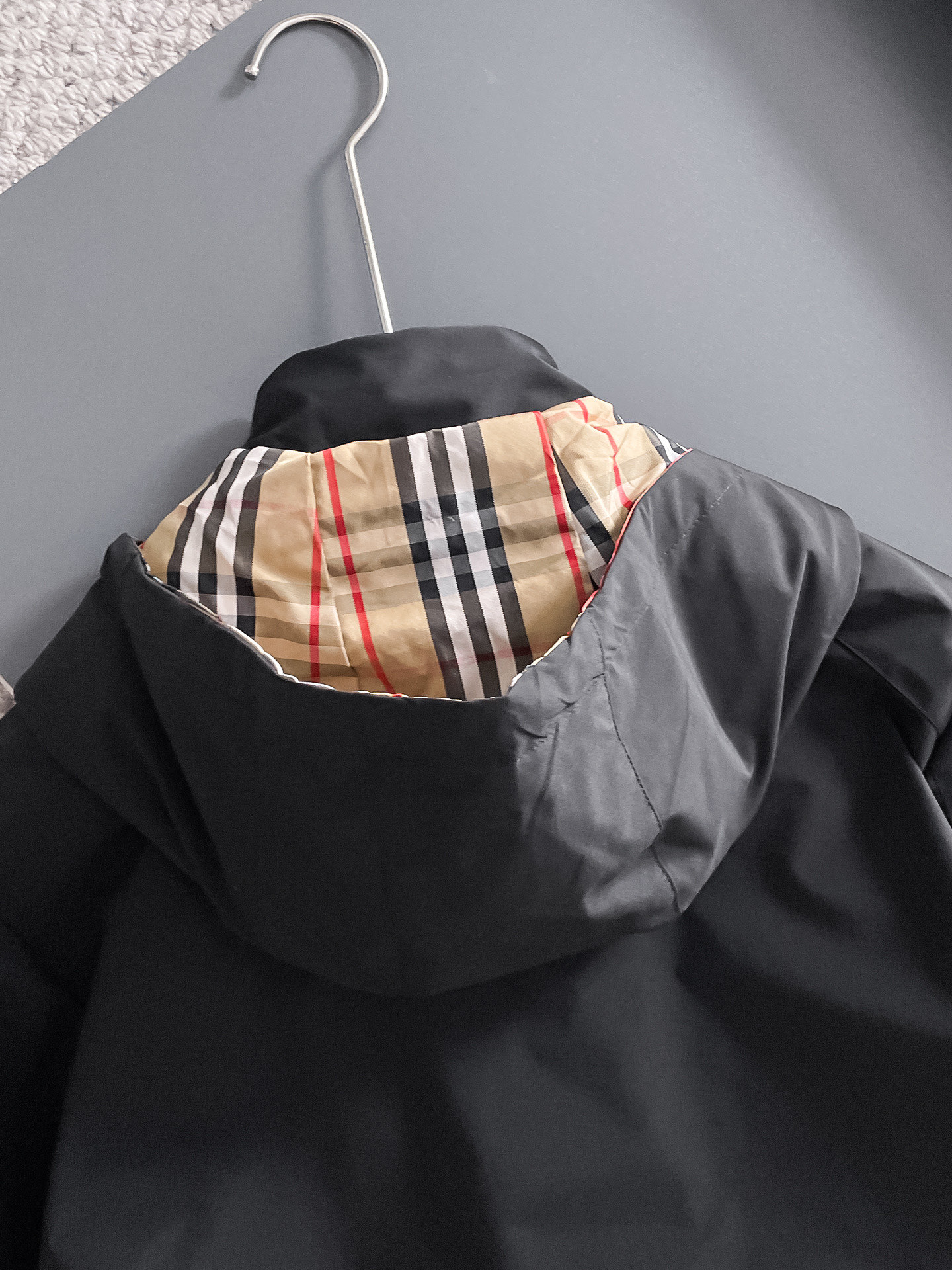 这款衣服是AAAAA 1:1 质量 (非常棒). 使用了和原版一模一样的材料. 商标部分也保持了和巴宝莉/Burberry一样. 图片拍摄是实物衣服拍摄, 您所收到的实物保证和我们图片一模一样.