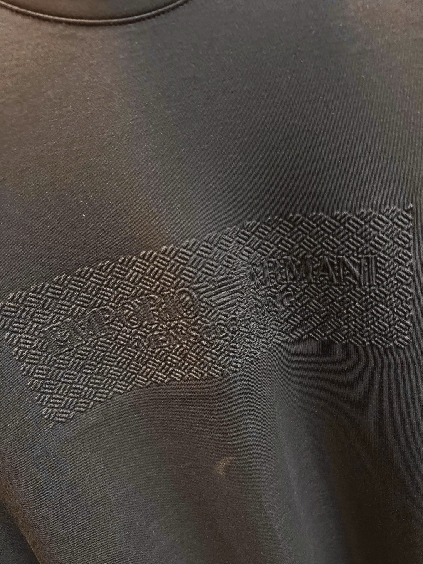 这款衣服是AAAAA 1:1 质量 (非常棒). 使用了和原版一模一样的材料. 商标部分也保持了和阿玛尼/Armani一样. 图片拍摄是实物衣服拍摄, 您所收到的实物保证和我们图片一模一样.