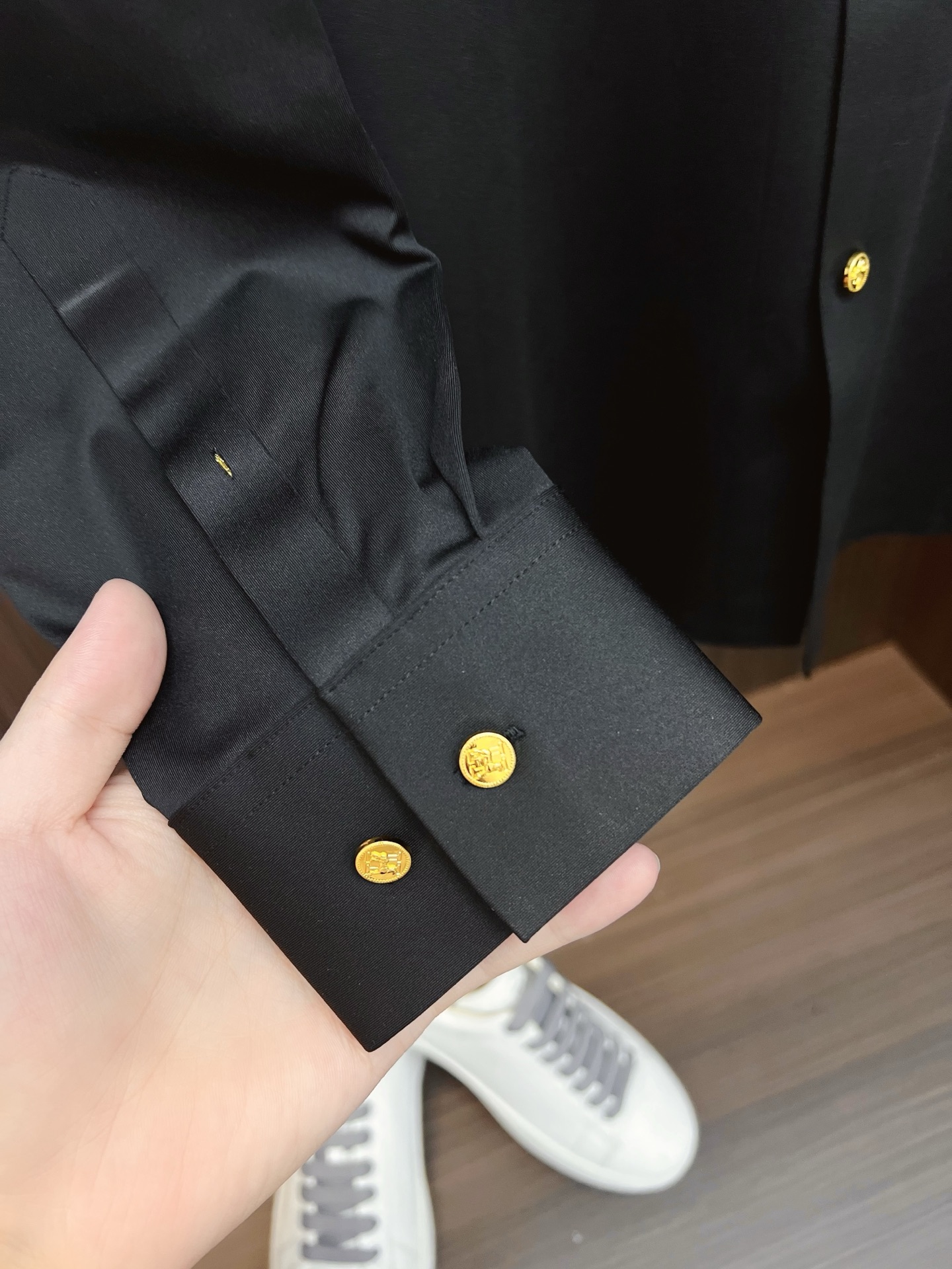 这款衣服是AAAAA 1:1 质量 (非常棒). 使用了和原版一模一样的材料. 商标部分也保持了和爱马仕/Hermes一样. 图片拍摄是实物衣服拍摄, 您所收到的实物保证和我们图片一模一样.