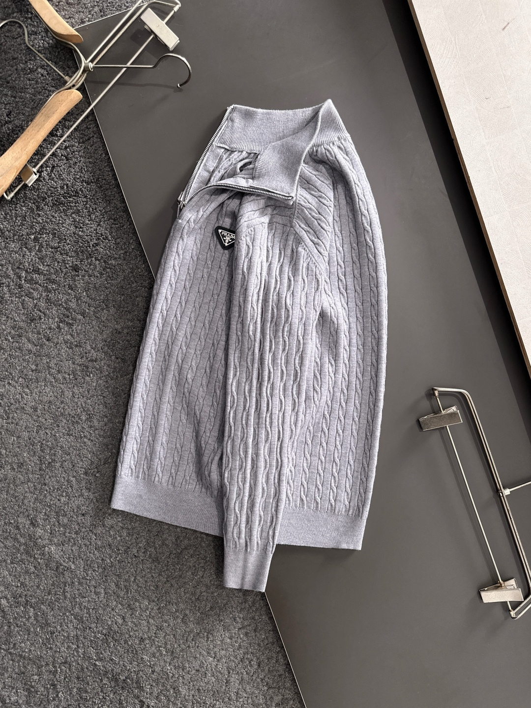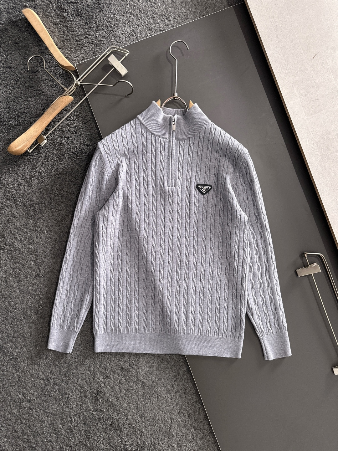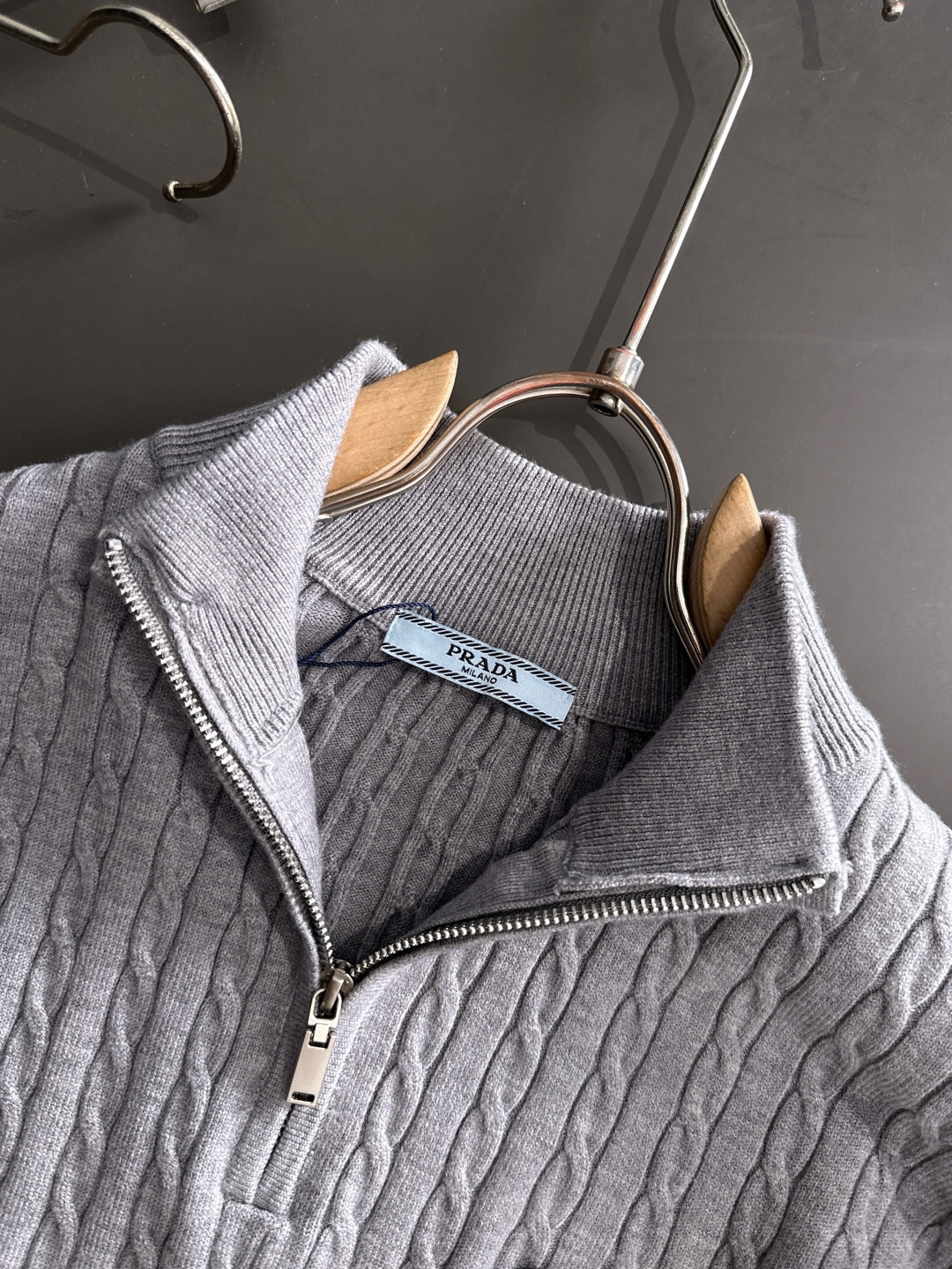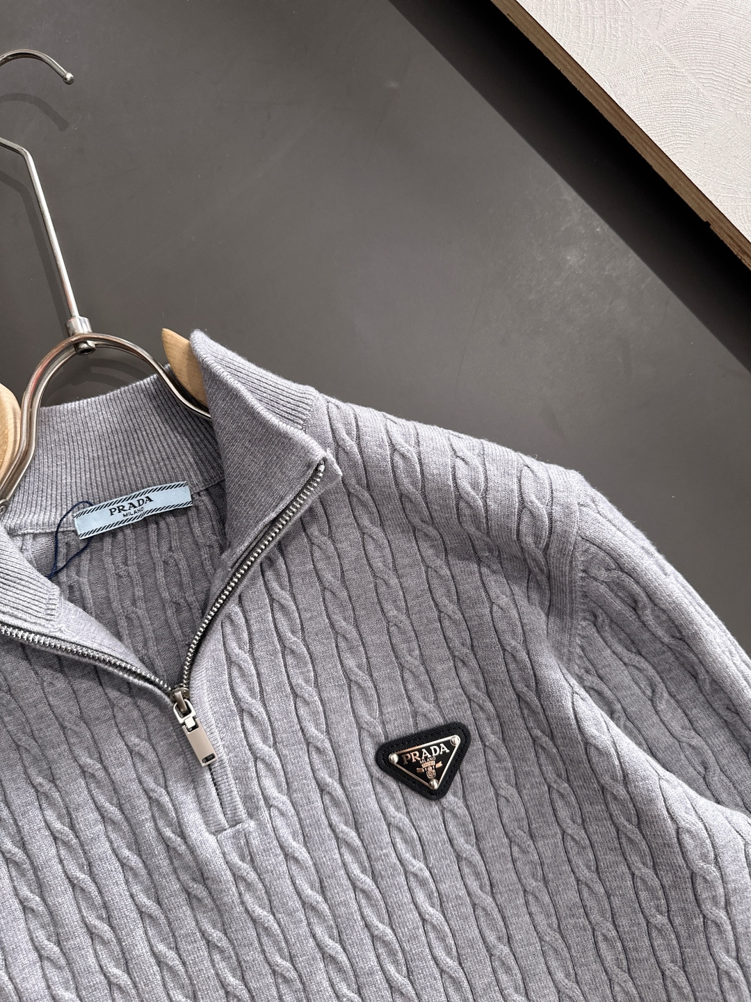这款衣服是AAAAA 1:1 质量 (非常棒). 使用了和原版一模一样的材料. 商标部分也保持了和普拉达/Prada一样. 图片拍摄是实物衣服拍摄, 您所收到的实物保证和我们图片一模一样.