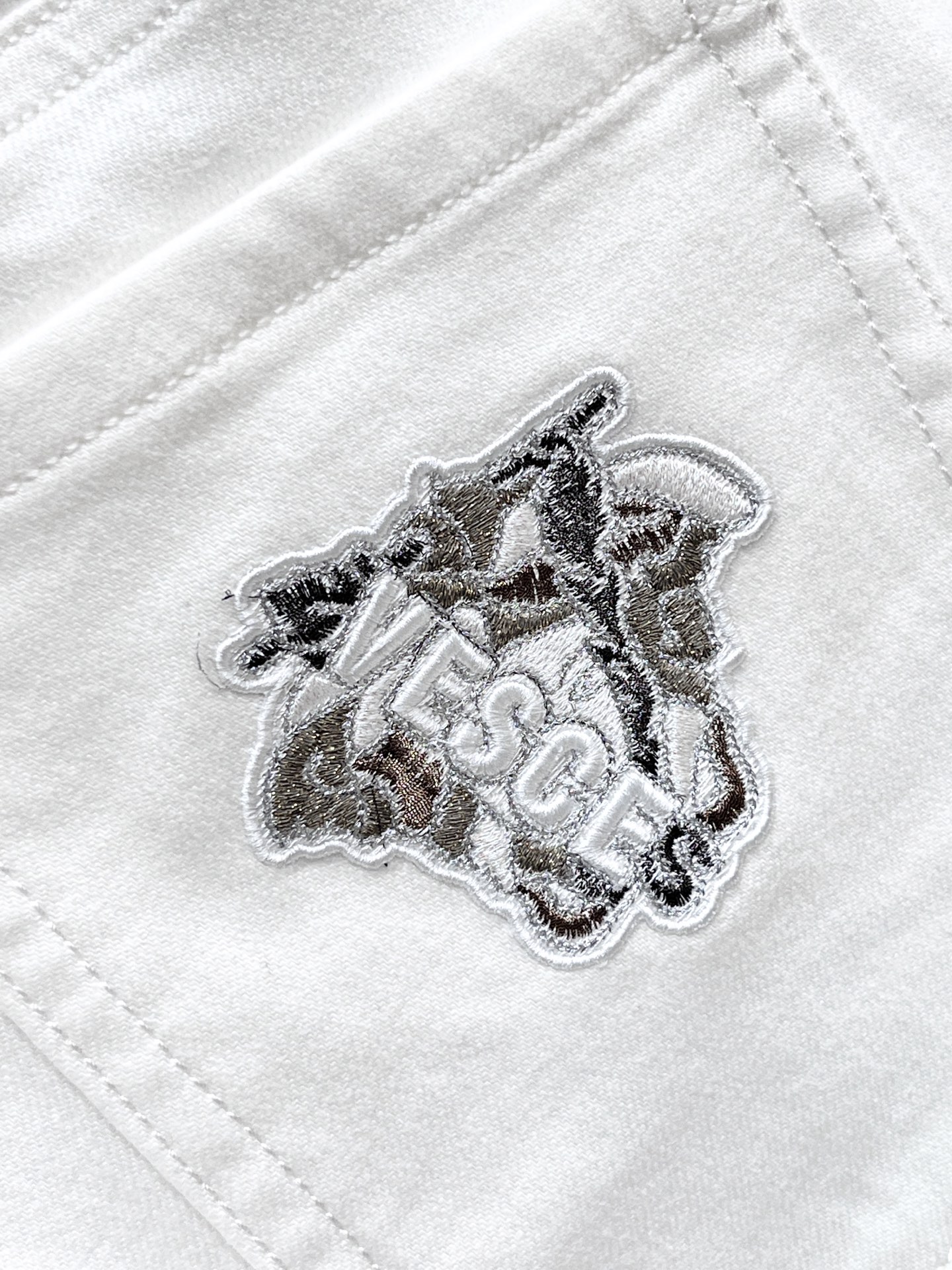 这款衣服是AAAAA 1:1 质量 (非常棒). 使用了和原版一模一样的材料. 商标部分也保持了和范思哲/Versace一样. 图片拍摄是实物衣服拍摄, 您所收到的实物保证和我们图片一模一样.