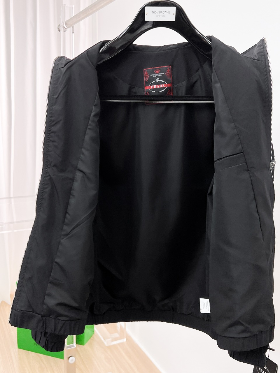 这款衣服是AAAAA 1:1 质量 (非常棒). 使用了和原版一模一样的材料. 商标部分也保持了和普拉达/Prada一样. 图片拍摄是实物衣服拍摄, 您所收到的实物保证和我们图片一模一样.