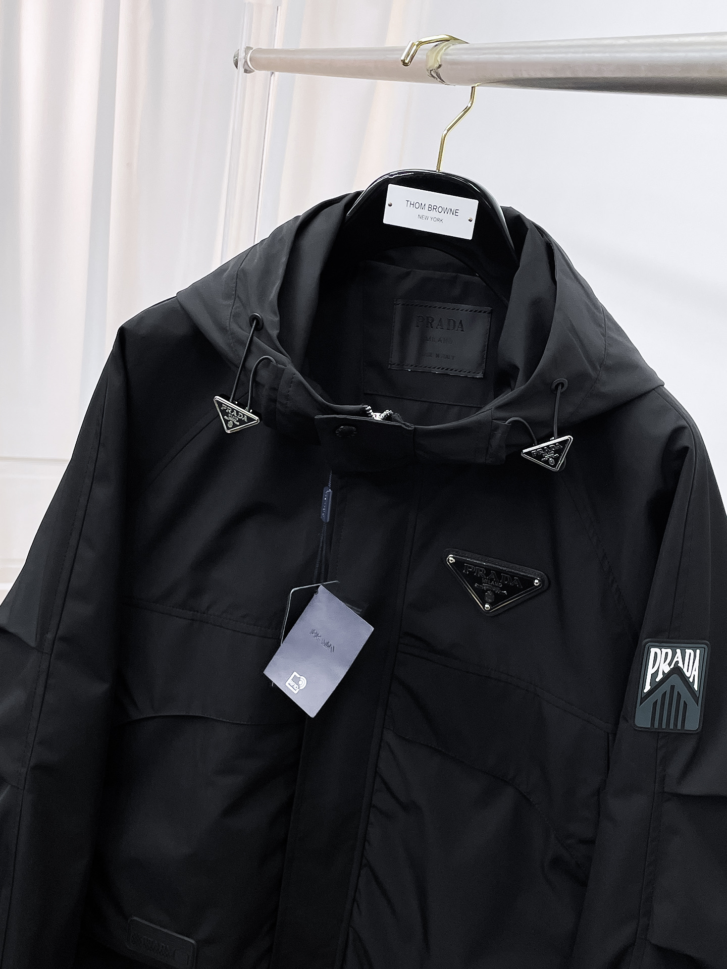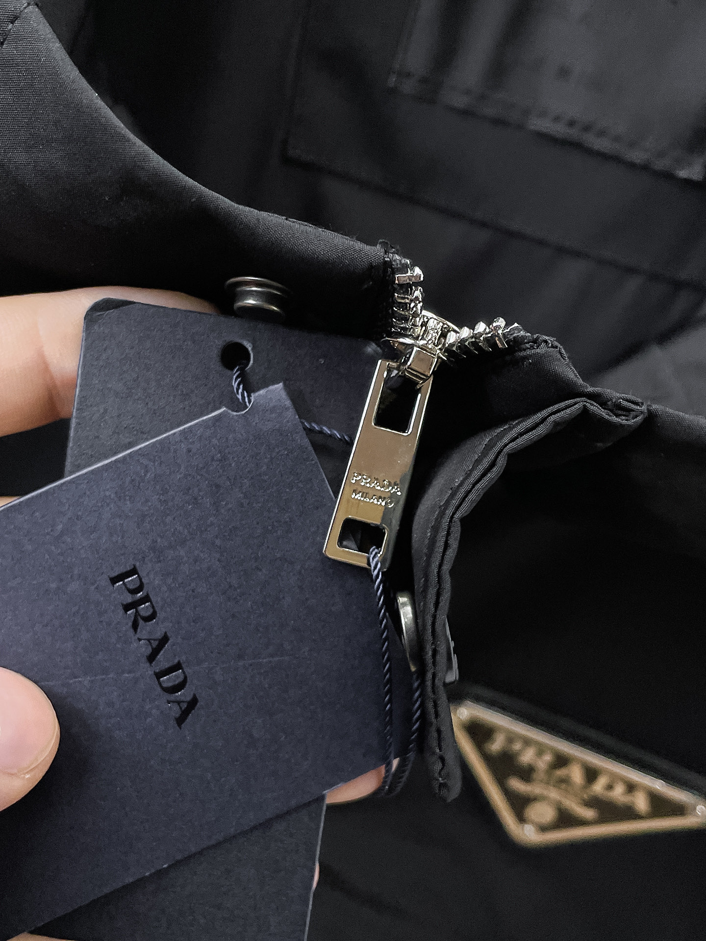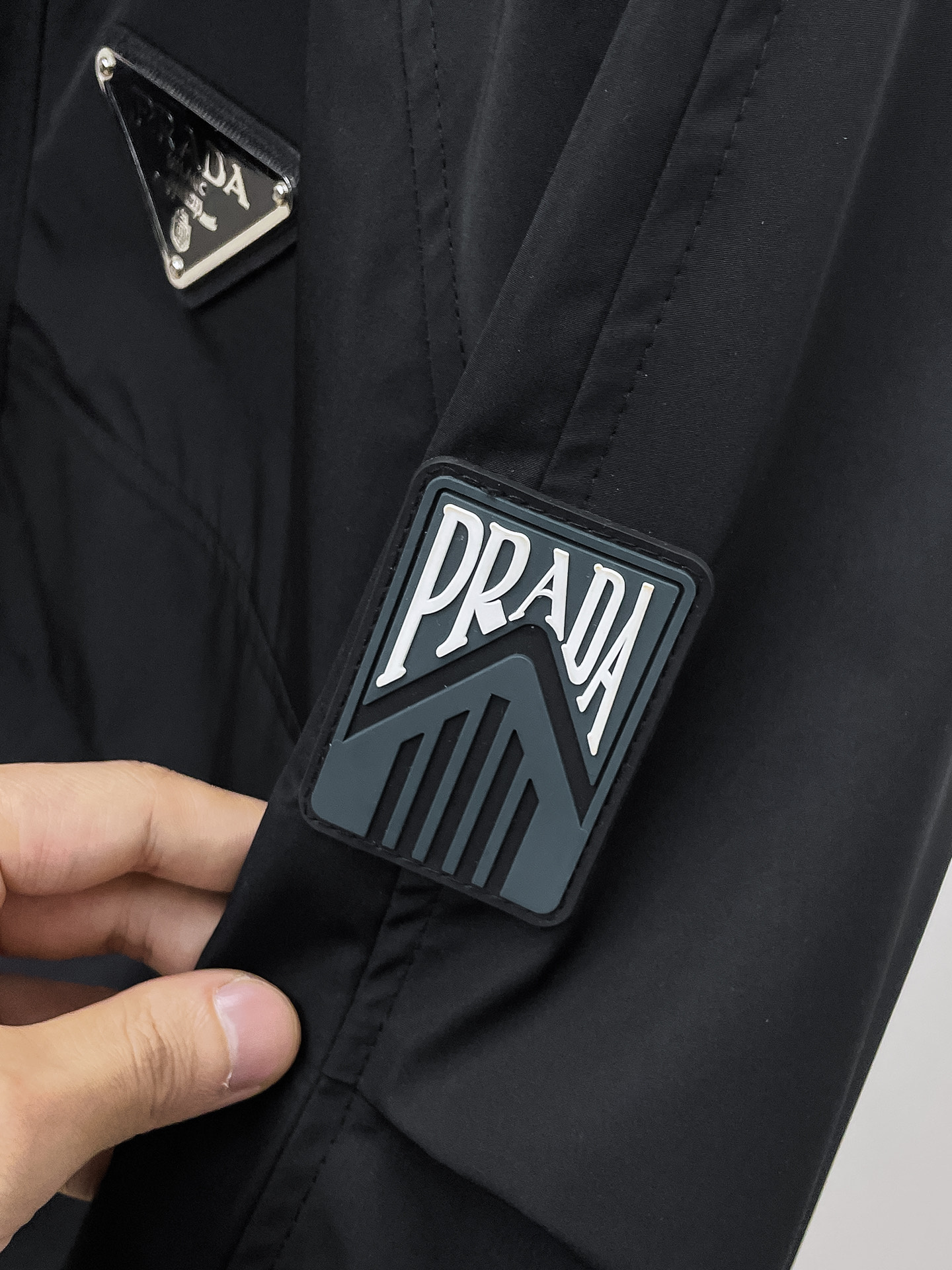 这款衣服是AAAAA 1:1 质量 (非常棒). 使用了和原版一模一样的材料. 商标部分也保持了和普拉达/Prada一样. 图片拍摄是实物衣服拍摄, 您所收到的实物保证和我们图片一模一样.