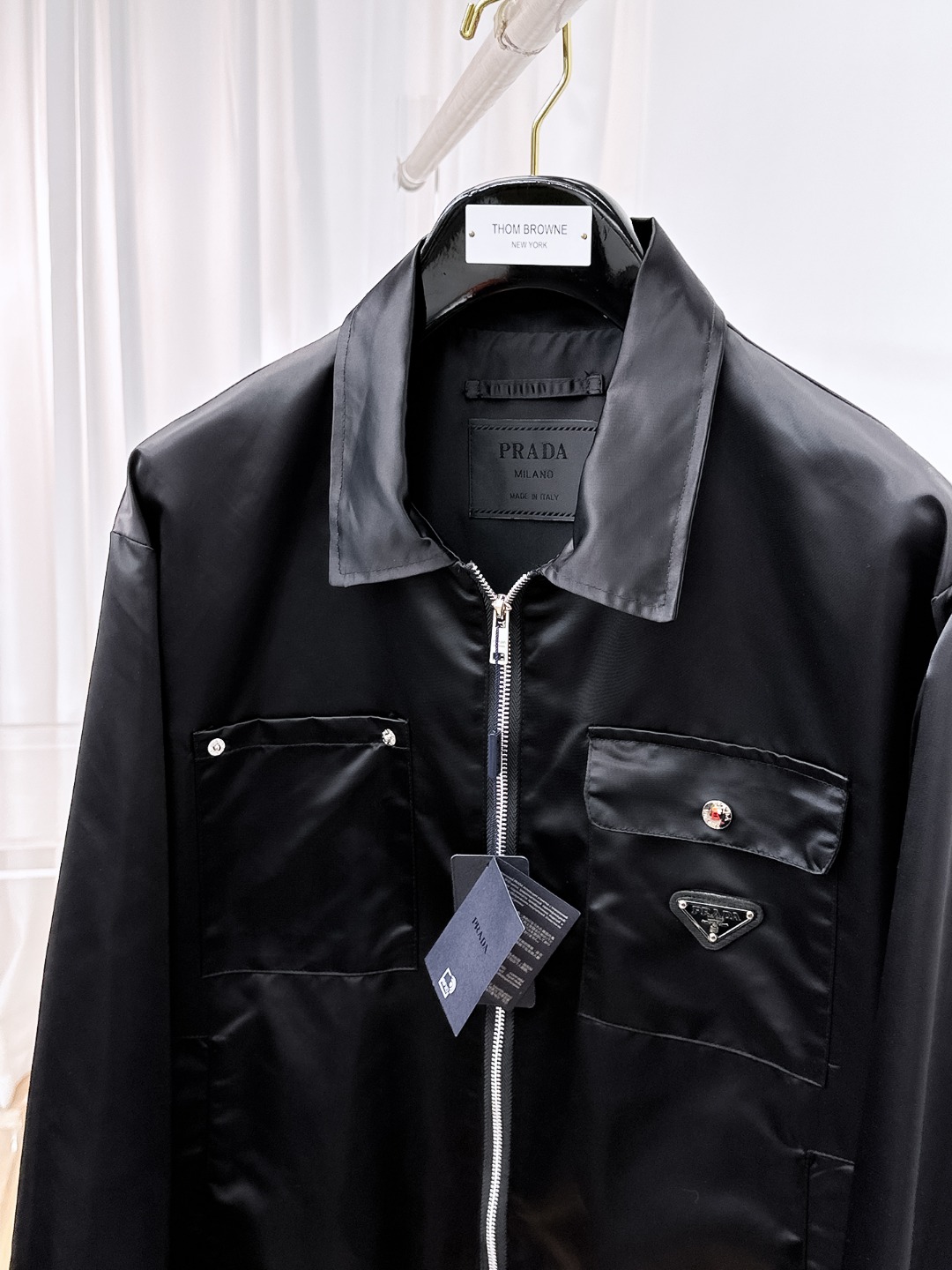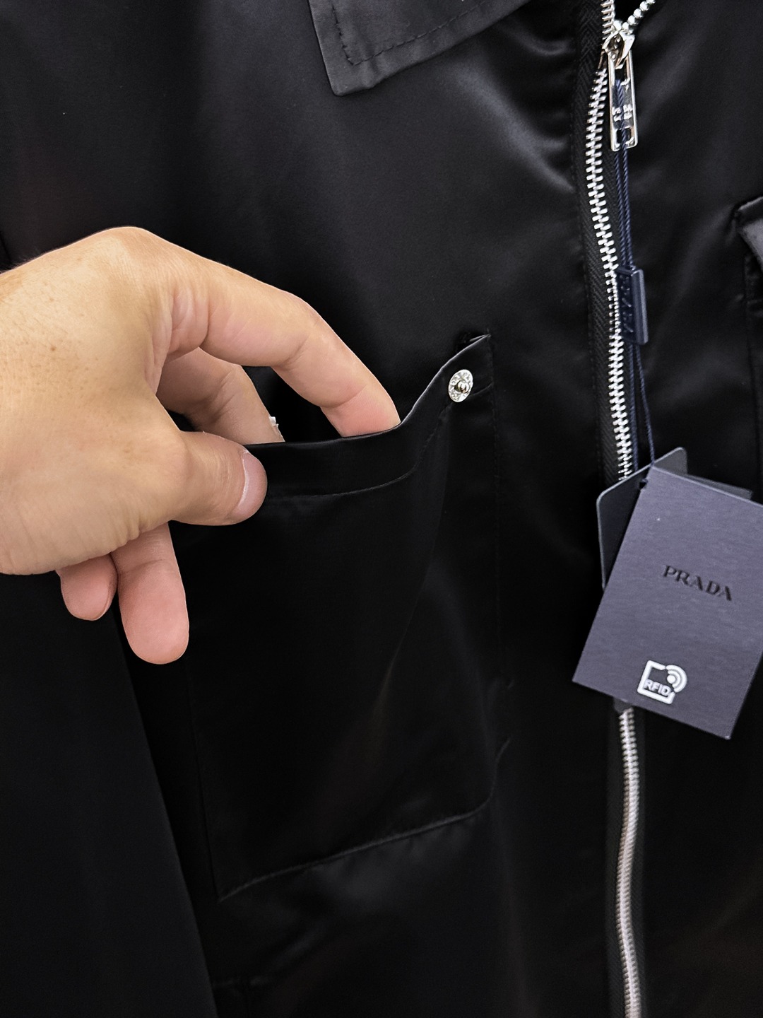 这款衣服是AAAAA 1:1 质量 (非常棒). 使用了和原版一模一样的材料. 商标部分也保持了和普拉达/Prada一样. 图片拍摄是实物衣服拍摄, 您所收到的实物保证和我们图片一模一样.