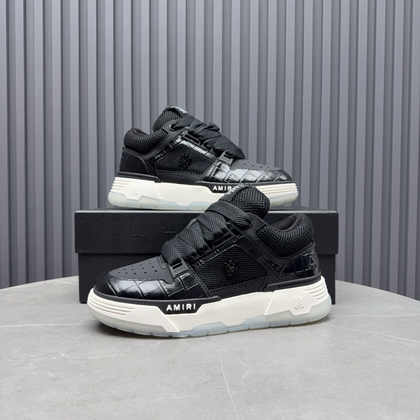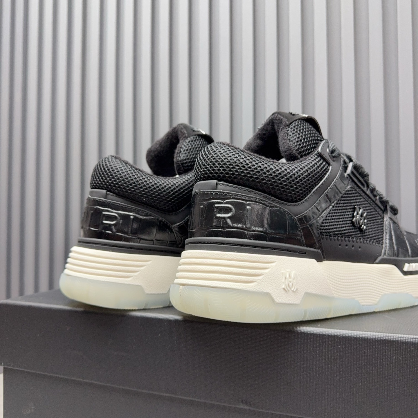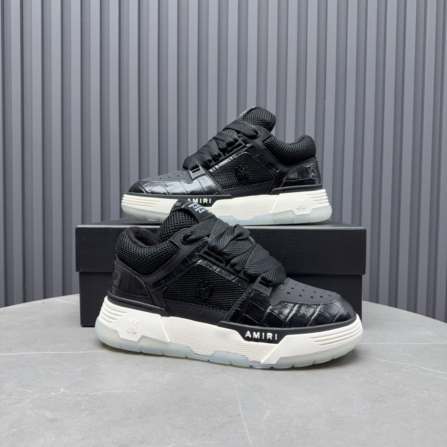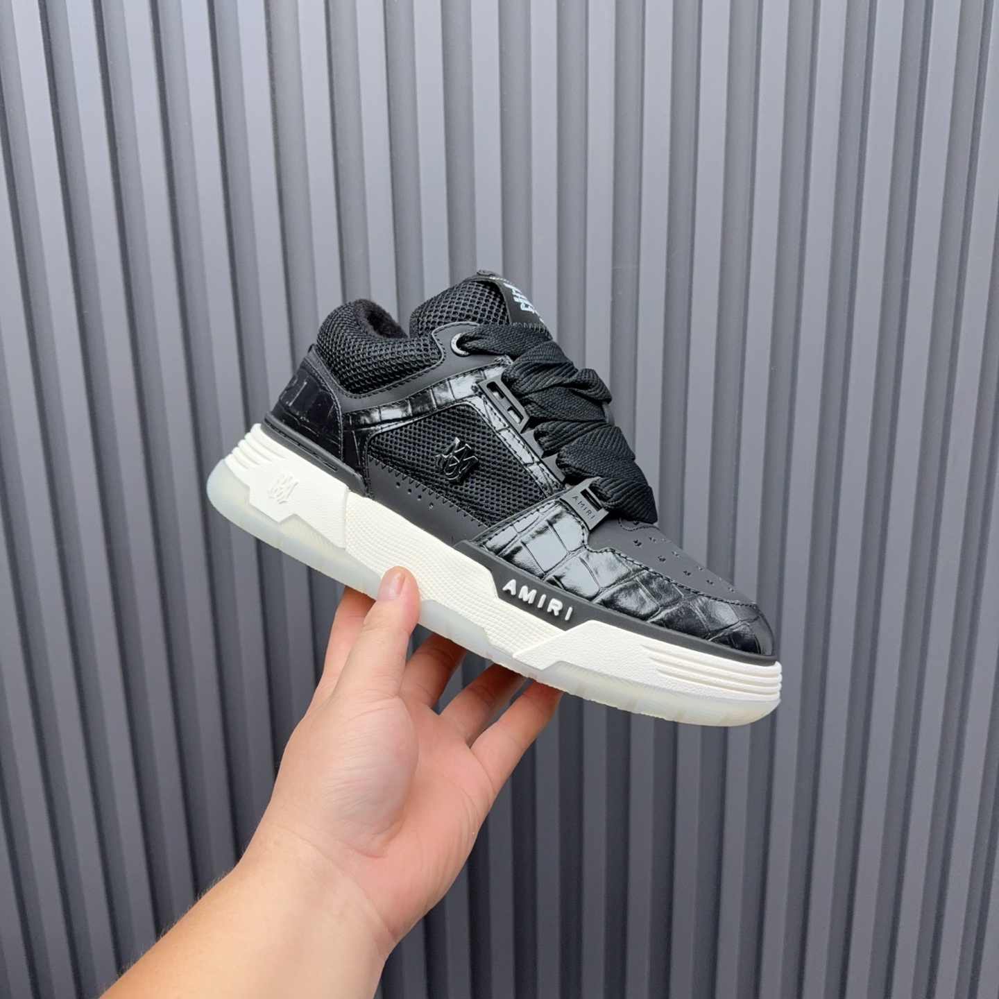 这款鞋子是AAAAA 1:1 质量 (非常棒). 使用了和原版一模一样的材料. 商标部分也保持了和AMIRI一样. 图片拍摄是实物鞋子拍摄, 您所收到的实物保证和我们图片一模一样.