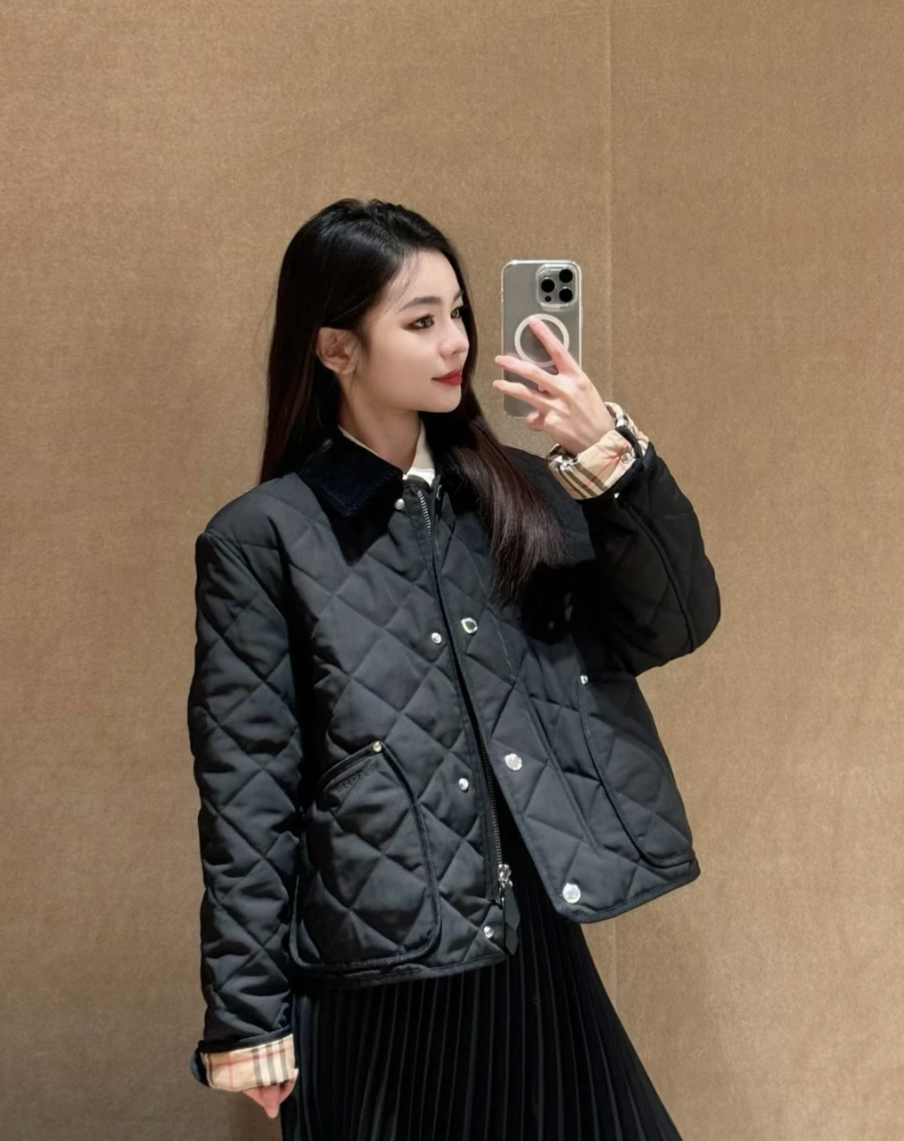 这款衣服是AAAAA 1:1 质量 (非常棒). 使用了和原版一模一样的材料. 商标部分也保持了和巴宝莉/Burberry一样. 图片拍摄是实物衣服拍摄, 您所收到的实物保证和我们图片一模一样.