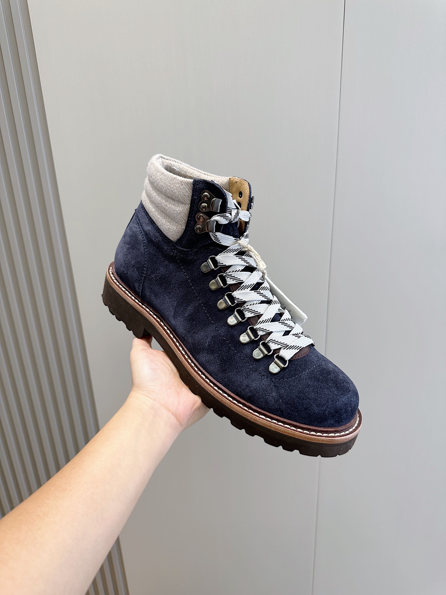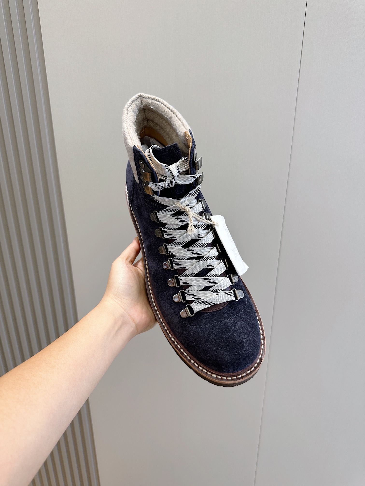 这款鞋子是AAAAA 1:1 质量 (非常棒). 使用了和原版一模一样的材料. 商标部分也保持了和Brunello Cucinelli一样. 图片拍摄是实物鞋子拍摄, 您所收到的实物保证和我们图片一模一样.