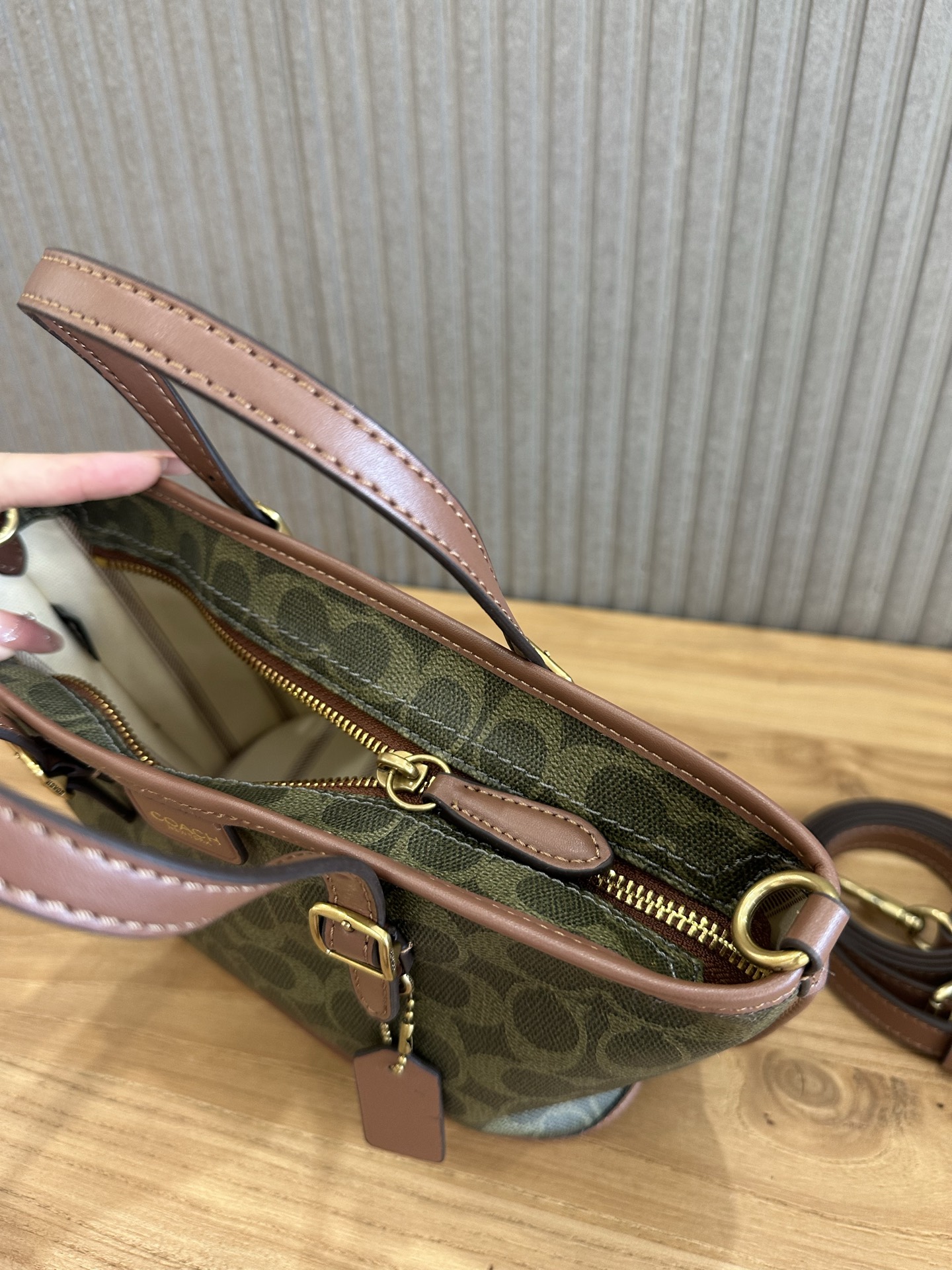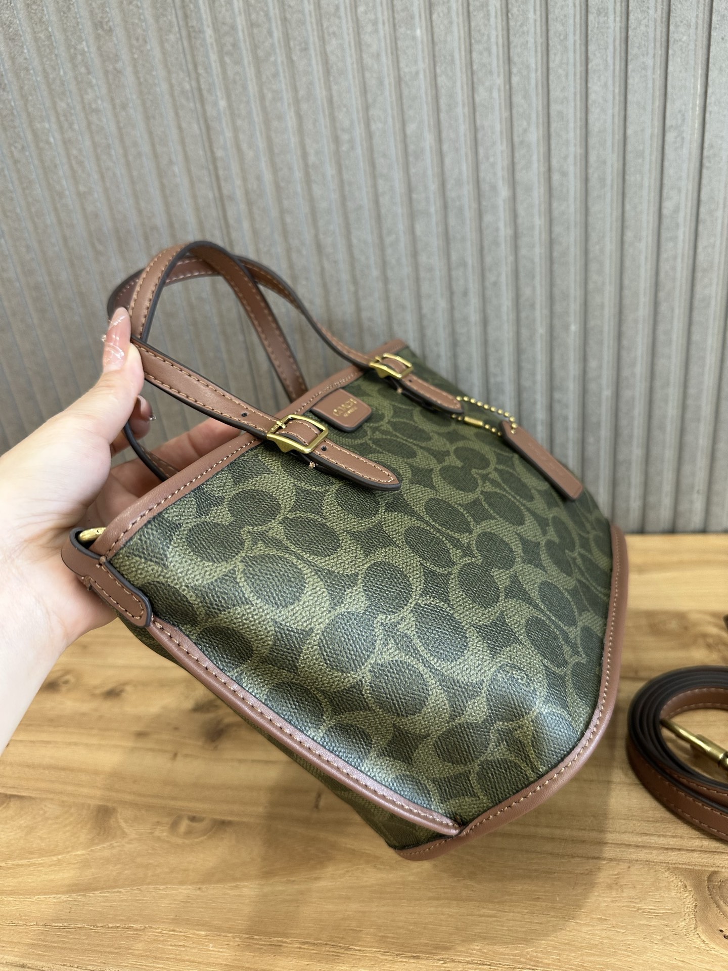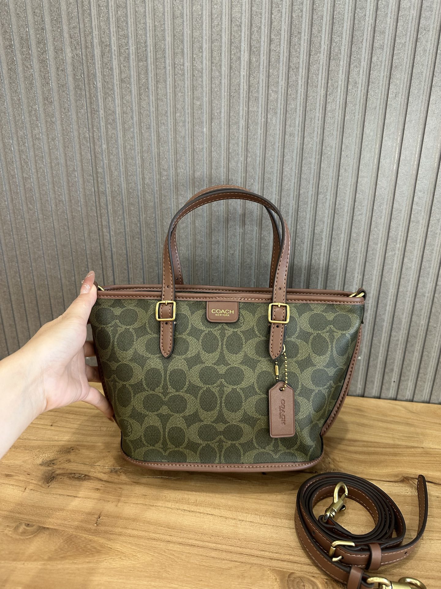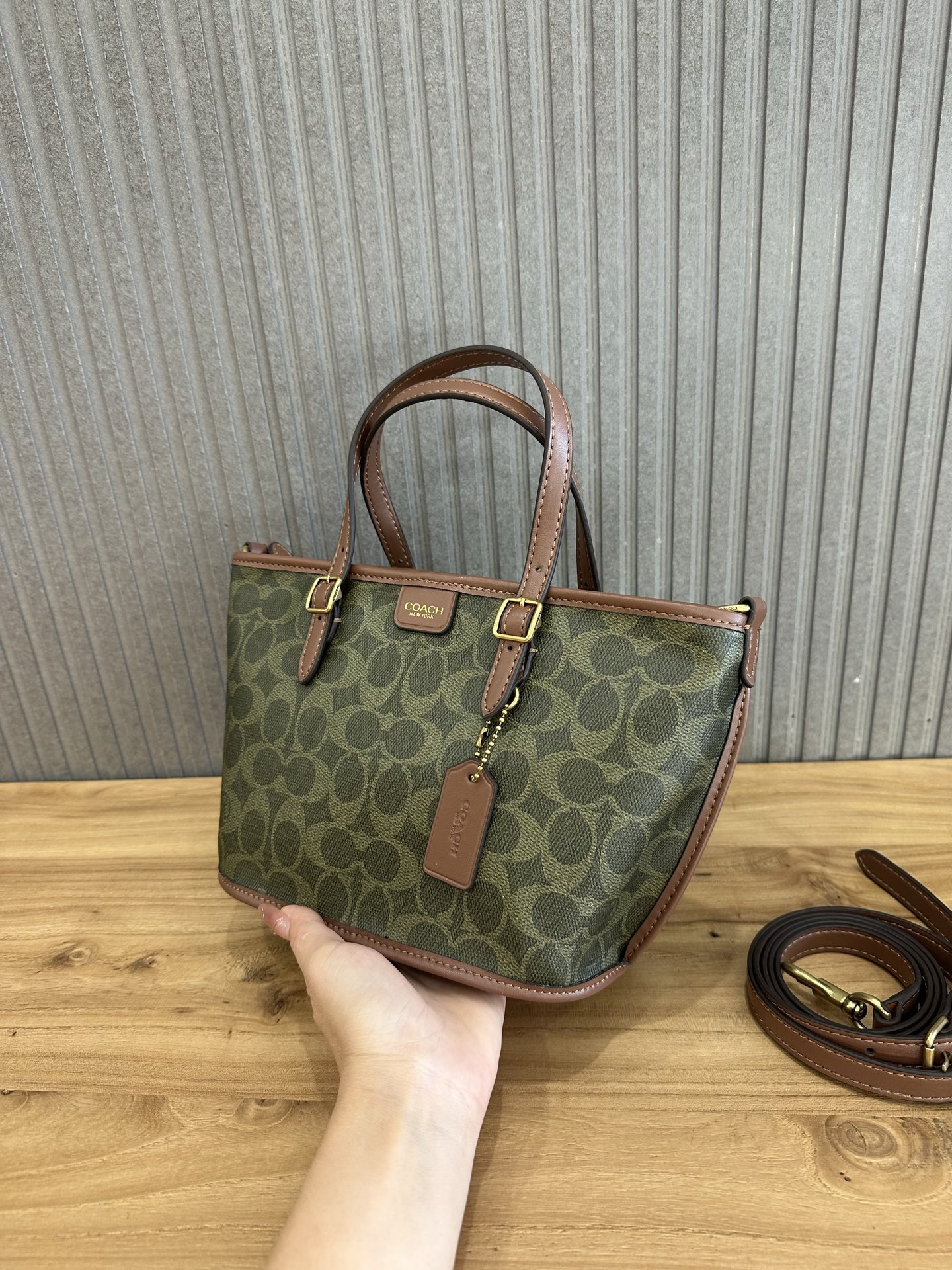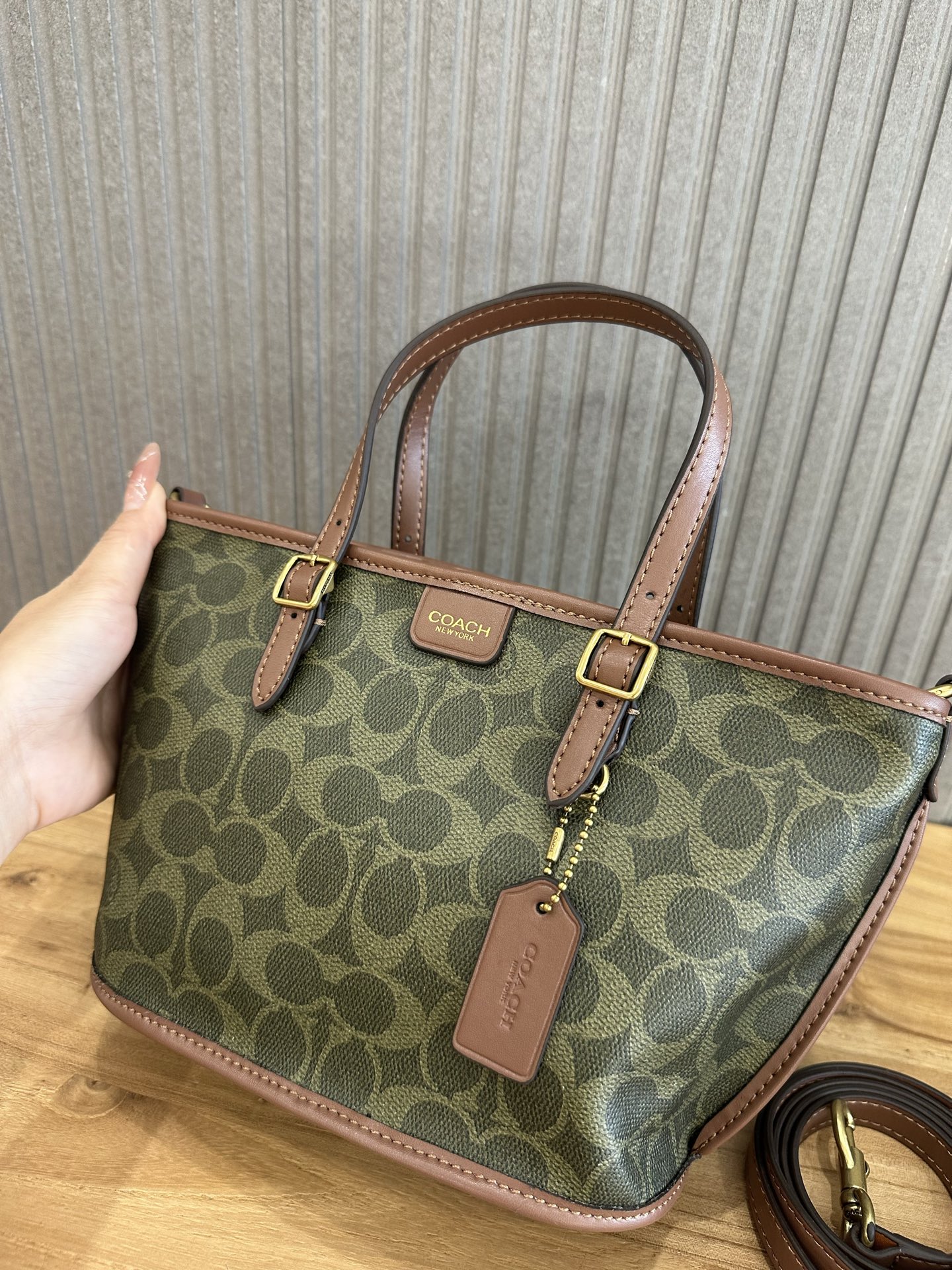 这款包包是AAAAA 1:1 质量 (非常棒). 使用了和原版一模一样的材料. 商标部分也保持了和蔻驰/Coach一样. 图片拍摄是实物包包拍摄, 您所收到的实物保证和我们图片一模一样.