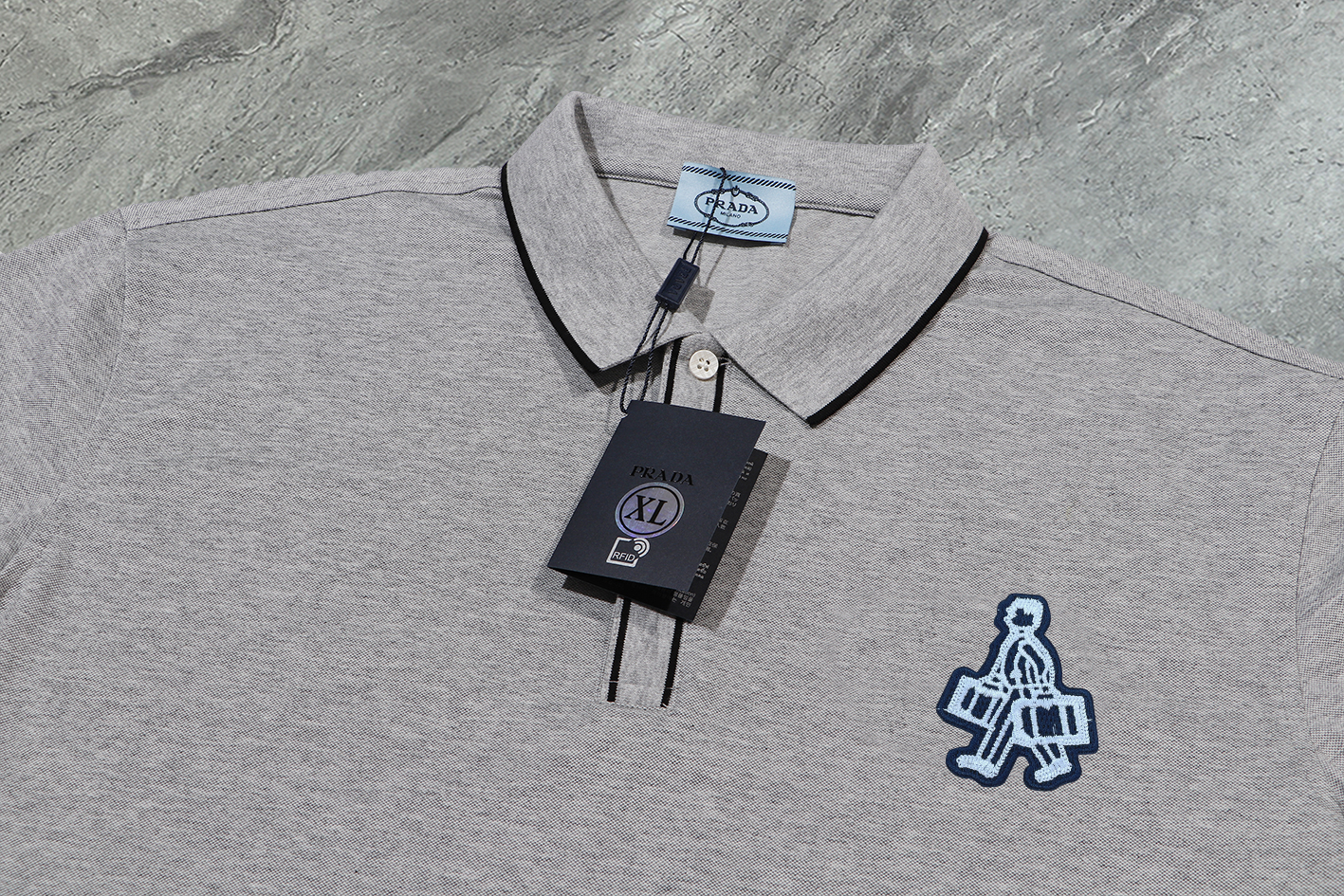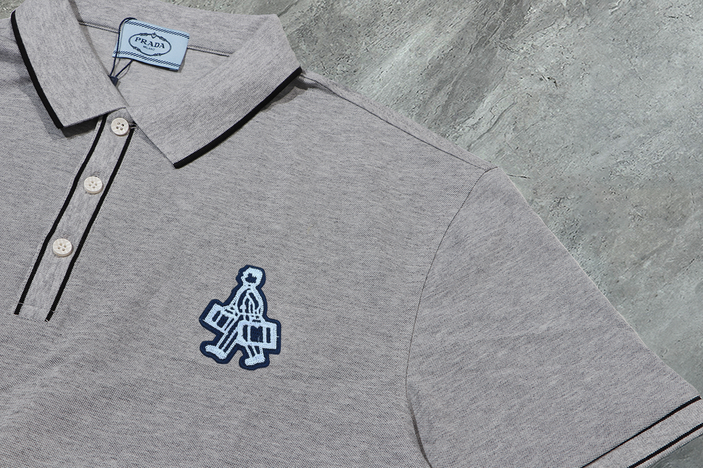 这款衣服是AAAAA 1:1 质量 (非常棒). 使用了和原版一模一样的材料. 商标部分也保持了和普拉达/Prada一样. 图片拍摄是实物衣服拍摄, 您所收到的实物保证和我们图片一模一样.
